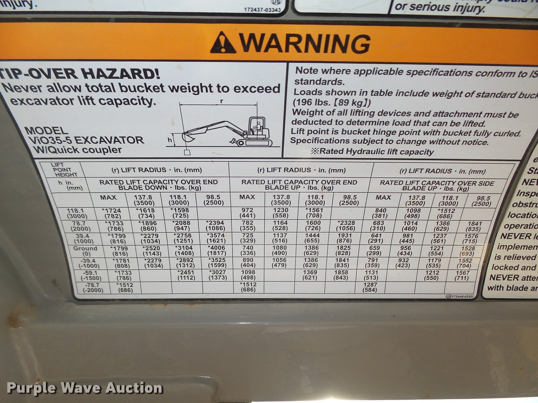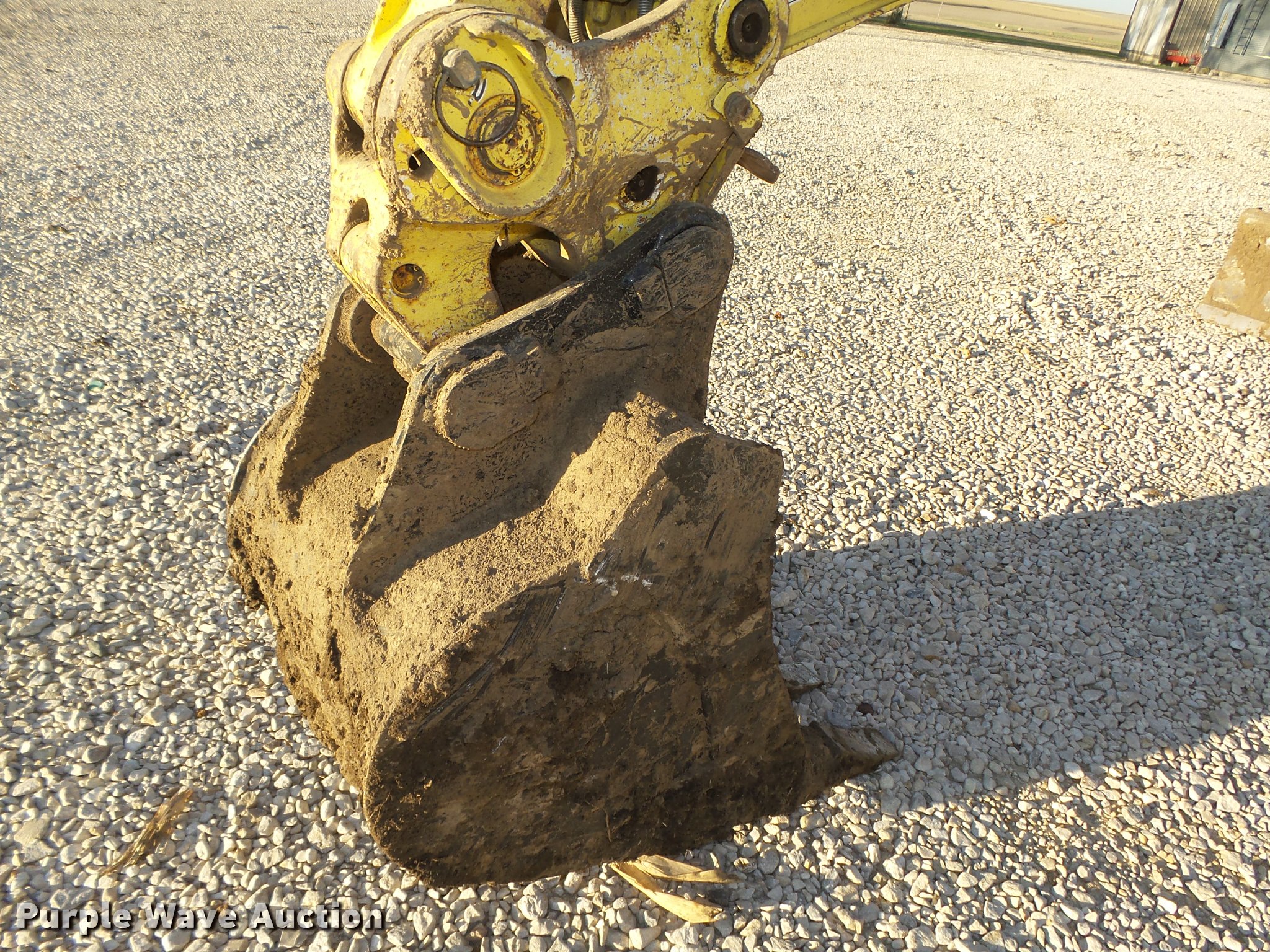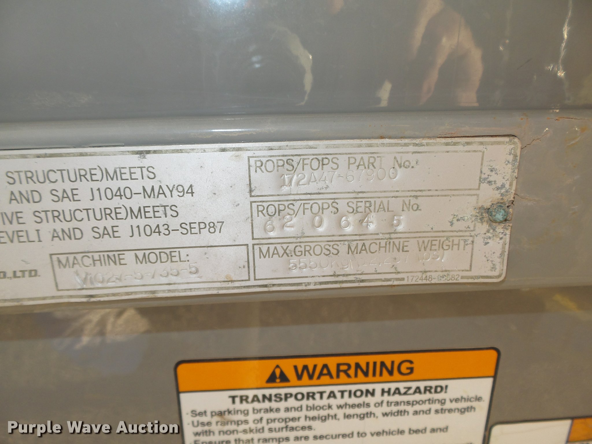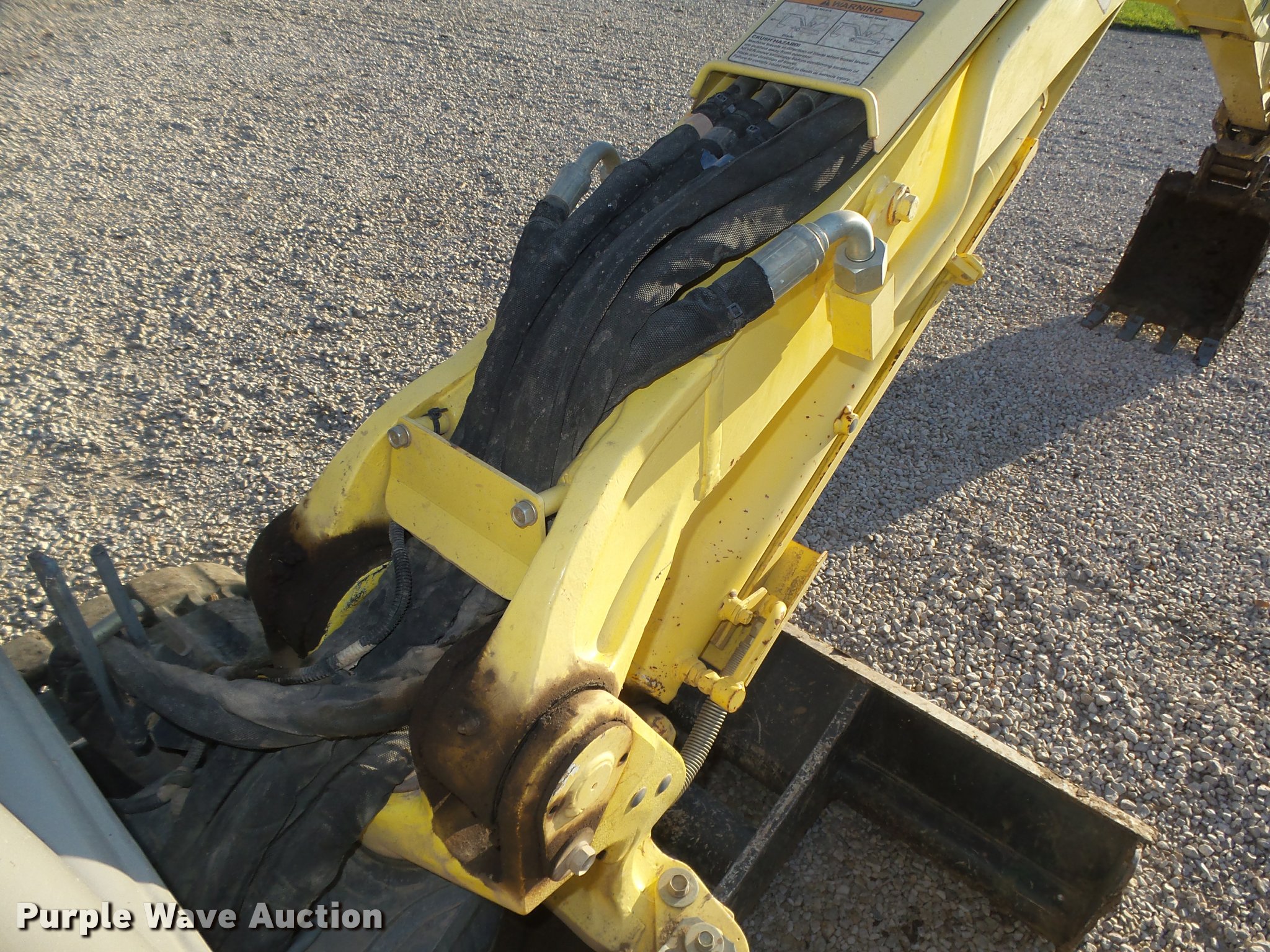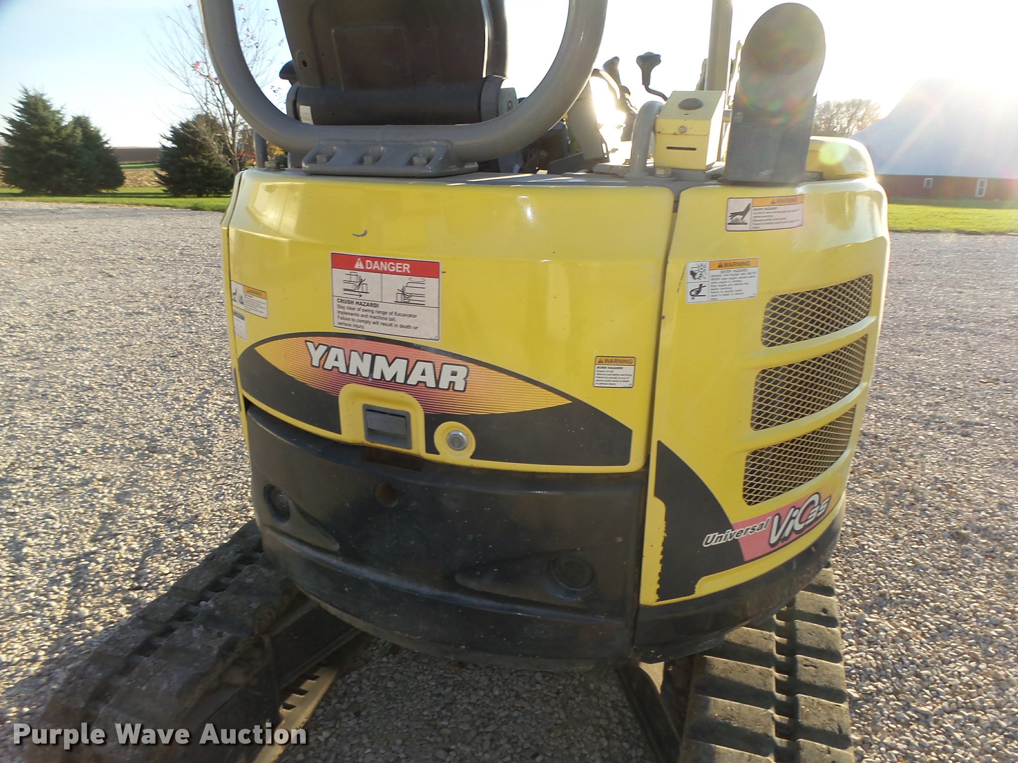 Purple Wave is selling a used Mini Excavator in Iowa. This item is a 2007 Yanmar VI035-5 mini excavator with the following: 1,556 hours on meter, Hours may vary, still in use, Yanmar three cylinder diesel engine, 28.1 HP, Serial 61384, Two speed hydrostatic transmission, OROPS, Serial 620645, Suspension seat, Pattern changer, Front work lights, Backup alarm, Travel alarm, 61"W backfill blade, Standard boom, 53" stick length, Two-way auxiliary hydraulics, Plumbed and capped off, Hydraulic quick coupler, 11' digging depth, Yanmar 18"W bucket, Zero tail swing, Four bottom rollers, 12"W rubber tracks, 7,850 lbs. base operating weight, Serial YMRVI035C7YY51155B, Unit# 5155B