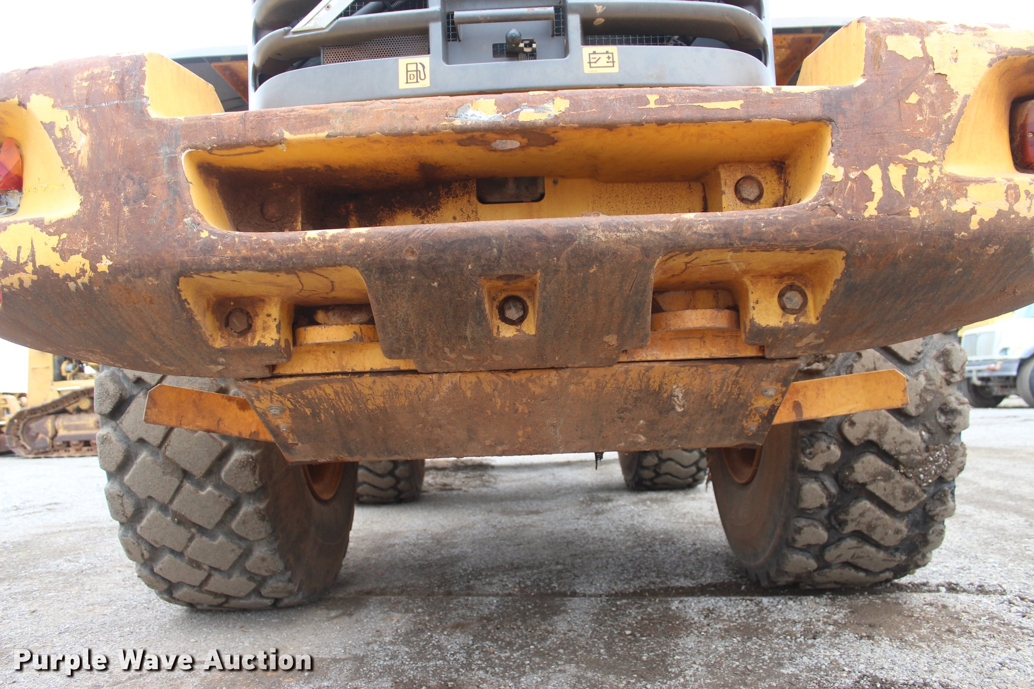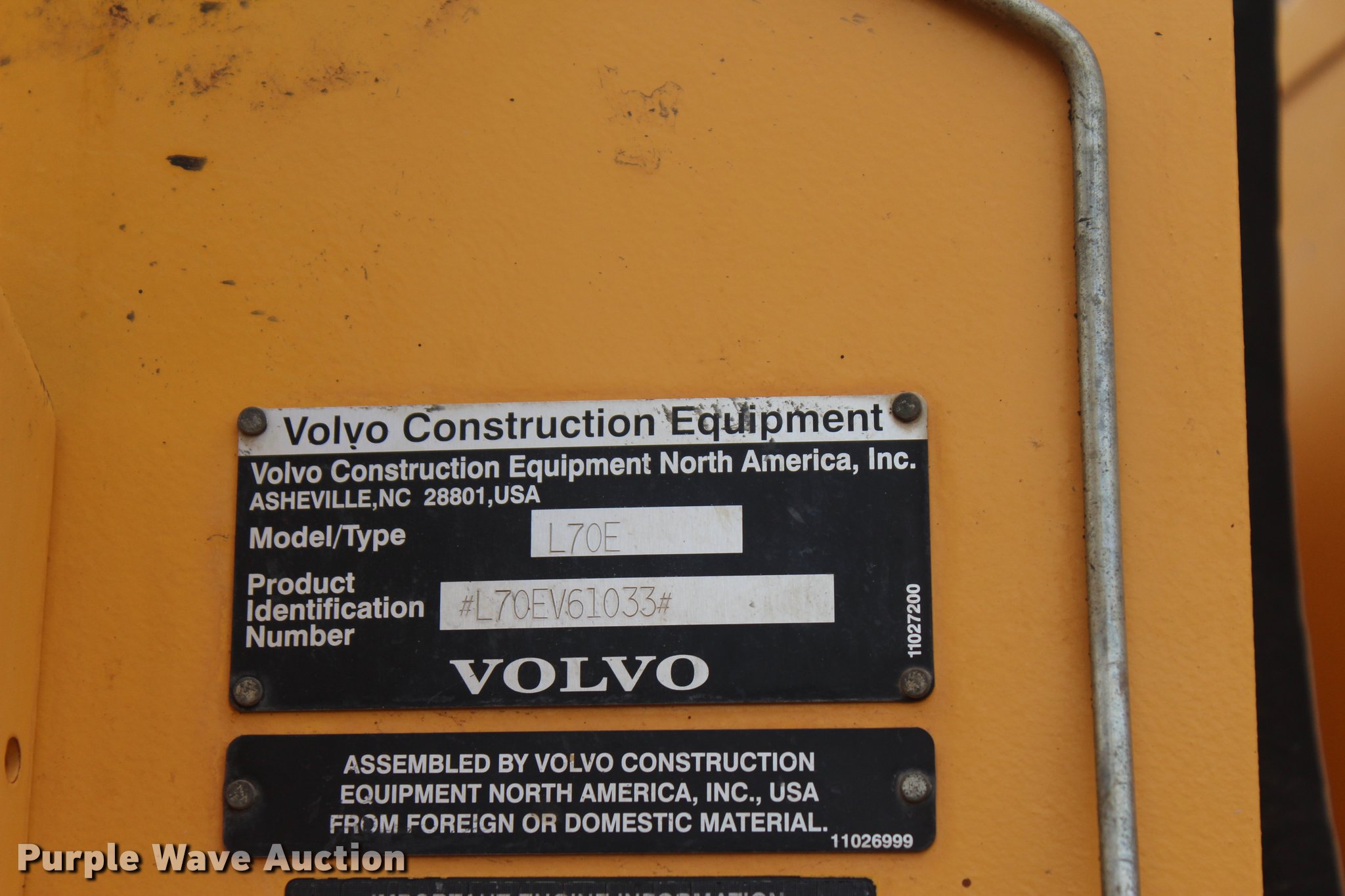 Purple Wave is selling a used Wheel Loader in Oklahoma. This item is a 2006 Volvo L70E wheel loader with the following: 2,431 hours on meter, Volvo B6DLBE2 5.7L six cylinder turbo diesel engine, 134 HP, Powershift transmission, 4F-4R gears, Enclosed cab, EROPS, AC and heat, AM/FM, Tilt steering wheel, Suspension seat, Two-lever bucket controls, Wipers, Backup alarm, Volvo 8063 99"W general purpose bucket, Bolt-on cutting edge, Hydraulic quick coupler, Counterweights, 20.5R25 tires, Rear grate damage, Serial L705V61033, Unit#
