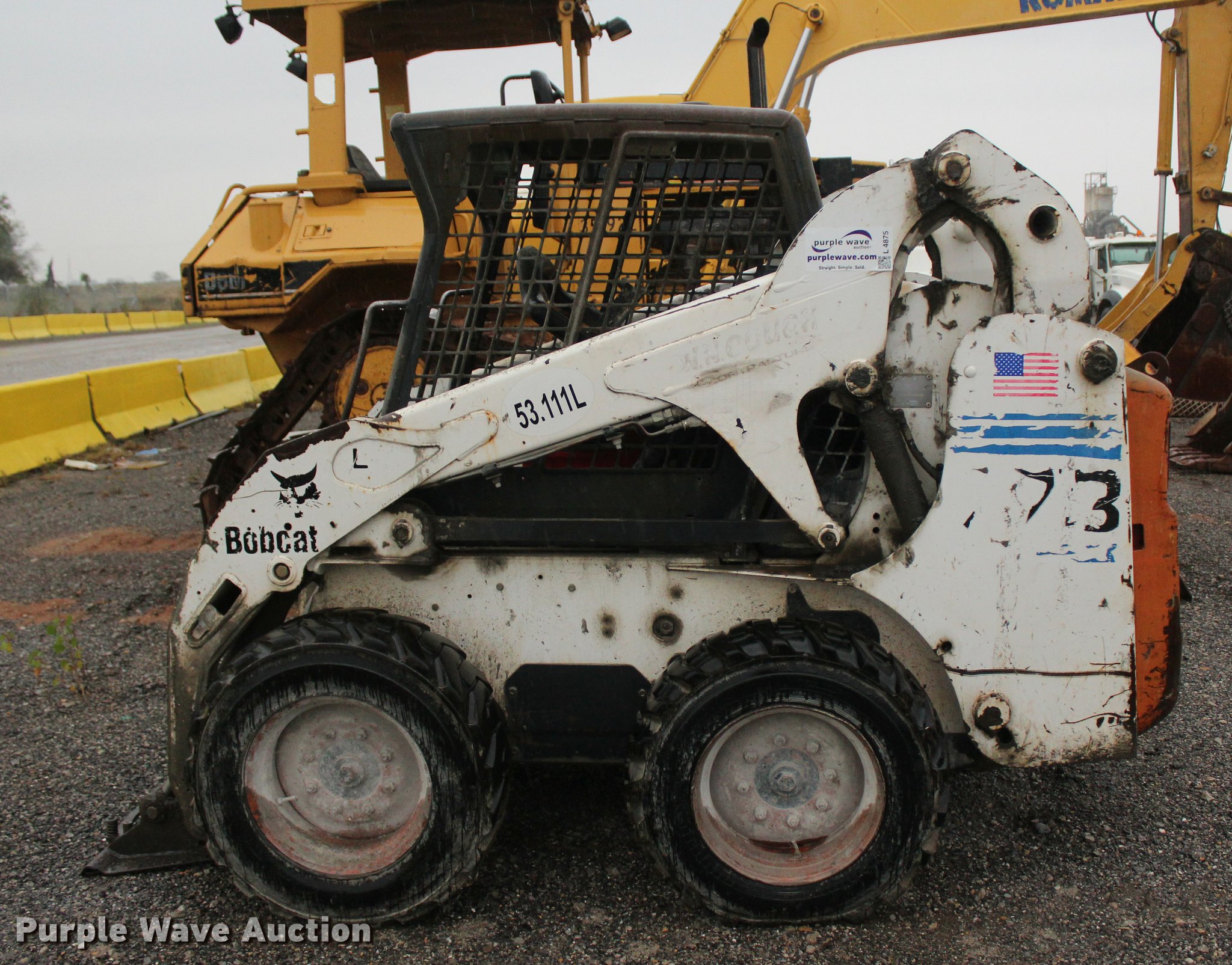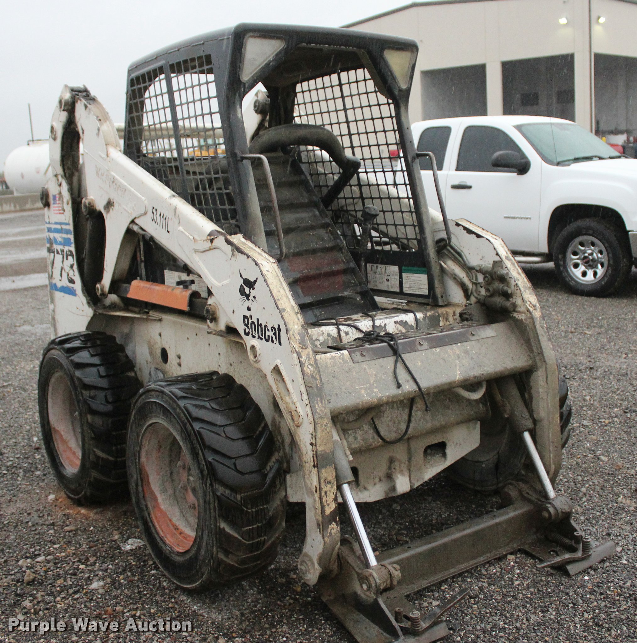 Purple Wave is selling a used Skid Steer Loader in Oklahoma. This item is a 2002 Bobcat 773 skid steer with the following: 6,227 hours on meter, Four cylinder diesel engine, Hydrostatic transmission, Open station/canopy, Spring suspension seat, Front and rear work lights, Backup alarm, Hydraulic quick coupler, High Flow auxiliary hydraulics, 10-16.5 tires, Engine needs replaced, Serial 517621282, Unit# 53-111L