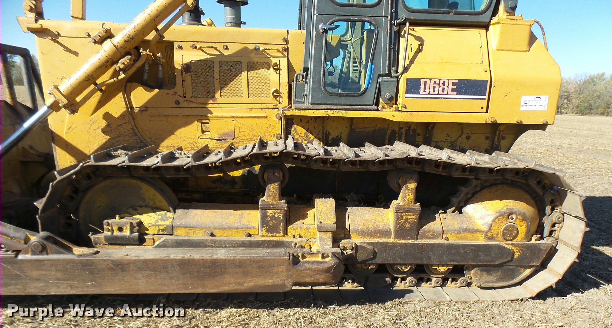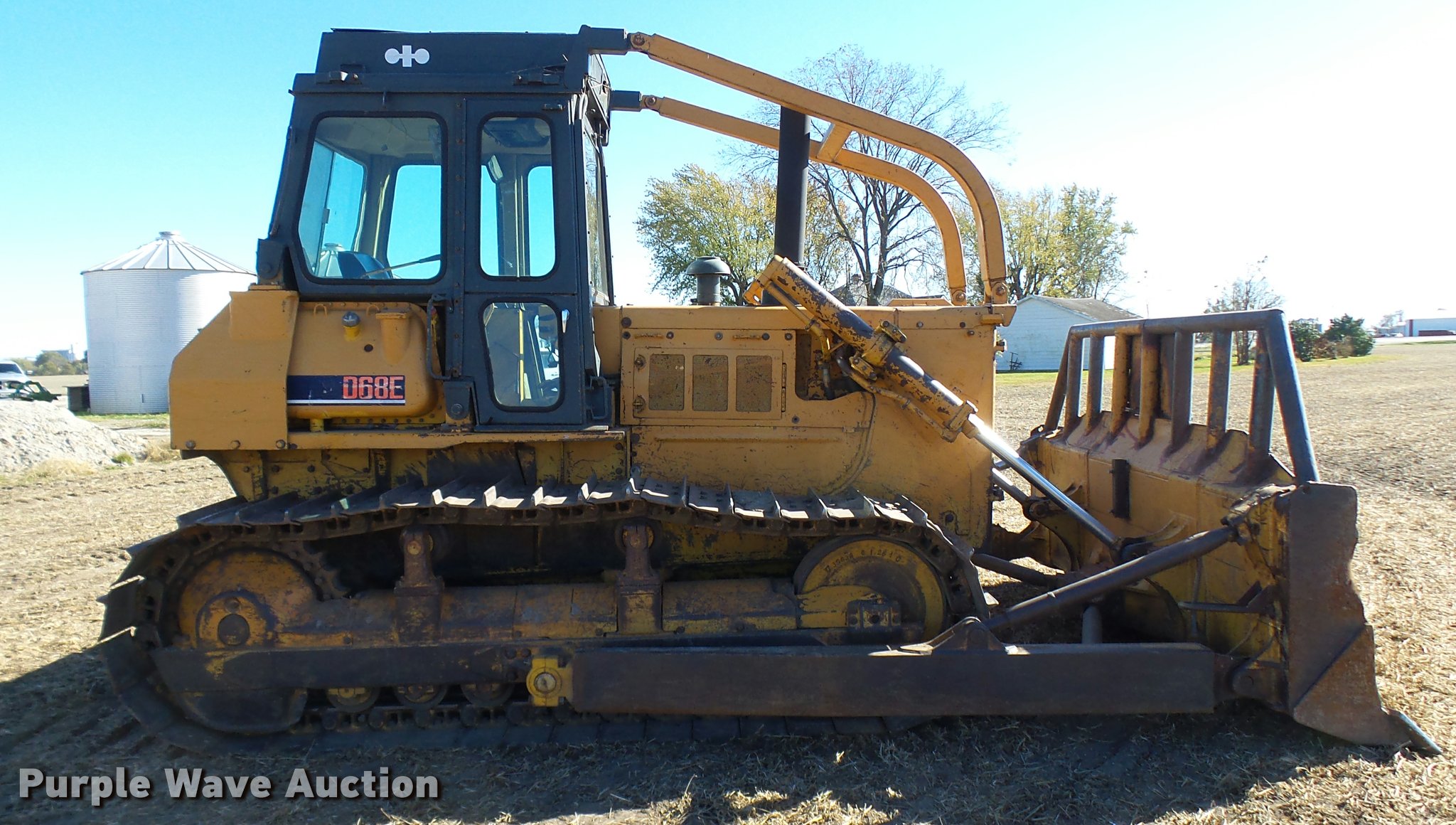 Purple Wave is selling a used Crawler Dozer in Missouri. This item is a 1991 Komatsu D68E-1 dozer with the following: 13,986 hours on meter, Cummins 855 six cylinder diesel engine, 200 HP, Powershift transmission, 3F-3R gears, Cab, AC and heat, Suspension seat, Clutch brake steering, Sweeps, 11' angle dozer blade, Auxiliary hydraulics, Track guards, Seven bottom rollers, 26" single grouser track pads, Serial B1020