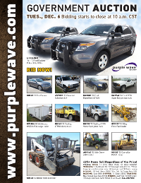 - All information for vehicles, equipment, or items offered for sale is intended to be as accurate as possible; however, bidders are urged to examine the vehicles, equipment, and items before bidding. An error or omission in the listing will not change the results of the bid.