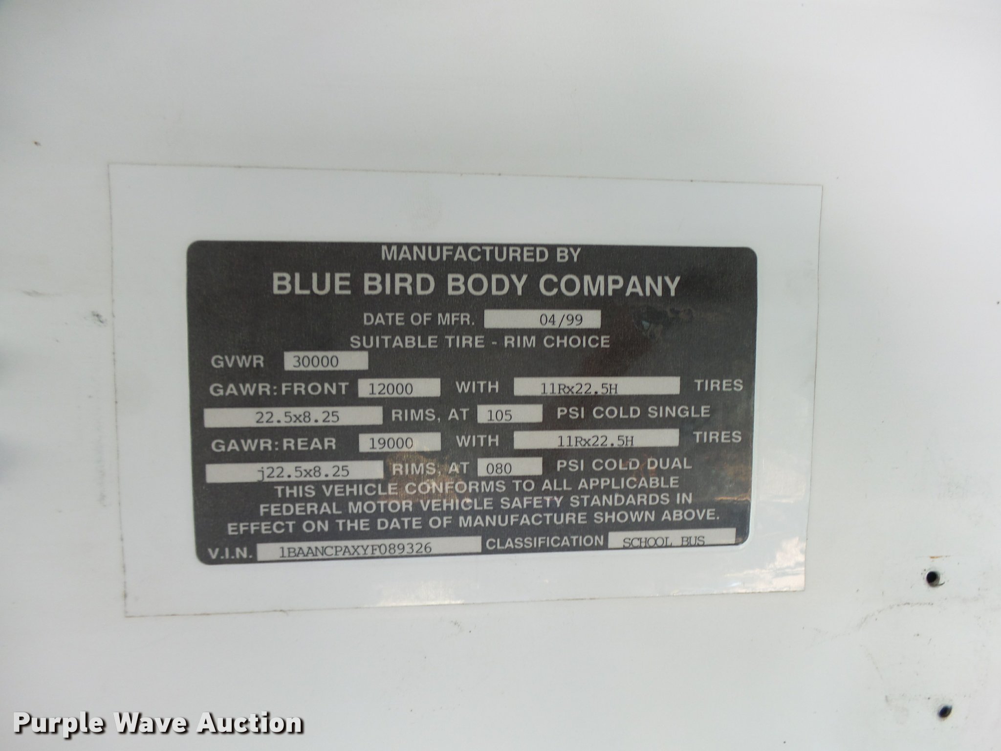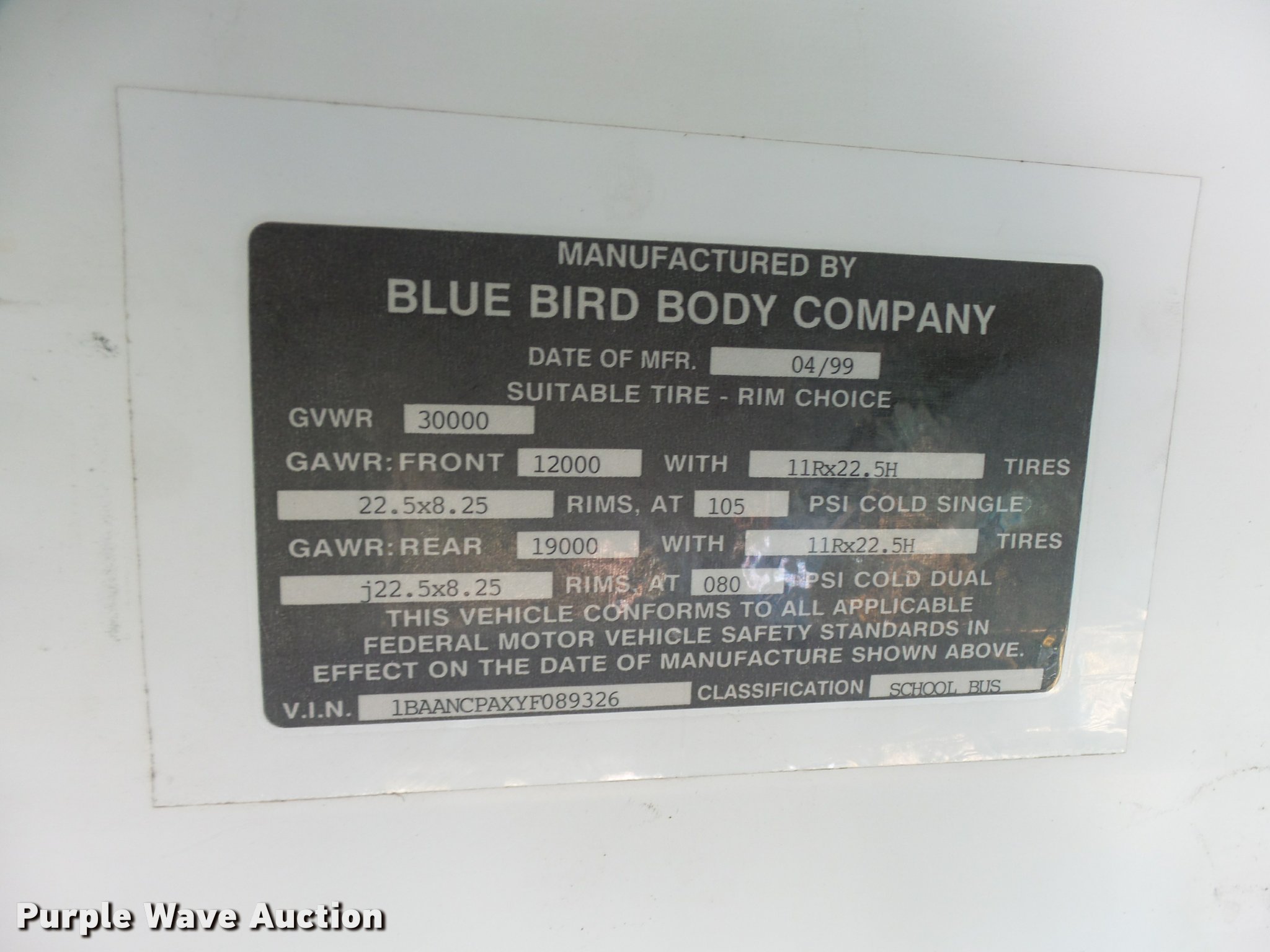 Purple Wave is selling a used Bus in Kansas. This item is a 2000 Blue Bird TC2000 school bus with the following: Unknown miles on odometer, Cummins ISB 5.9L L6 diesel engine, Automatic transmission, Kysor/Westran heater, AM/FM/cassette, PA system, Vinyl interior, Exterior light monitor, 84 passenger capacity, Rear, side, and ceiling emergency egress, First aid kits, Air brakes, 11R22.5 tires, GVWR 30,000 lbs, Some seats cushions missing, Non-operational engine, parts only