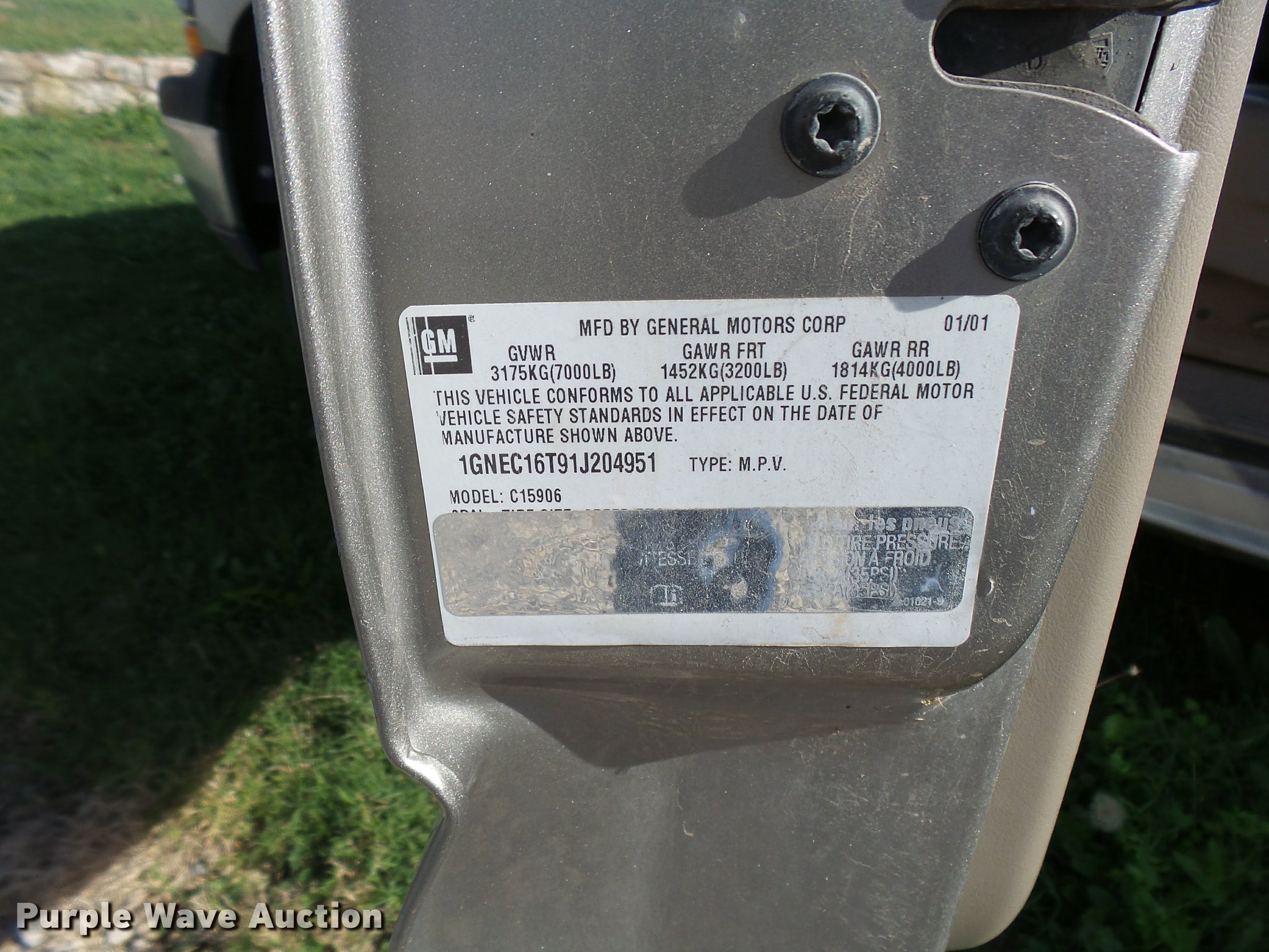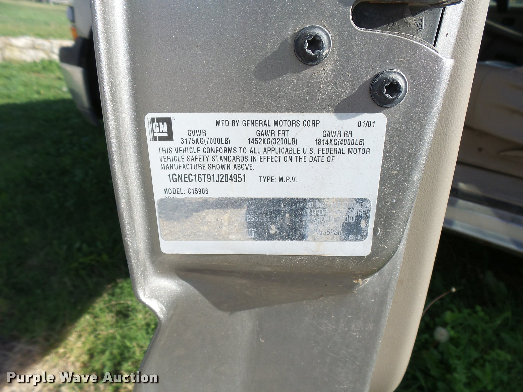 Purple Wave is selling a used Passenger Vehicle in Kansas. This item is a 2001 Chevrolet Suburban C1500 SUV with the following: 153,313 miles on odometer, 5.3L V8 16V OHV gas engine, Automatic transmission, AC and heat, AM/FM, Manual windows and locks, Vinyl interior, Receiver hitch, Trailer wiring, 245/75R16 tires, Seat torn, Headliner torn, Rust