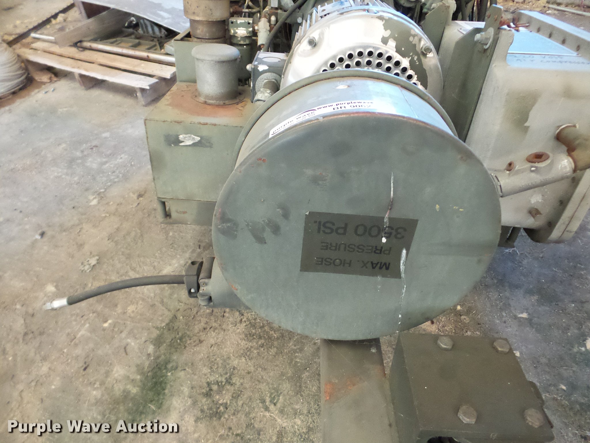 Purple Wave is selling a used Air Compressor in Kansas. This item is a Davey 220U air compressor with the following: 358 hours on meter, Lincoln electric motor, 15 HP, Three phase, Pintle hitch, Unknown operating condition