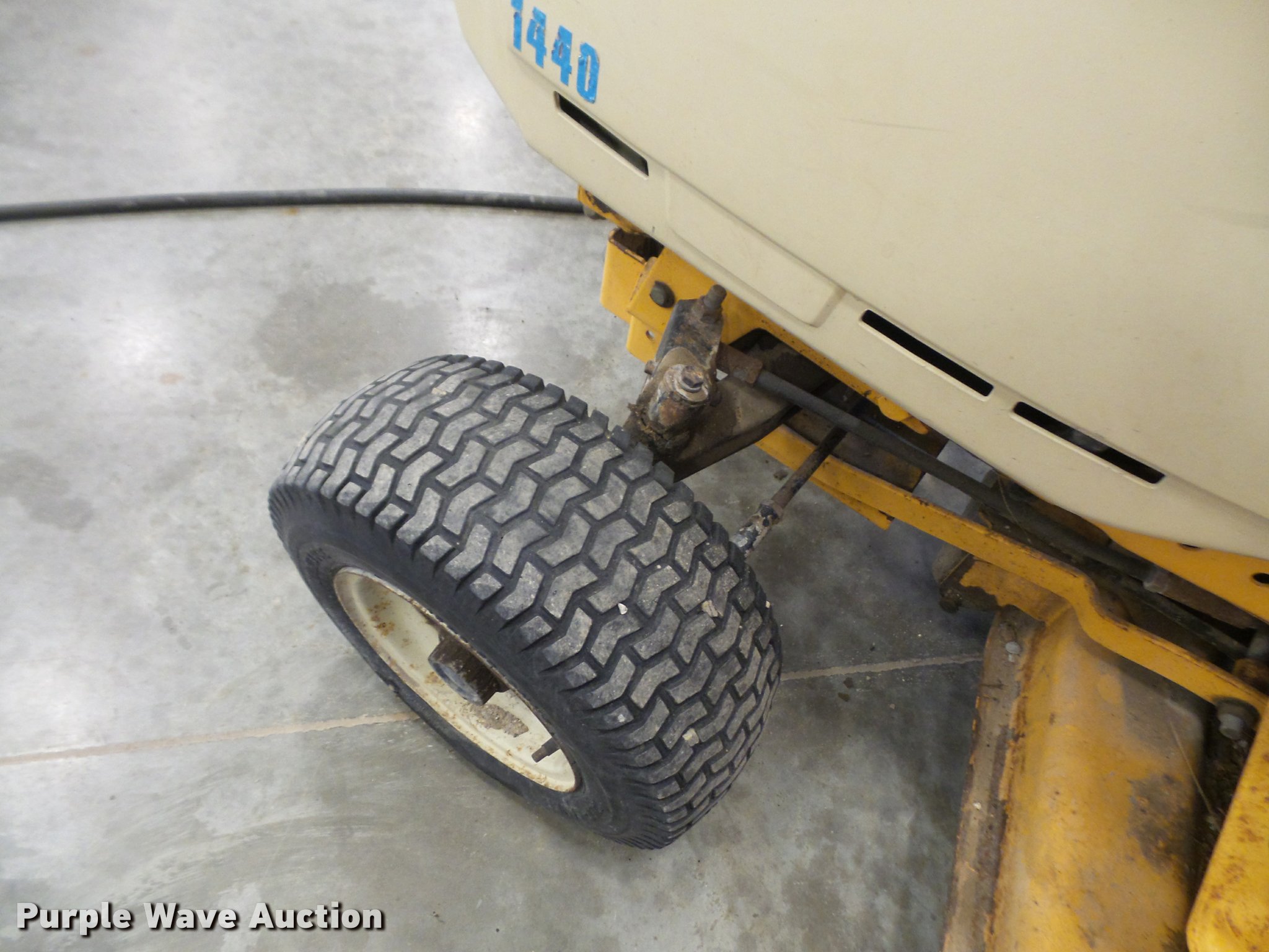 Purple Wave is selling a used Lawn Mower in Kansas. This item is a Cub Cadet 1440 lawn mower with the following: 75 hours on meter, 46" cut, Cub Cadet V-twin gas engine, 14 HP, Flat tires, Needs carburetor work, Serial 847809, Unit# PWK8472