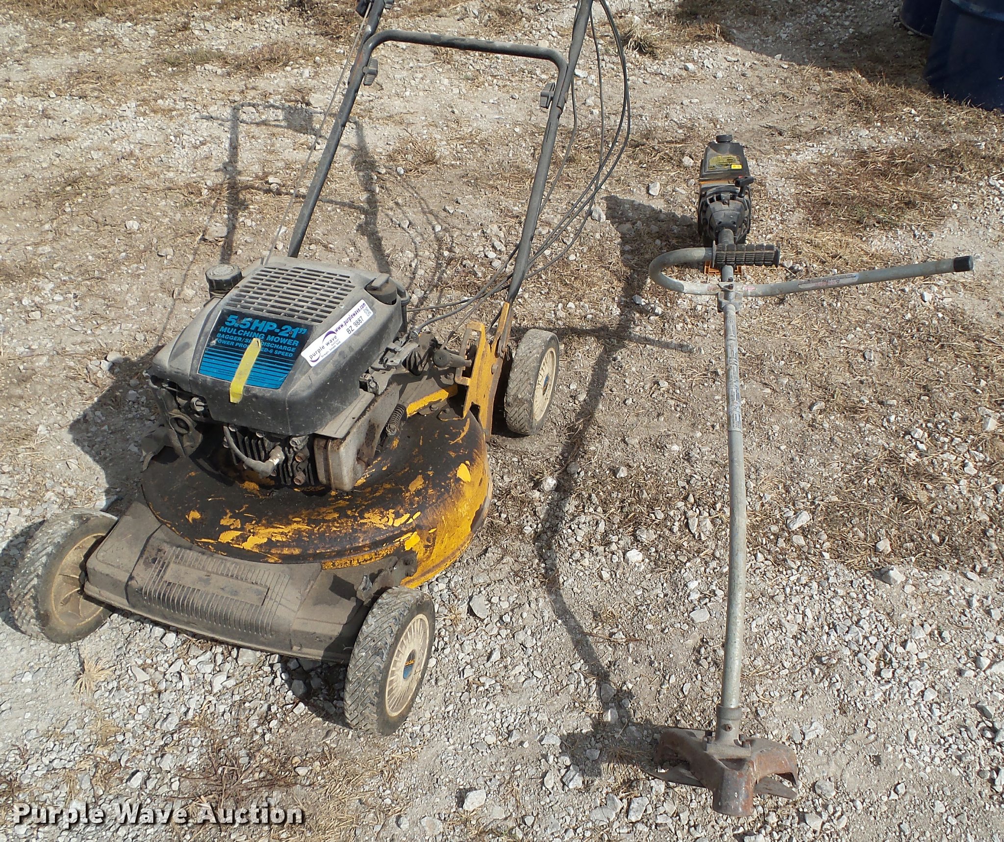 Purple Wave is selling a used Lawn and Garden in Iowa. This item is a Lawn and garden equipment with the following: Poulan push mower, Poulan string trimmer