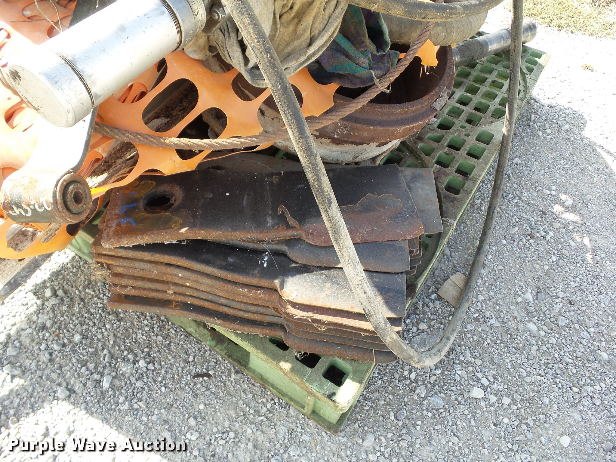 Purple Wave is selling a used Tools in Iowa. This item is a Tools with the following: Brush cutter blades, Caterpillar blade extension, Brush cutter gearbox, (2) steel wheels