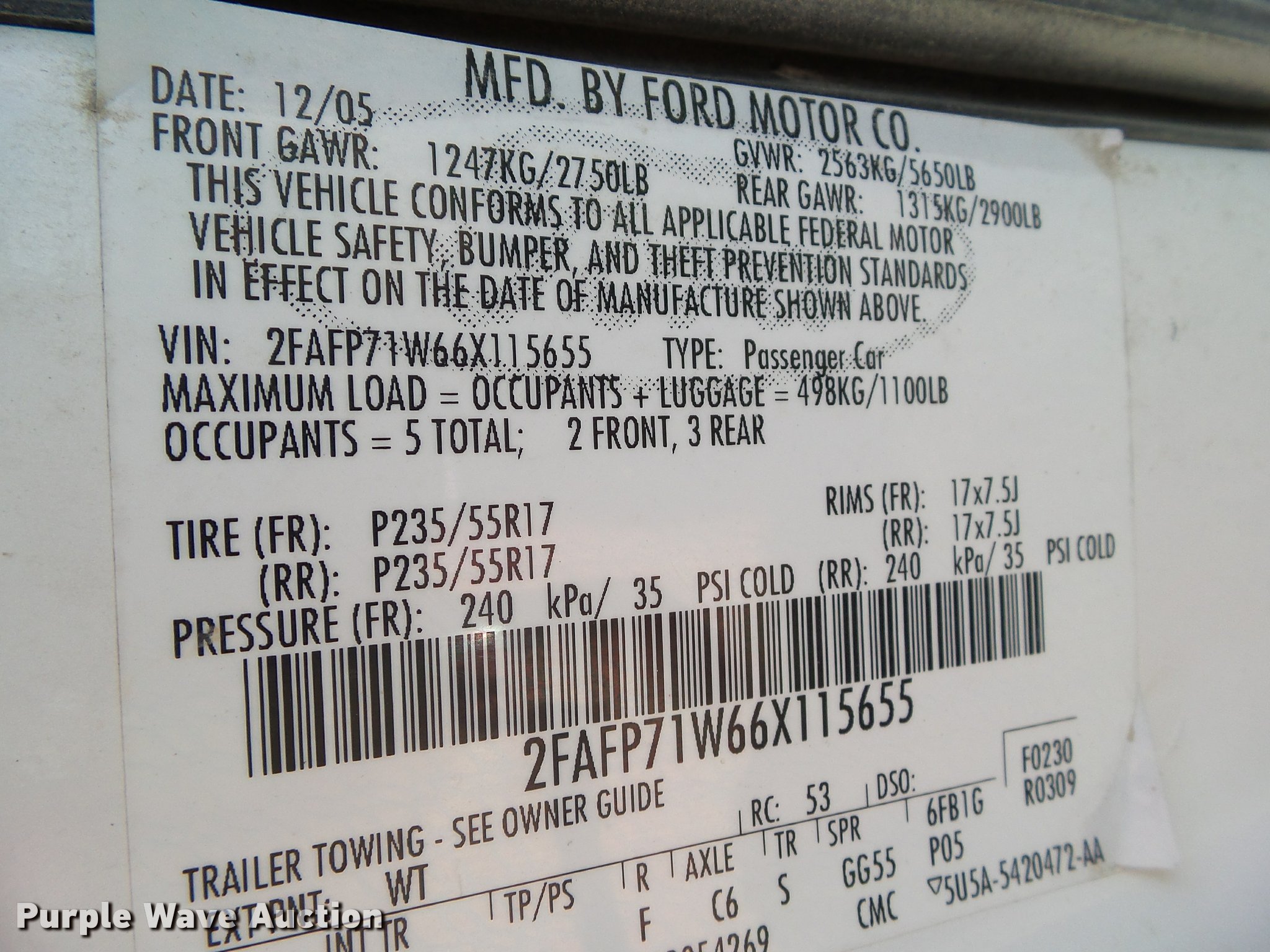 Purple Wave is selling a used Passenger Vehicle in Iowa. This item is a 2006 Ford Crown Victoria Police Interceptor with the following: 123,930 miles on odometer, 4.6L V8 SOHC 16V gas engine, Automatic transmission, AC and heat, AM/FM, Power windows, locks, and seat, Cloth interior, P235/55R17 tires