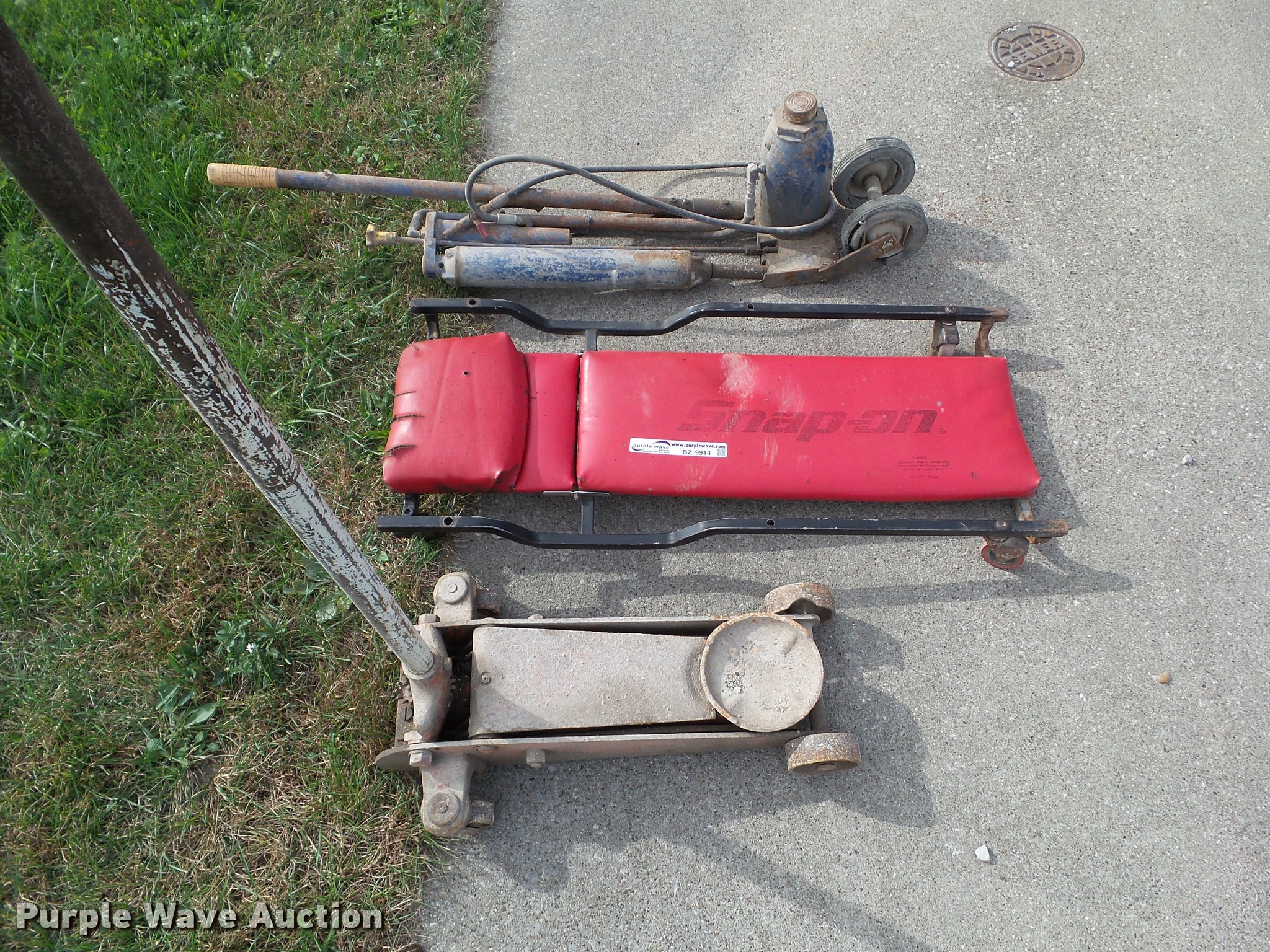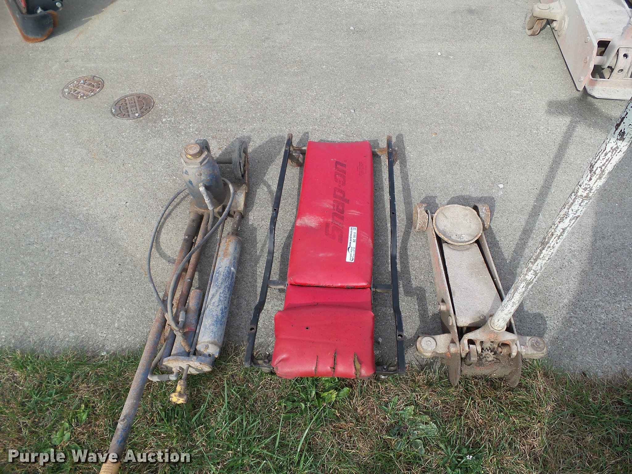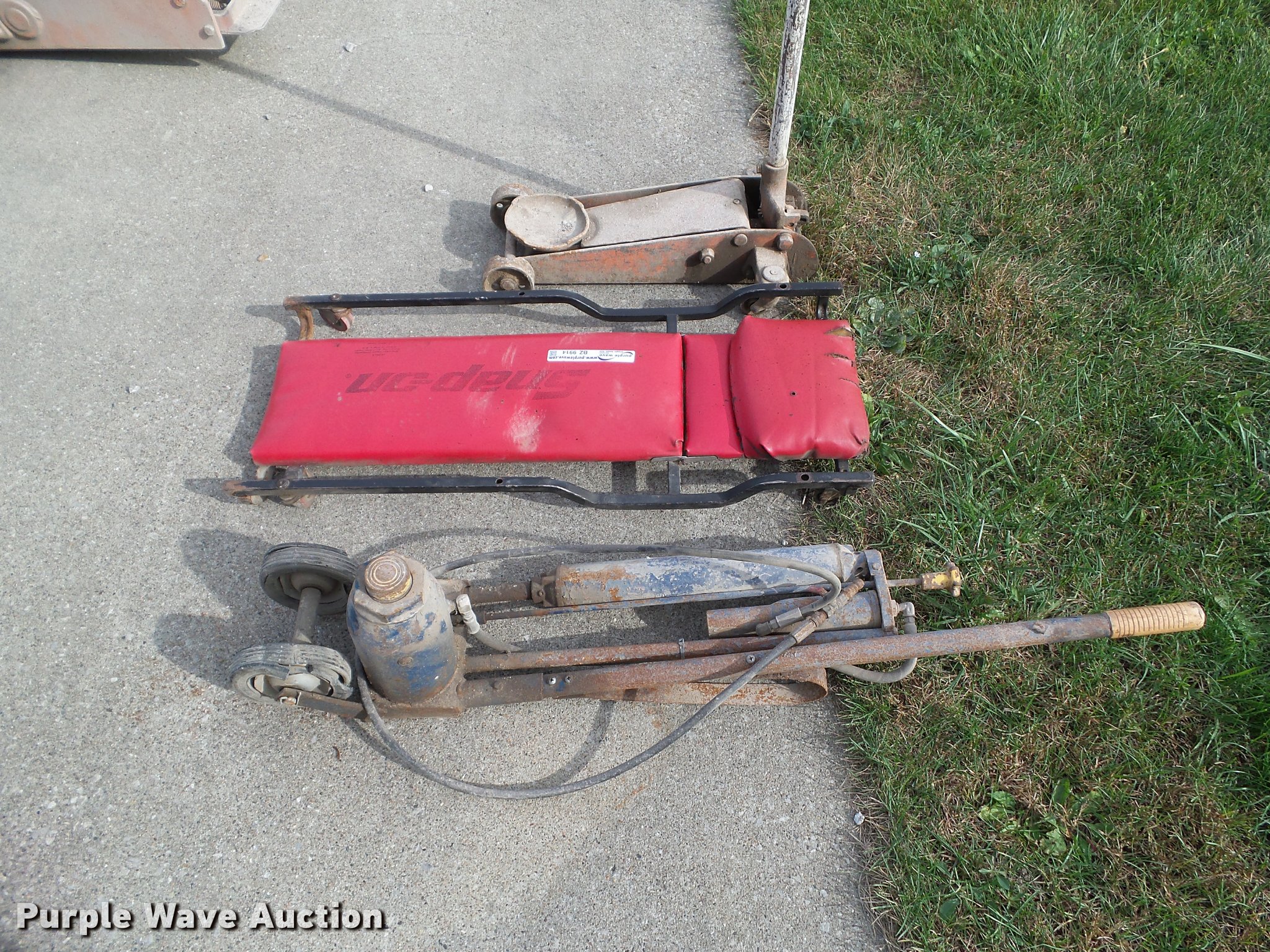 Purple Wave is selling a used Tools in Iowa. This item is a Tools with the following: Snap-on creeper, (2) floor jacks