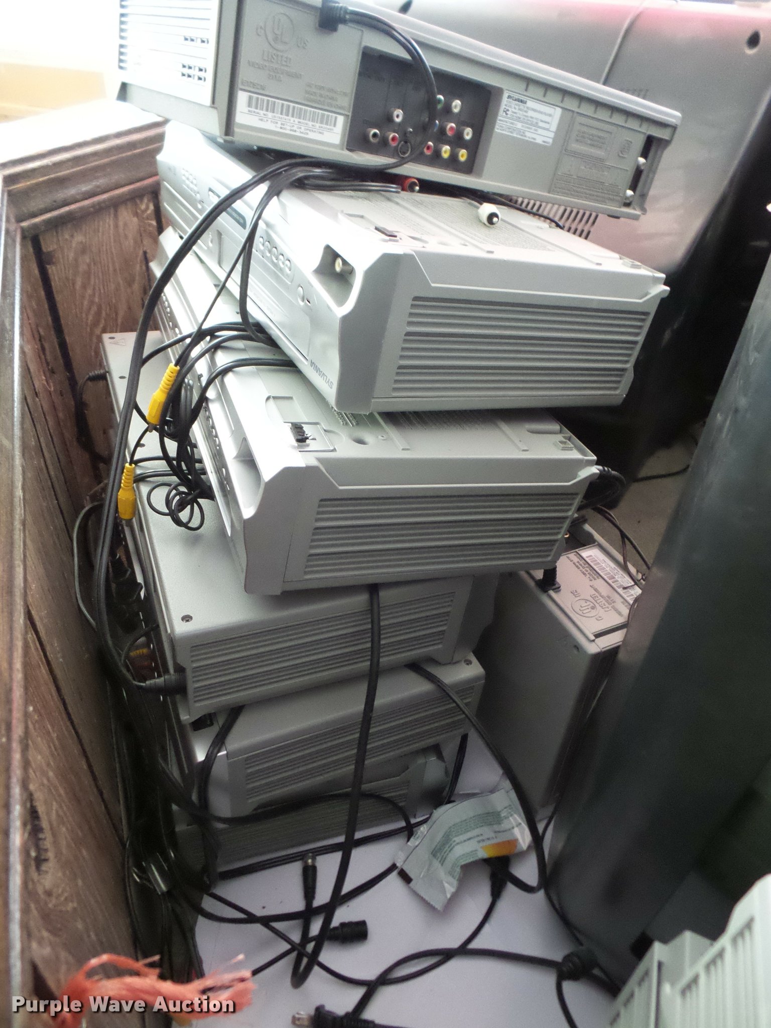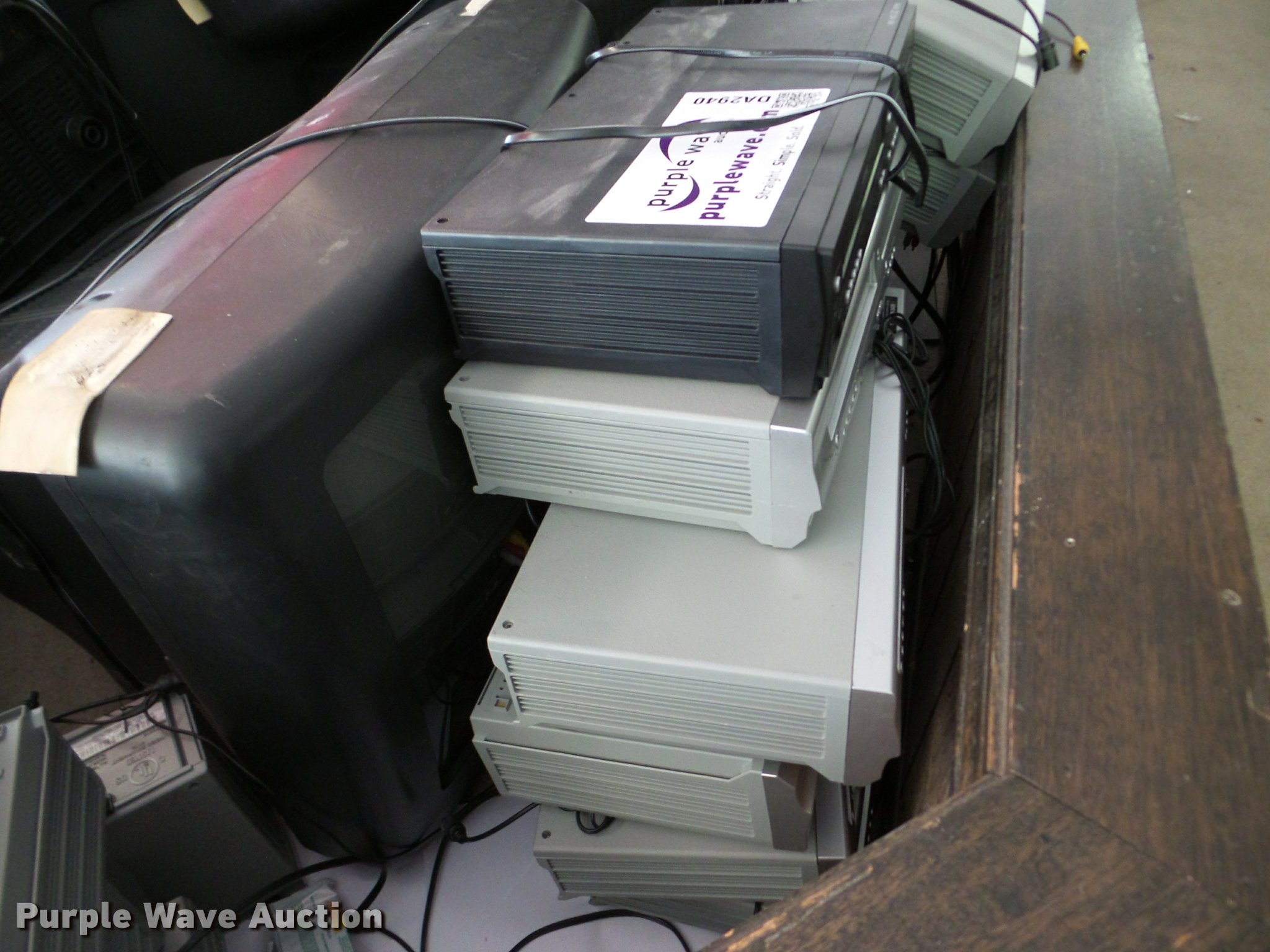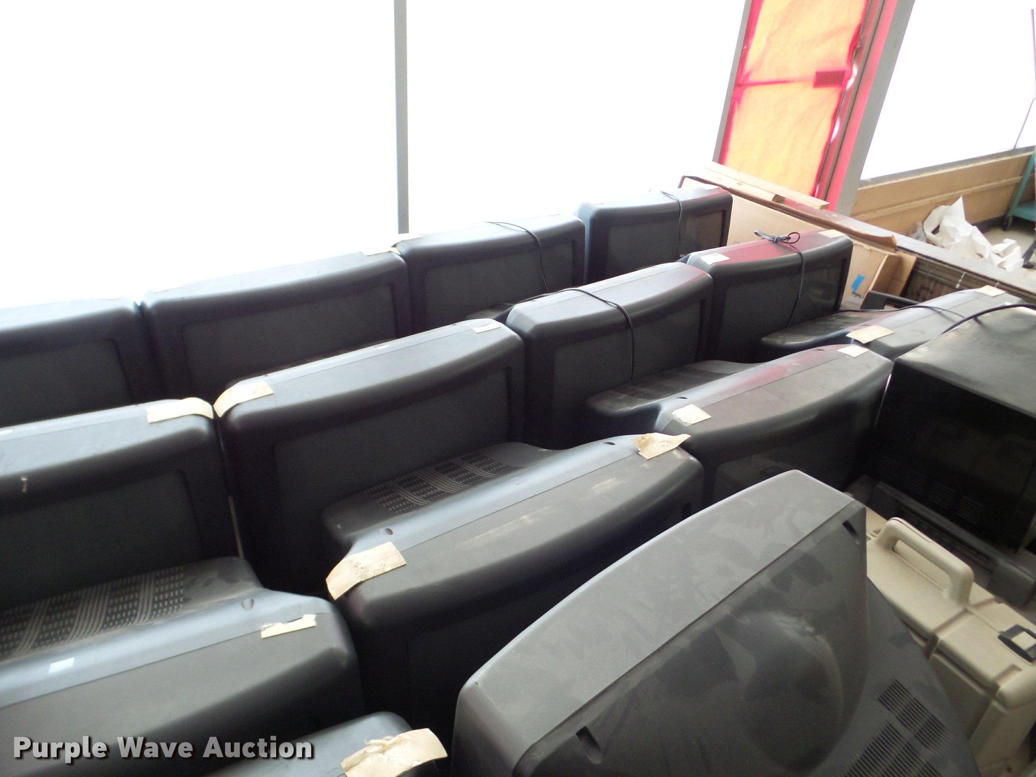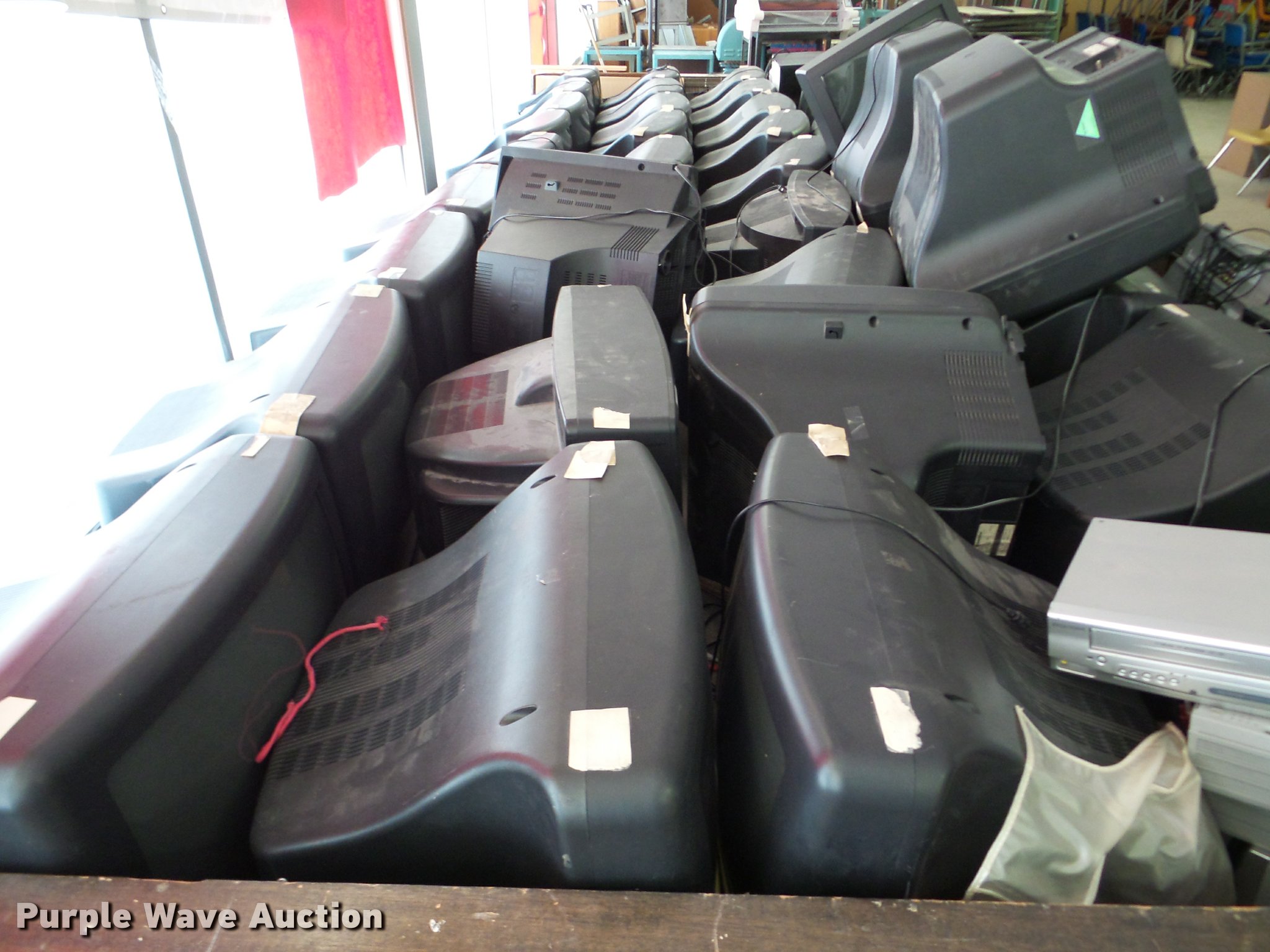 Purple Wave is selling a used Electronics in Kansas. This item is a Electronics with the following: Approximately 38 televisions, DVD players, VHS players, Cassette players, Approximately 6 projector screens, (4) projectors, (3) laminating machines, Unknown operating condition, Television mounts