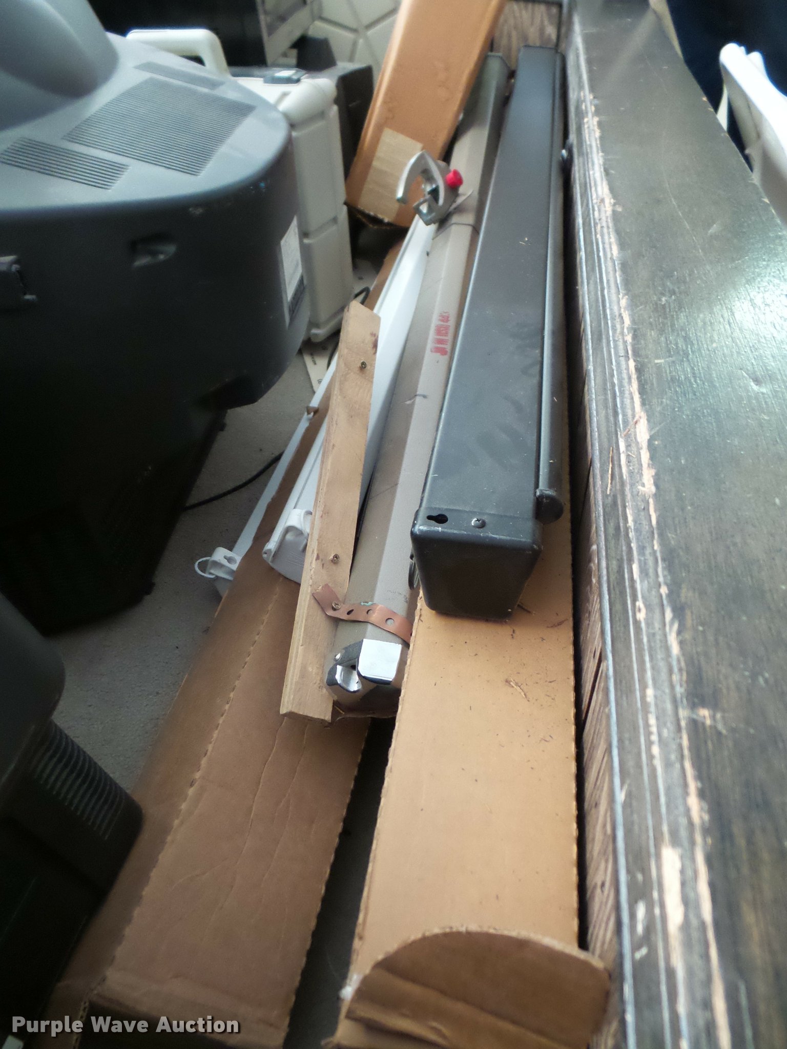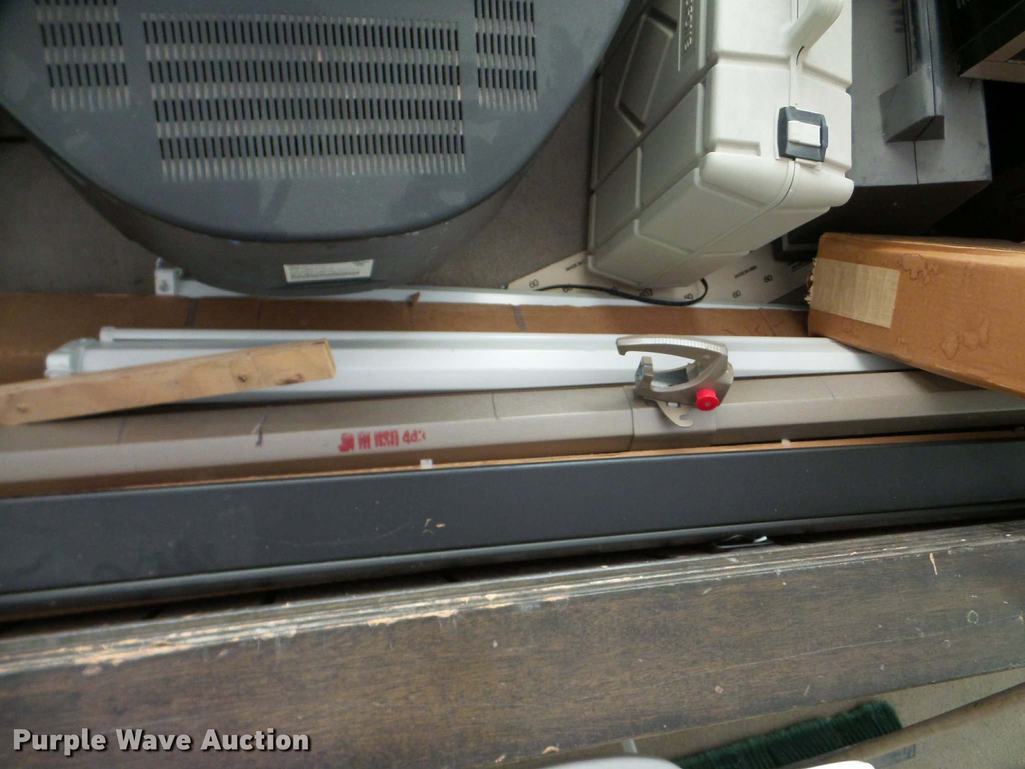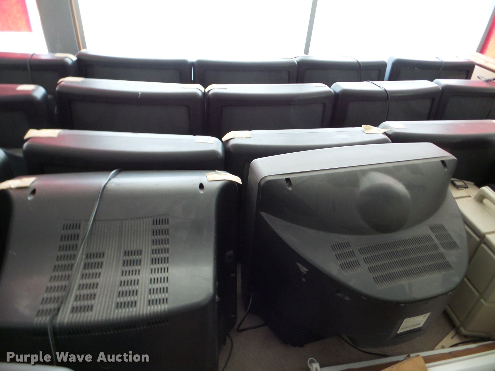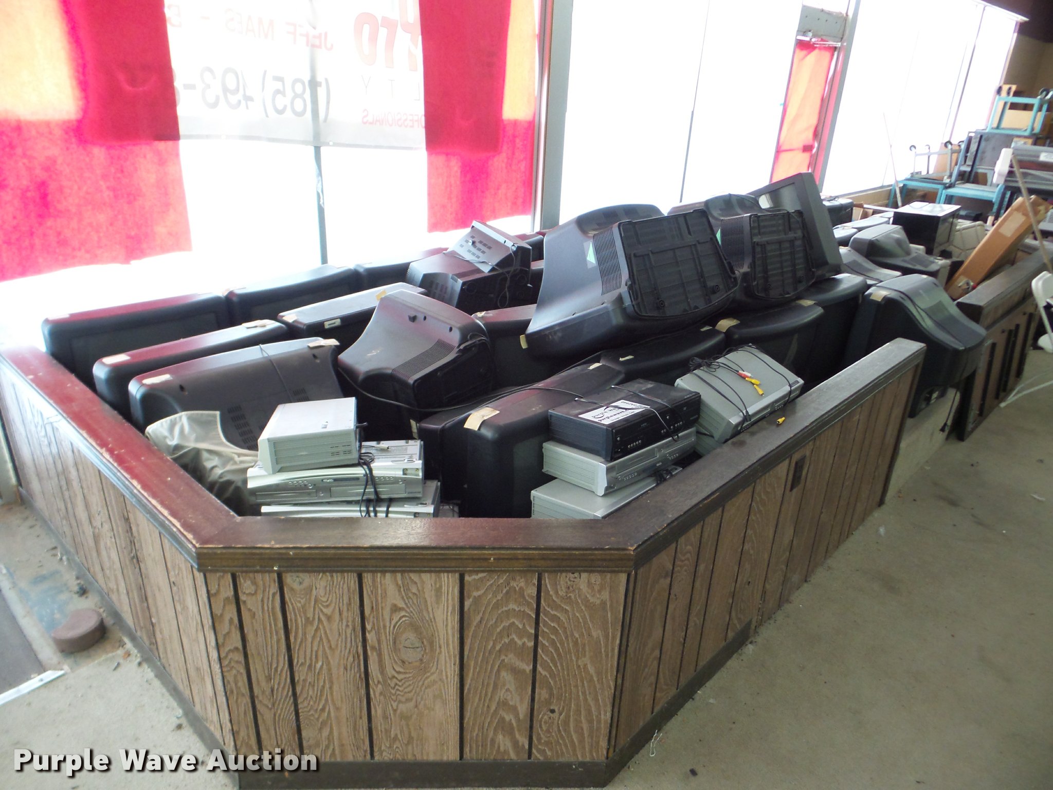 Purple Wave is selling a used Electronics in Kansas. This item is a Electronics with the following: Approximately 38 televisions, DVD players, VHS players, Cassette players, Approximately 6 projector screens, (4) projectors, (3) laminating machines, Unknown operating condition, Television mounts