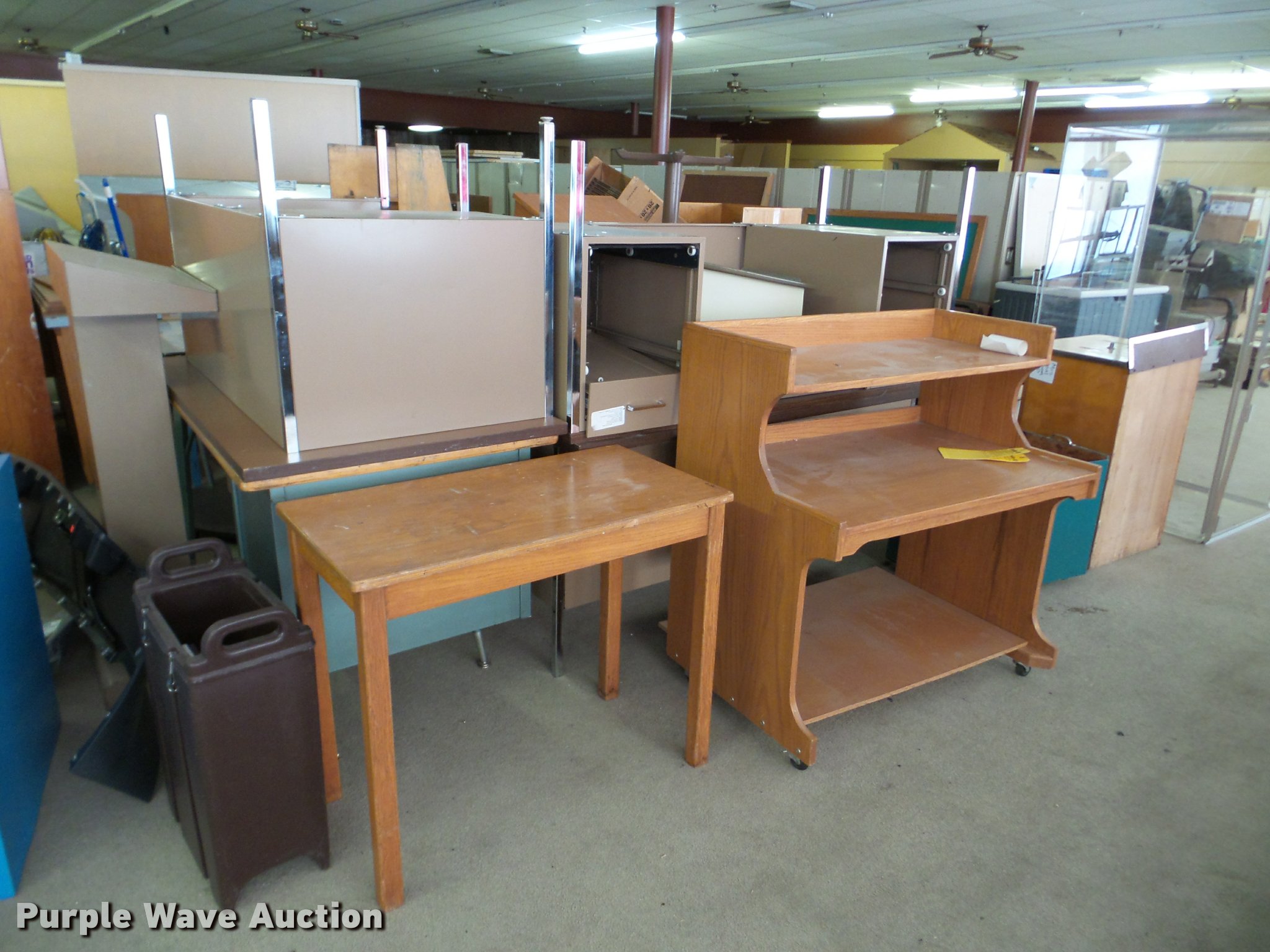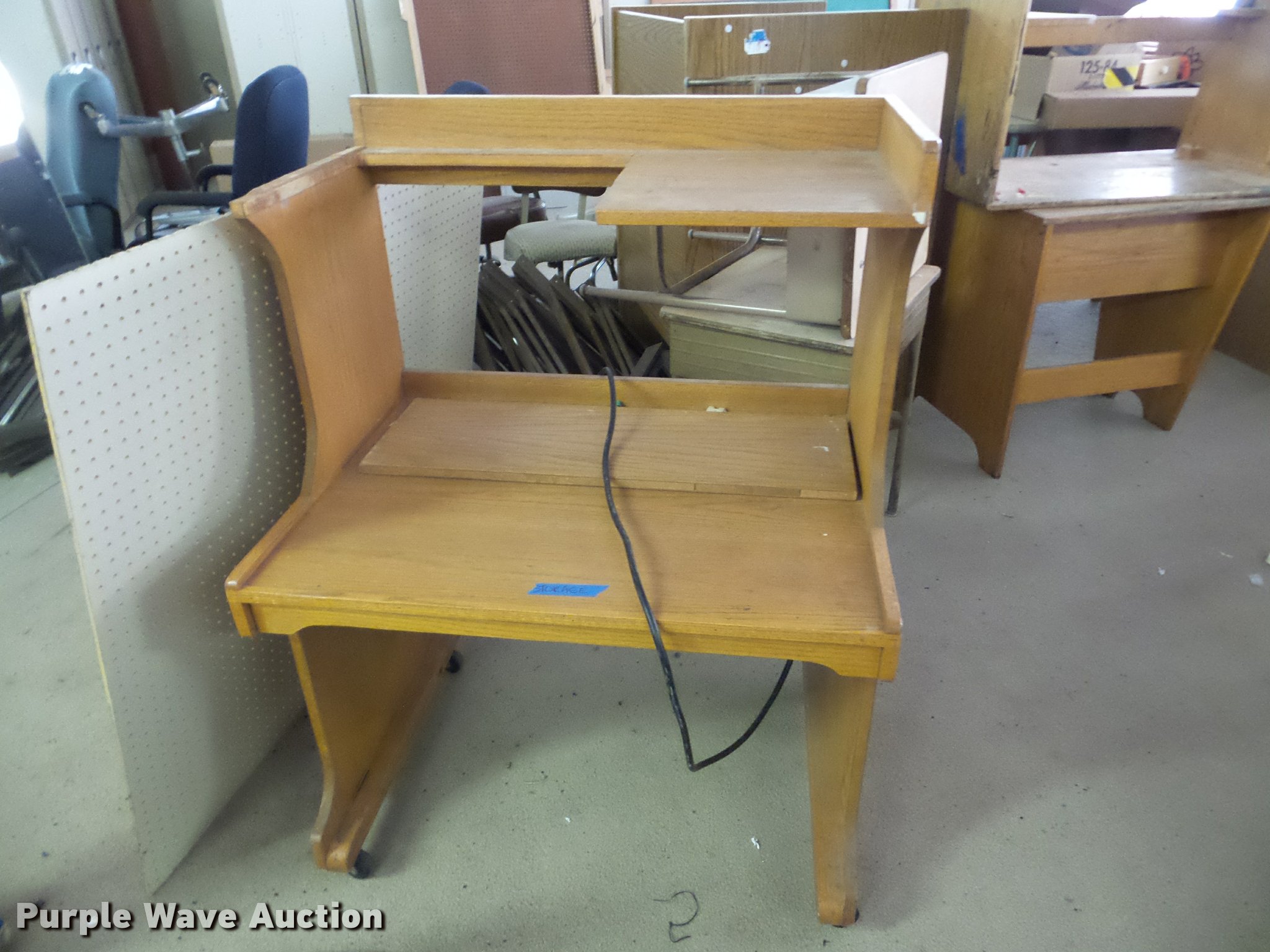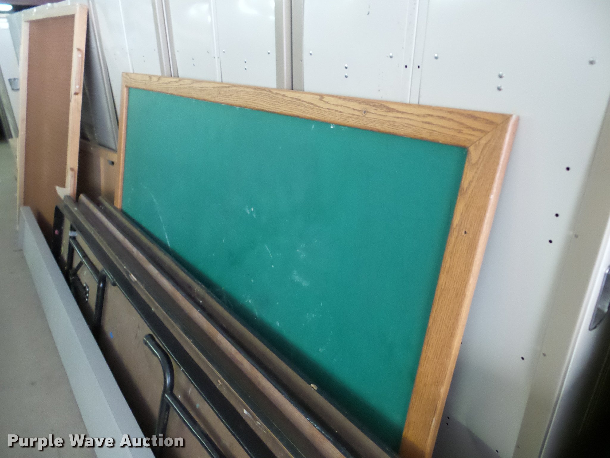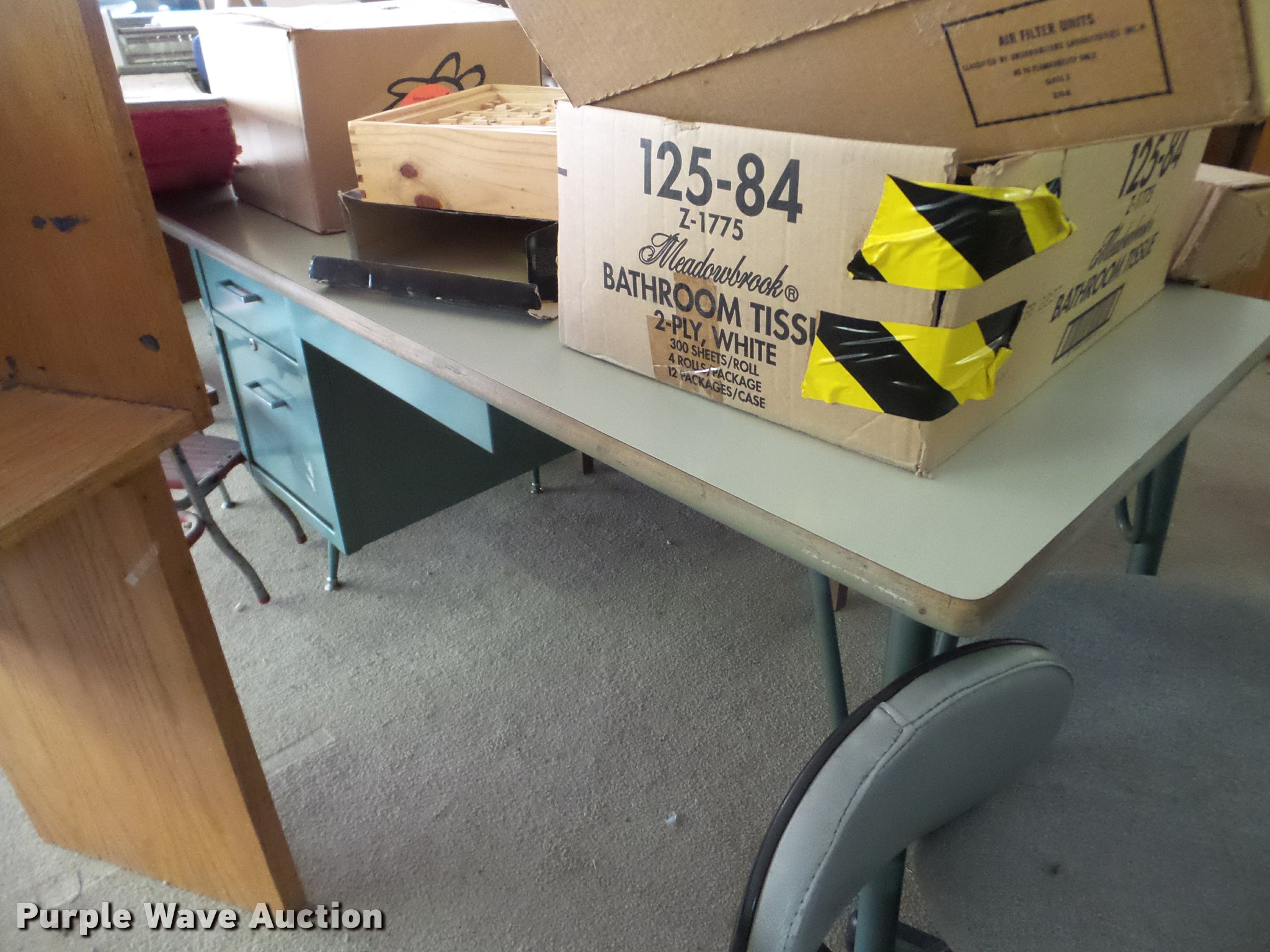 Purple Wave is selling a used Office Supplies and Equip. in Kansas. This item is a Office supplies with the following: Approximately 10 desks, Cabinets, Approximately 15 wood desk tops, Chalk board, (3) wood folding tables, (3) podiums