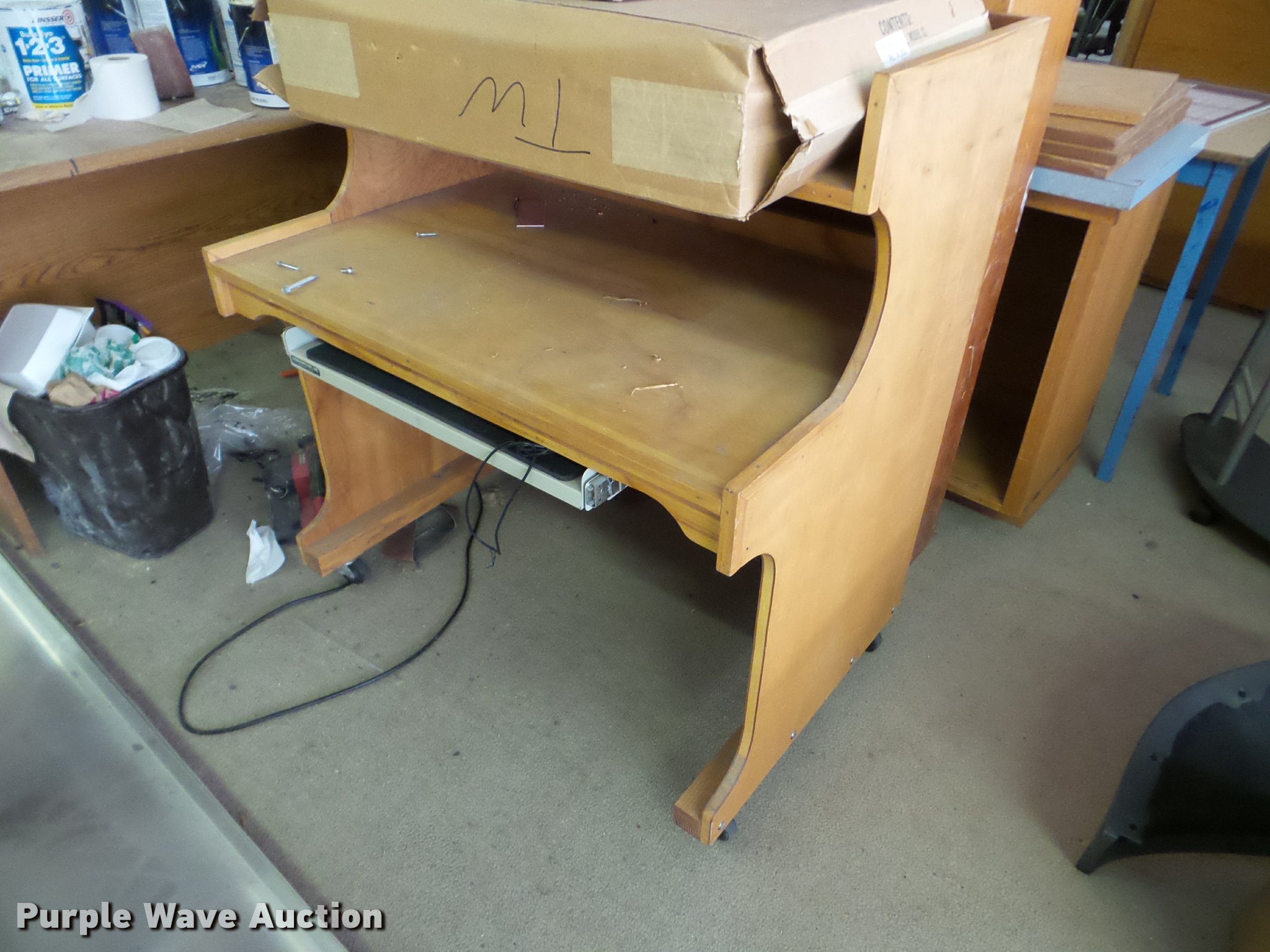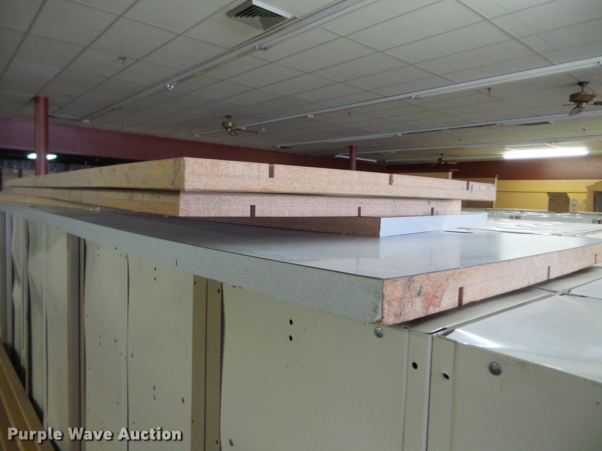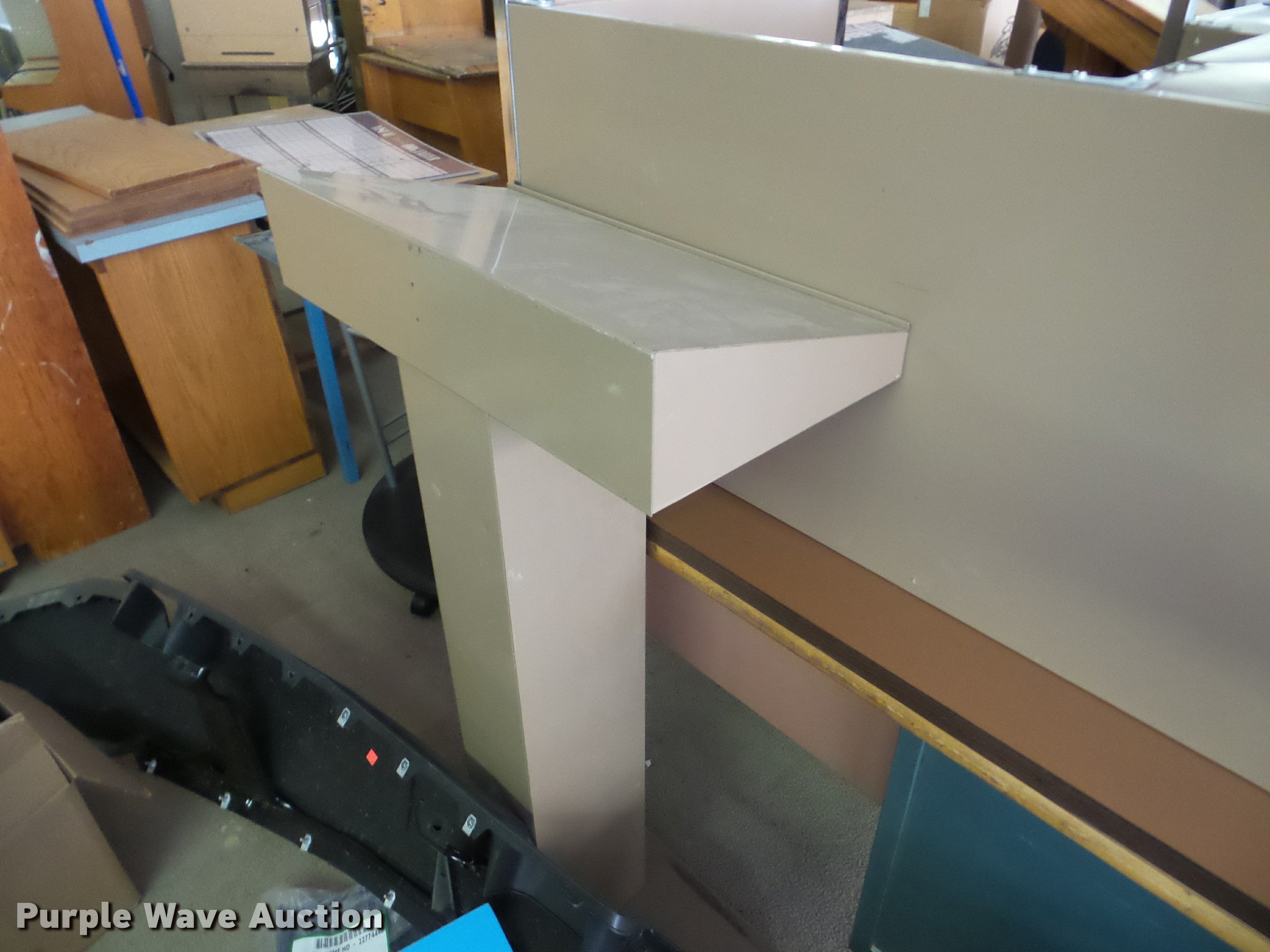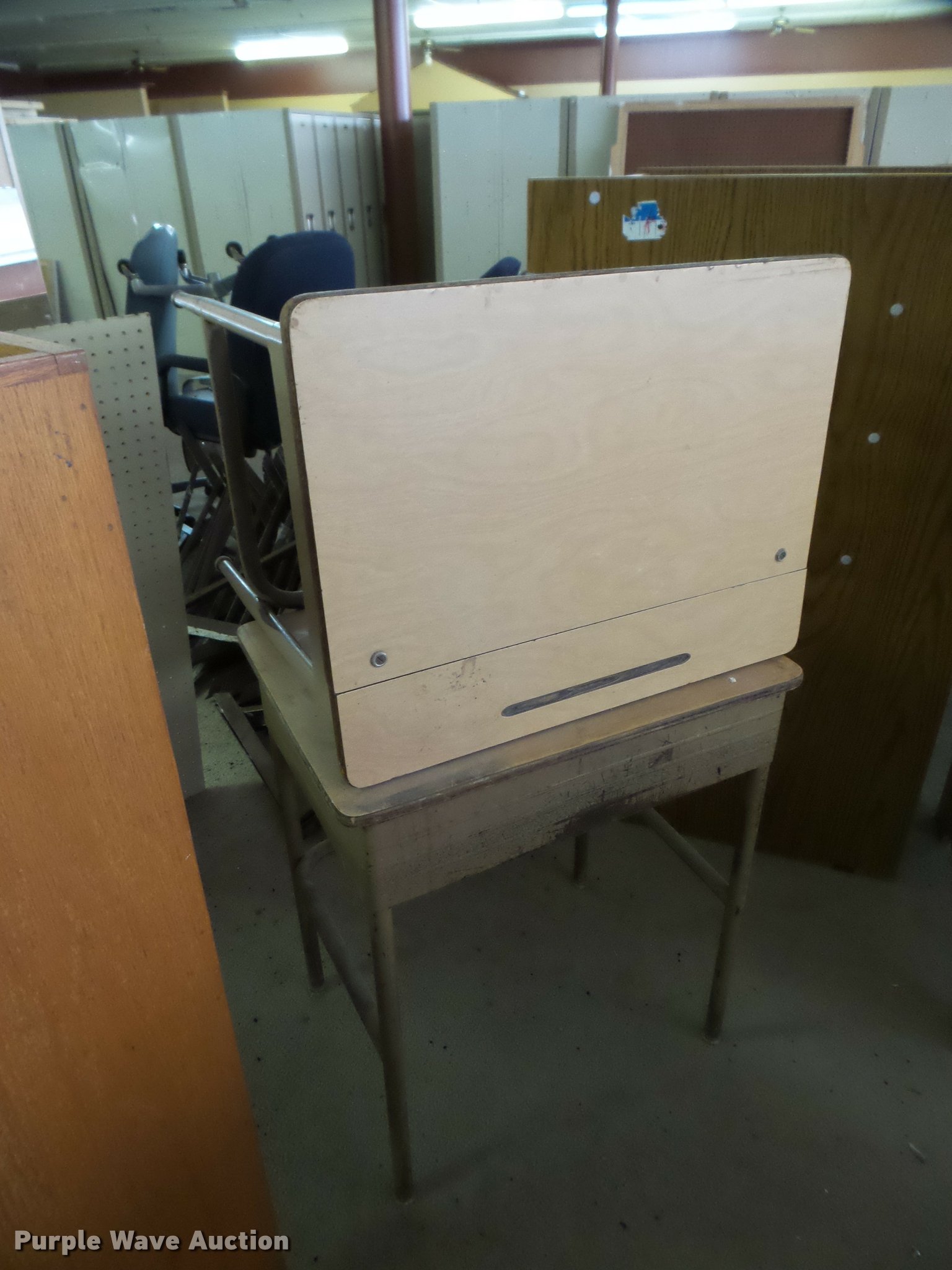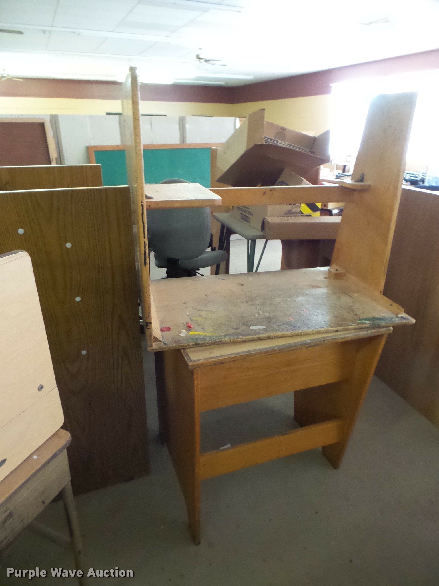 Purple Wave is selling a used Office Supplies and Equip. in Kansas. This item is a Office supplies with the following: Approximately 10 desks, Cabinets, Approximately 15 wood desk tops, Chalk board, (3) wood folding tables, (3) podiums