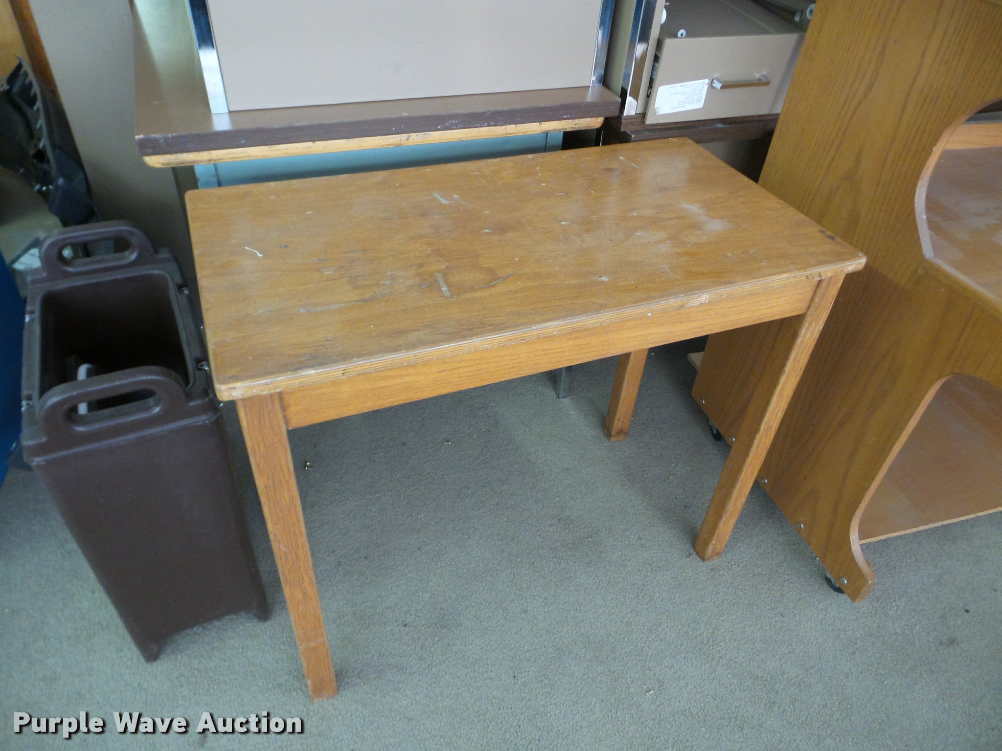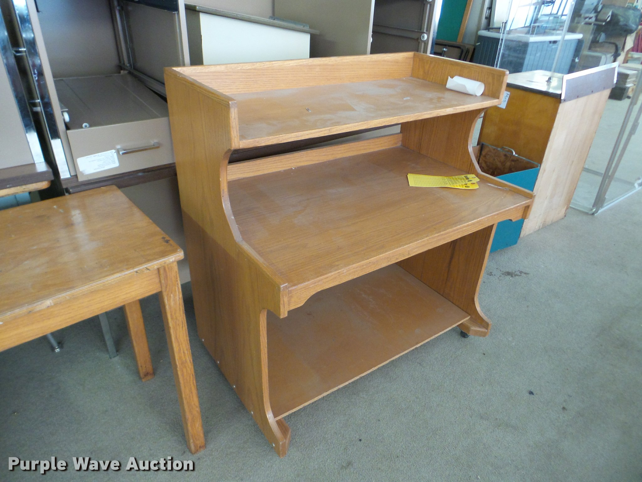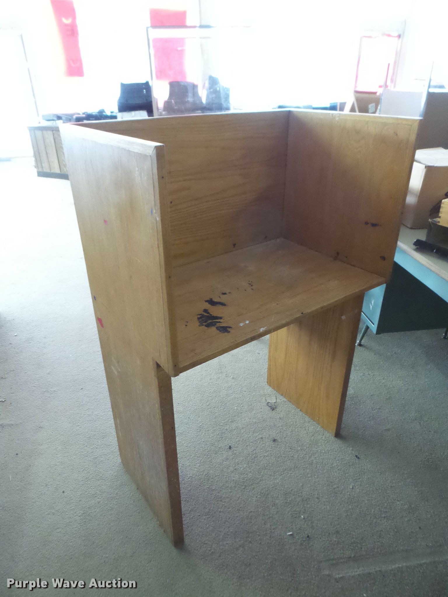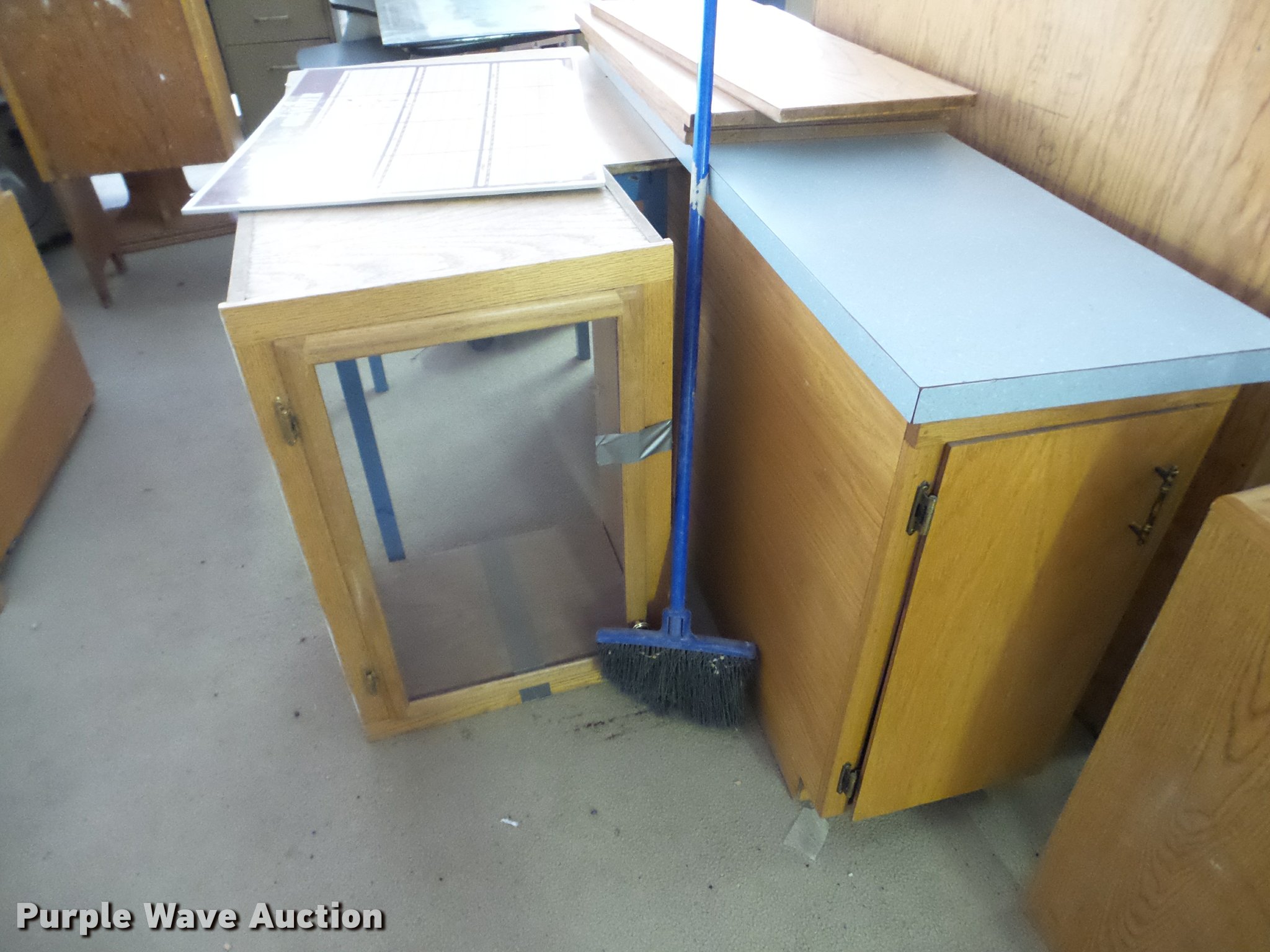 Purple Wave is selling a used Office Supplies and Equip. in Kansas. This item is a Office supplies with the following: Approximately 10 desks, Cabinets, Approximately 15 wood desk tops, Chalk board, (3) wood folding tables, (3) podiums