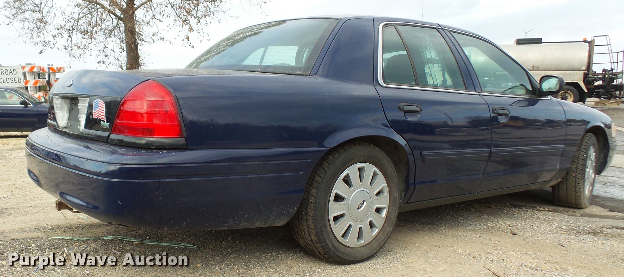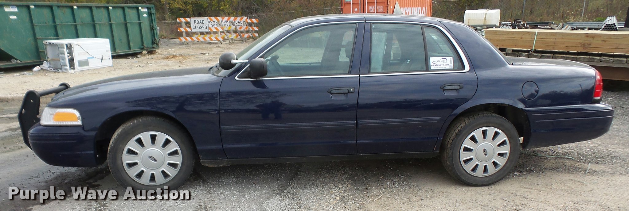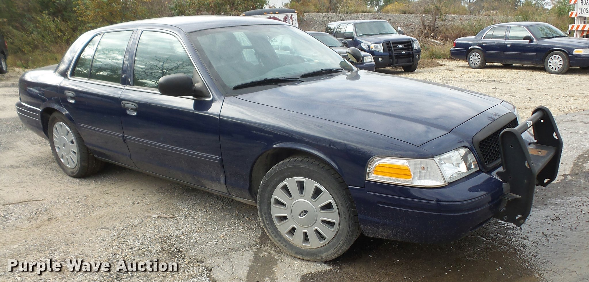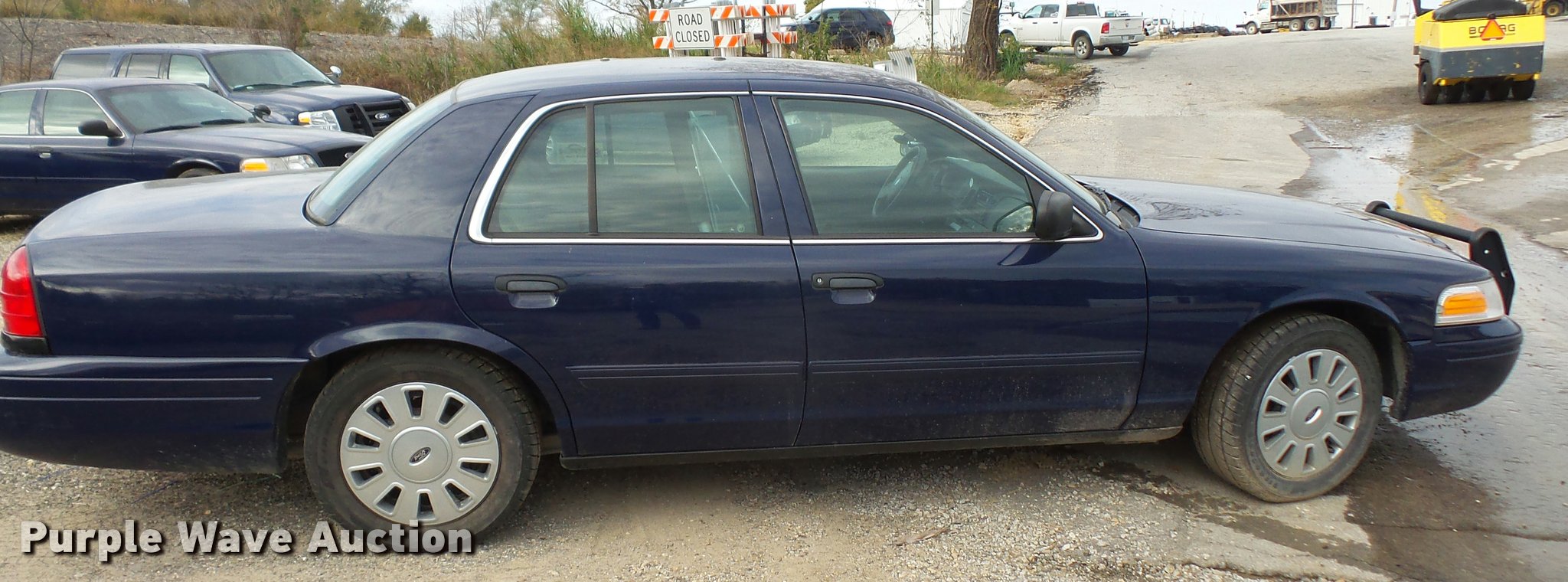 Purple Wave is selling a used Passenger Vehicle in Kansas. This item is a 2010 Ford Crown Victoria Police Interceptor with the following: 128,647 miles on odometer, 4.6L V8 SOHC 16V FFV gas engine, Automatic transmission, AC and heat, Tilt, Cruise, AM/FM, Power windows, locks, mirrors, and seat, Cloth front interior, Vinyl rear interior, Spotlight, Cage divider, Grill guard, Receiver hitch, 235/55R17 tires, No rear view mirror