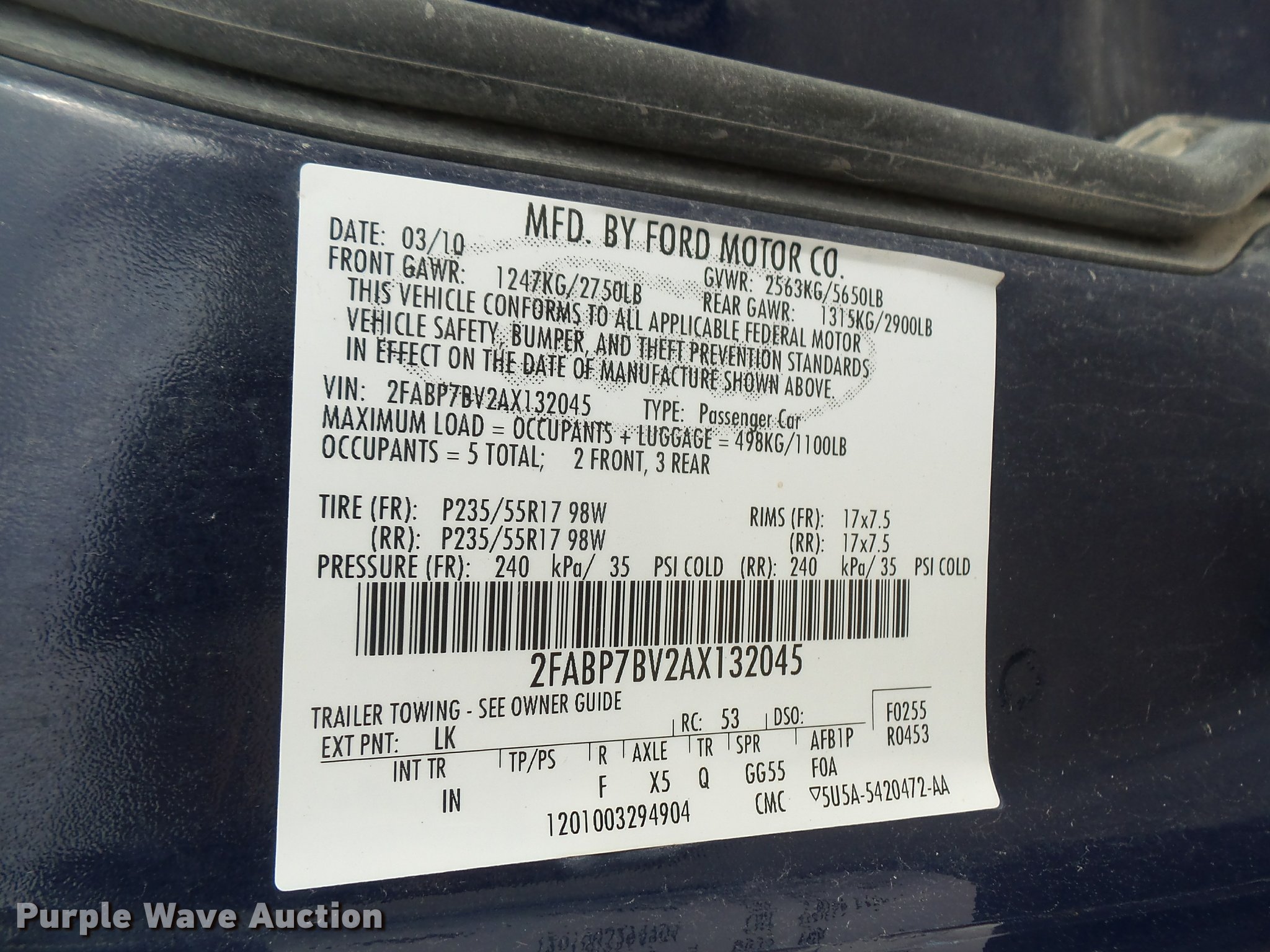 2010 Ford Crown Victoria Police Interceptor. 128,647 miles on odometer, 4.6L V8 SOHC 16V FFV gas engine, Automatic transmission, AC and heat, Tilt, Cruise, AM/FM, Power windows, locks, mirrors, and seat, Cloth front interior, Vinyl rear interior, Spotlight, Cage divider, Grill guard, Receiver hitch, 235/55R17 tires, No rear view mirror. Kansas title. Seller is a government entity who will be assigning and distributing the title. Please contact the seller for distribution questions. 2FABP7BV2AX132045. Leavenworth County Sheriff's Office. 23670 187th St. Leavenworth, KS 66048