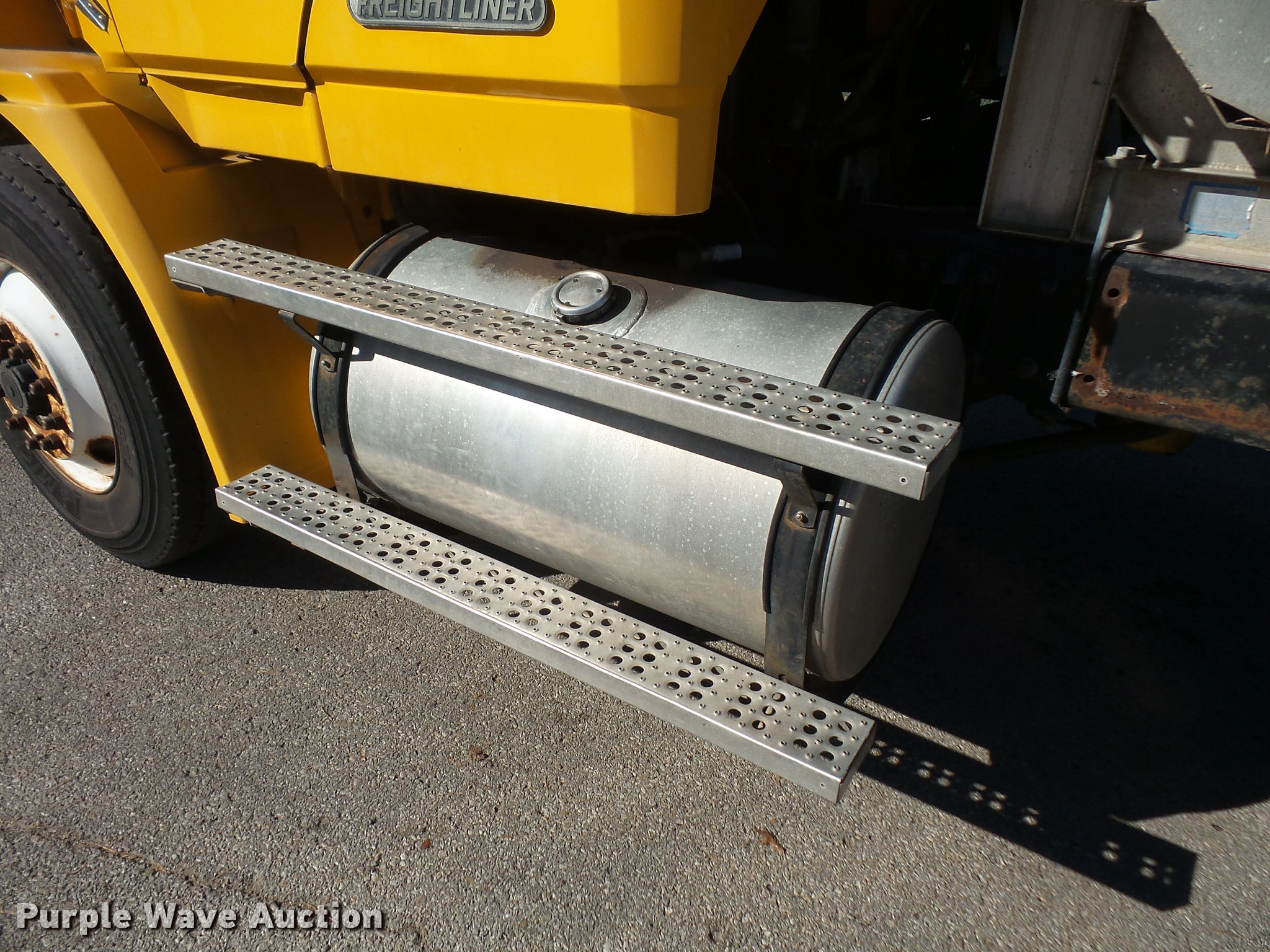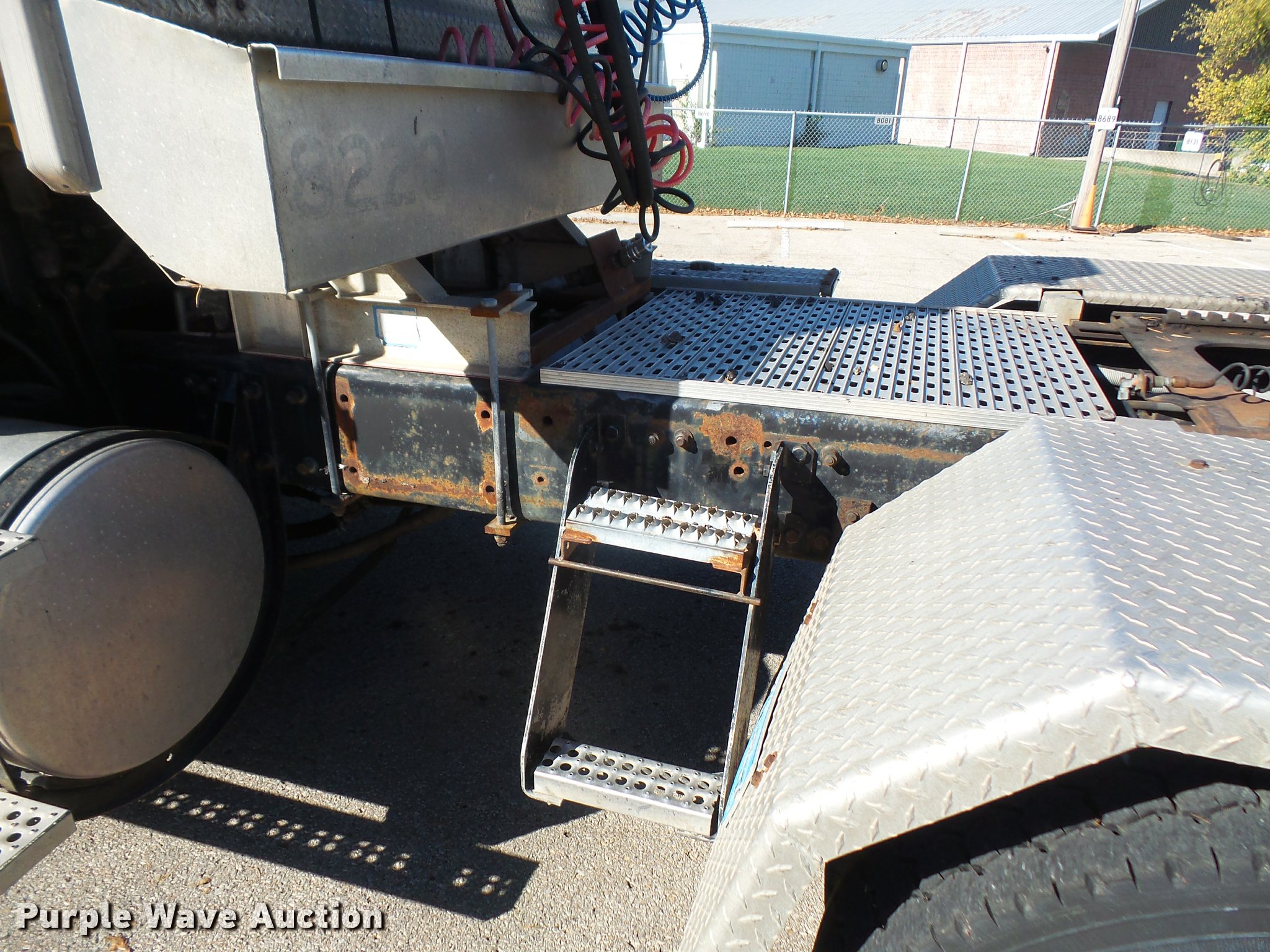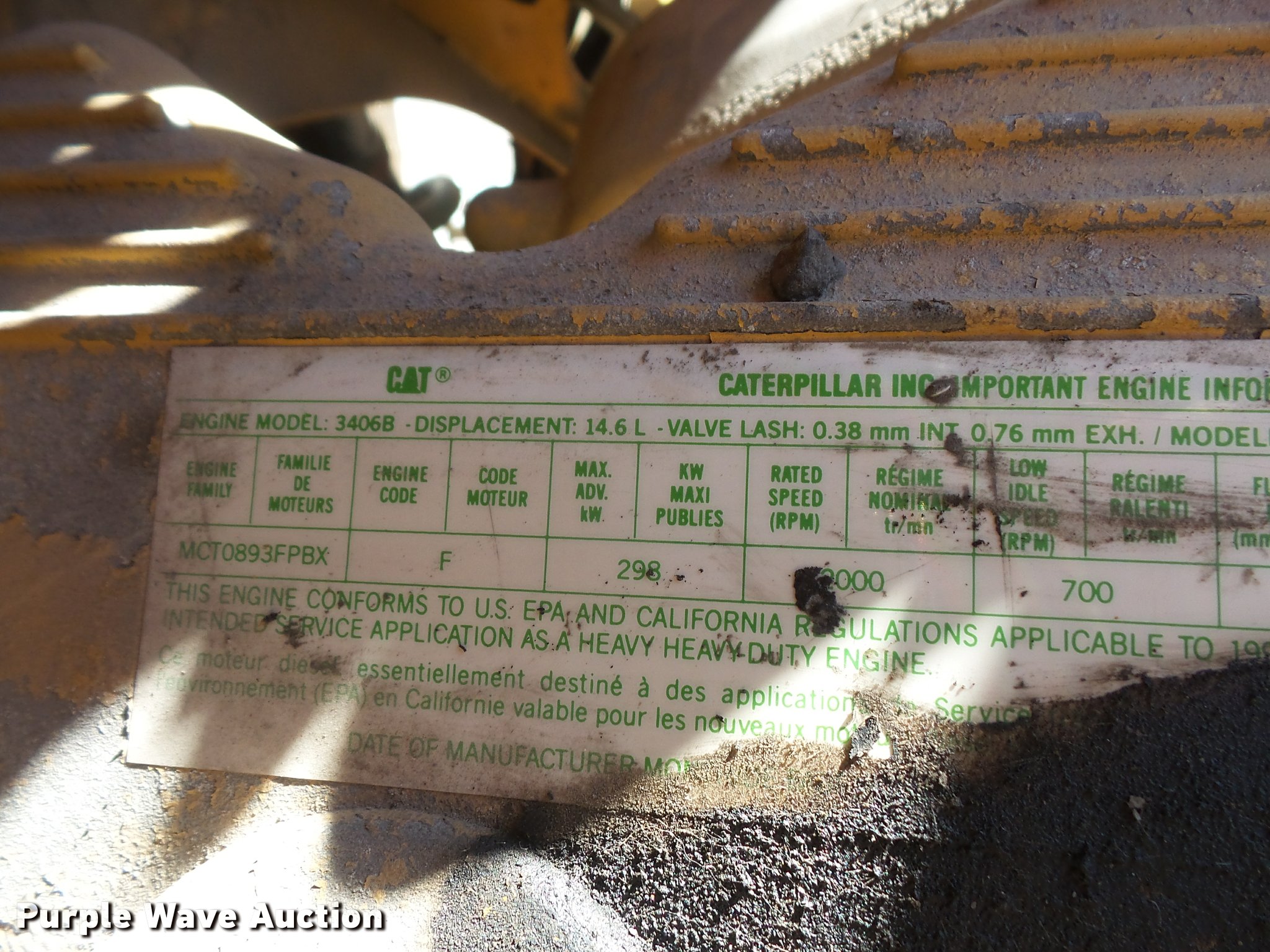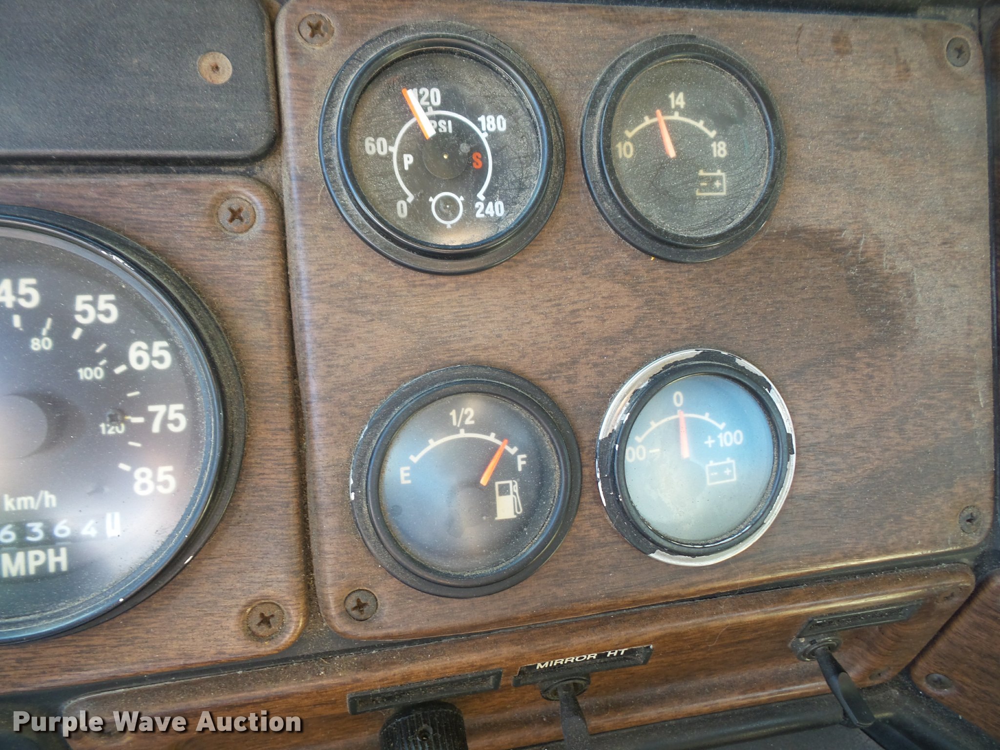 Purple Wave is selling a used Truck Tractor in Kansas. This item is a 1991 Freightliner semi truck with the following: 116,364 miles on odometer, Caterpillar 3406B 14.6L L6 turbo diesel engine, Eaton Fuller 13 speed manual transmission, Tandem axle, Inter-axle differential lock, AC and heat, AM/FM, Air suspension seat, PTO, Wet kit, Single rear exhaust stack, Aluminum deck plate, Sliding fifth wheel plate, Aluminum headache rack, Chain hanger, Storage, Single fuel tank, Aluminum half fenders, Spring over walking beam suspension, Air brakes, GVWR 52,220 lbs, FAWR 13,220 lbs, IAWR 20,000 lbs, RAWR 20,000 lbs