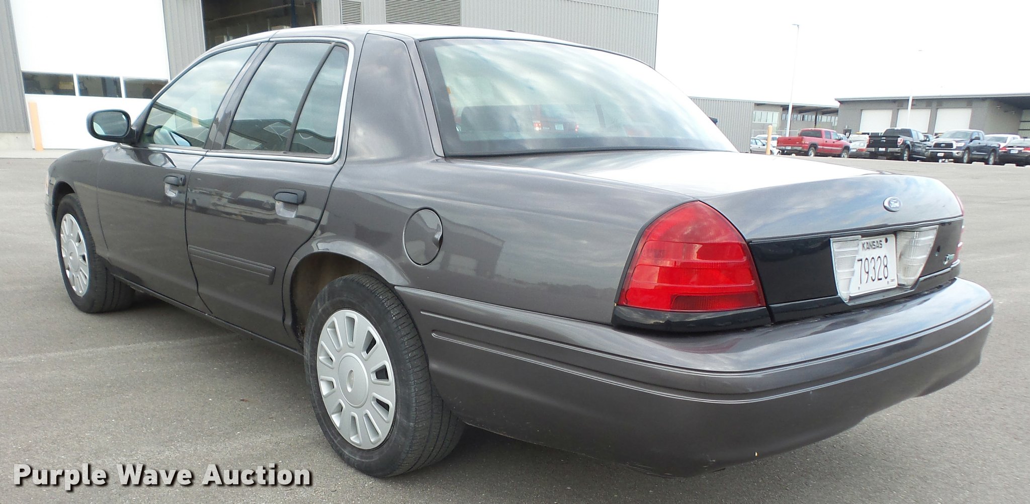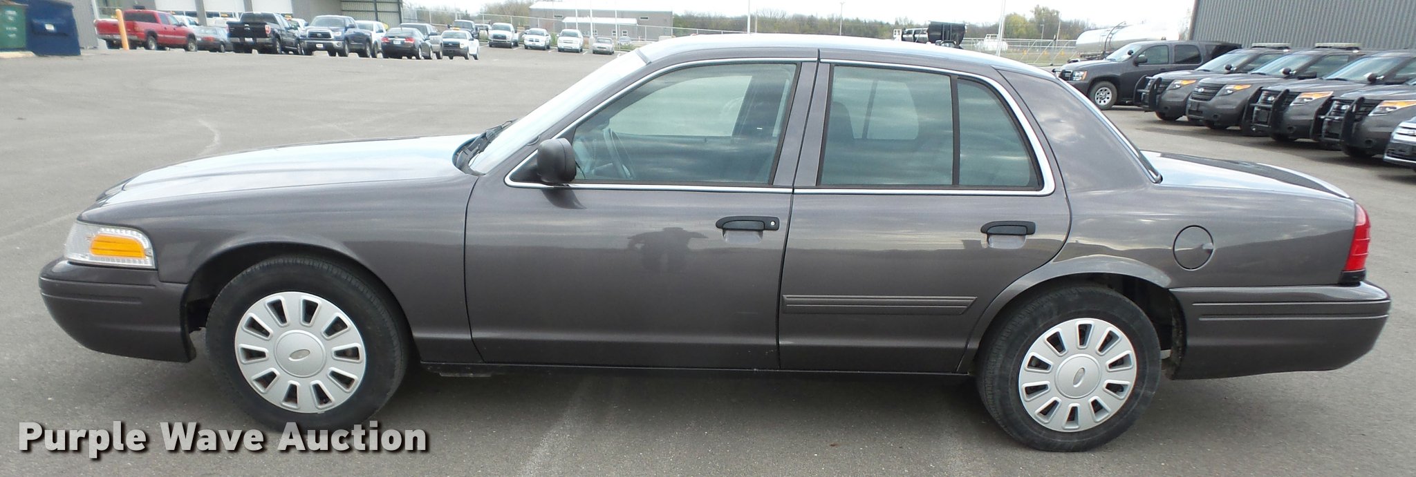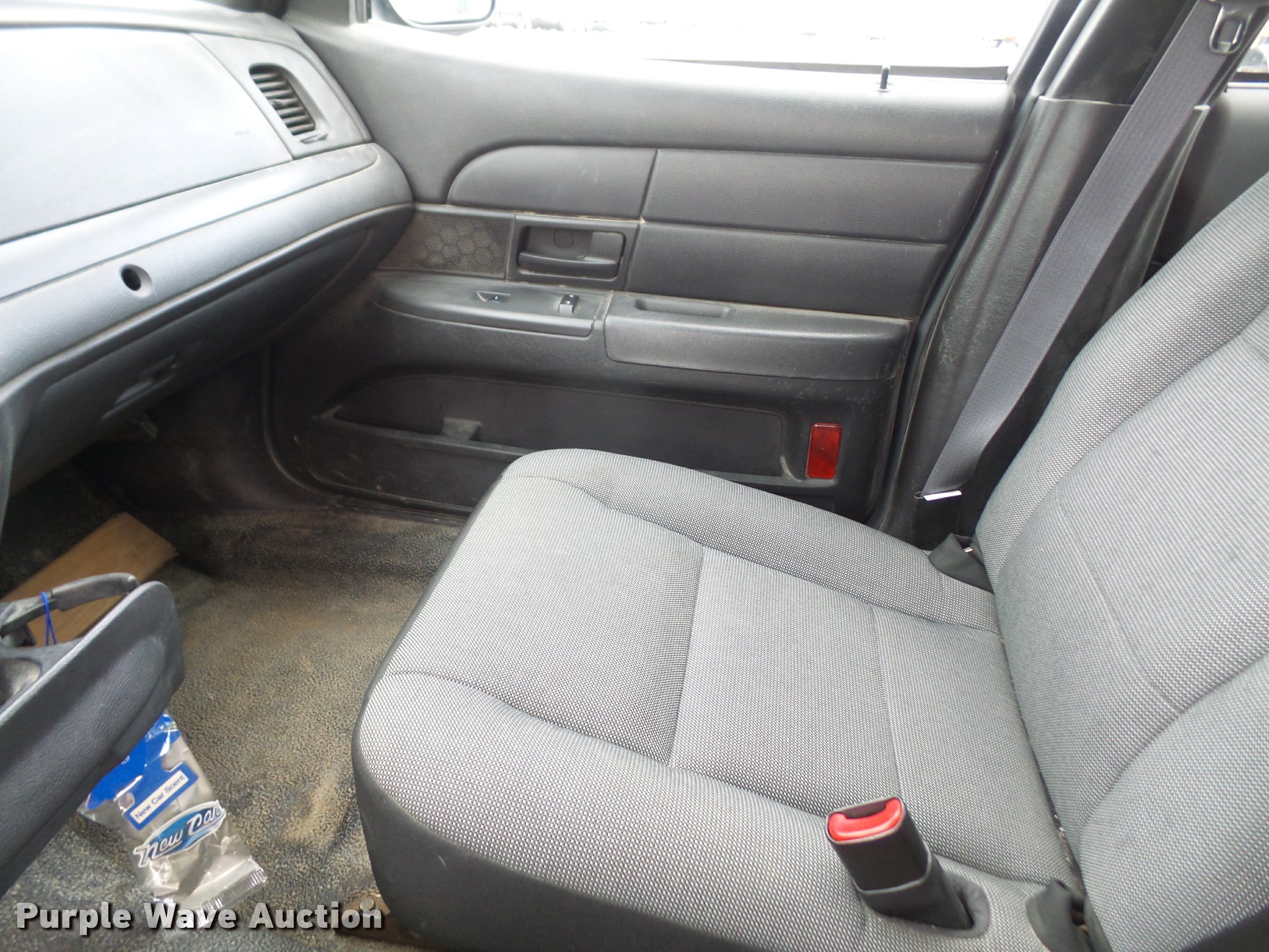 Purple Wave is selling a used Passenger Vehicle in Kansas. This item is a 2009 Ford Crown Victoria Police Interceptor with the following: 82,895 miles on odometer, 4.6L V8 SOHC 16V FFV gas engine, Automatic transmission, AC and heat, Tilt, Cruise, Power windows, locks, mirrors, and seat, Cloth front interior, Vinyl rear interior, Adjustable foot pedals, 235/55R17 tires