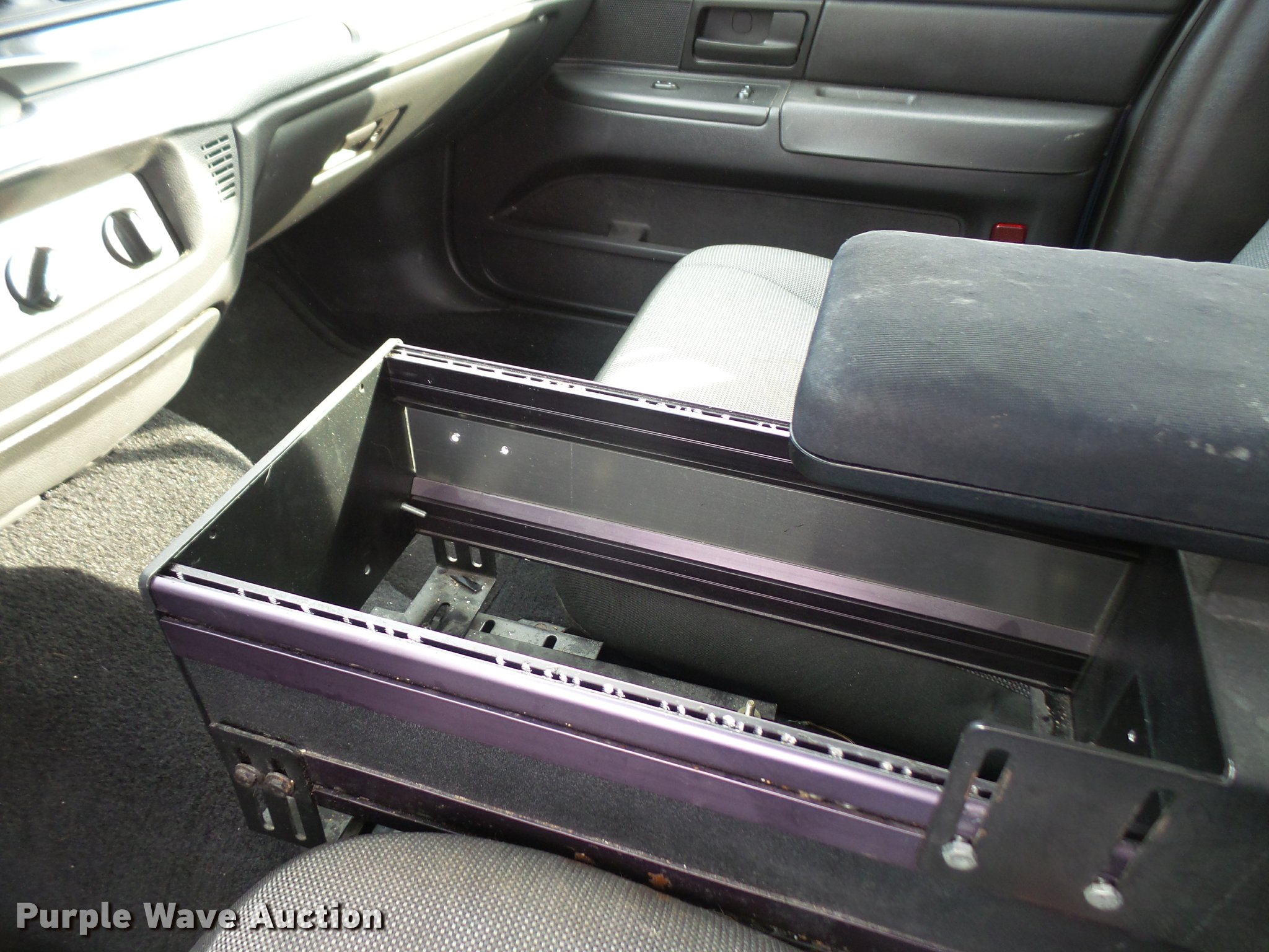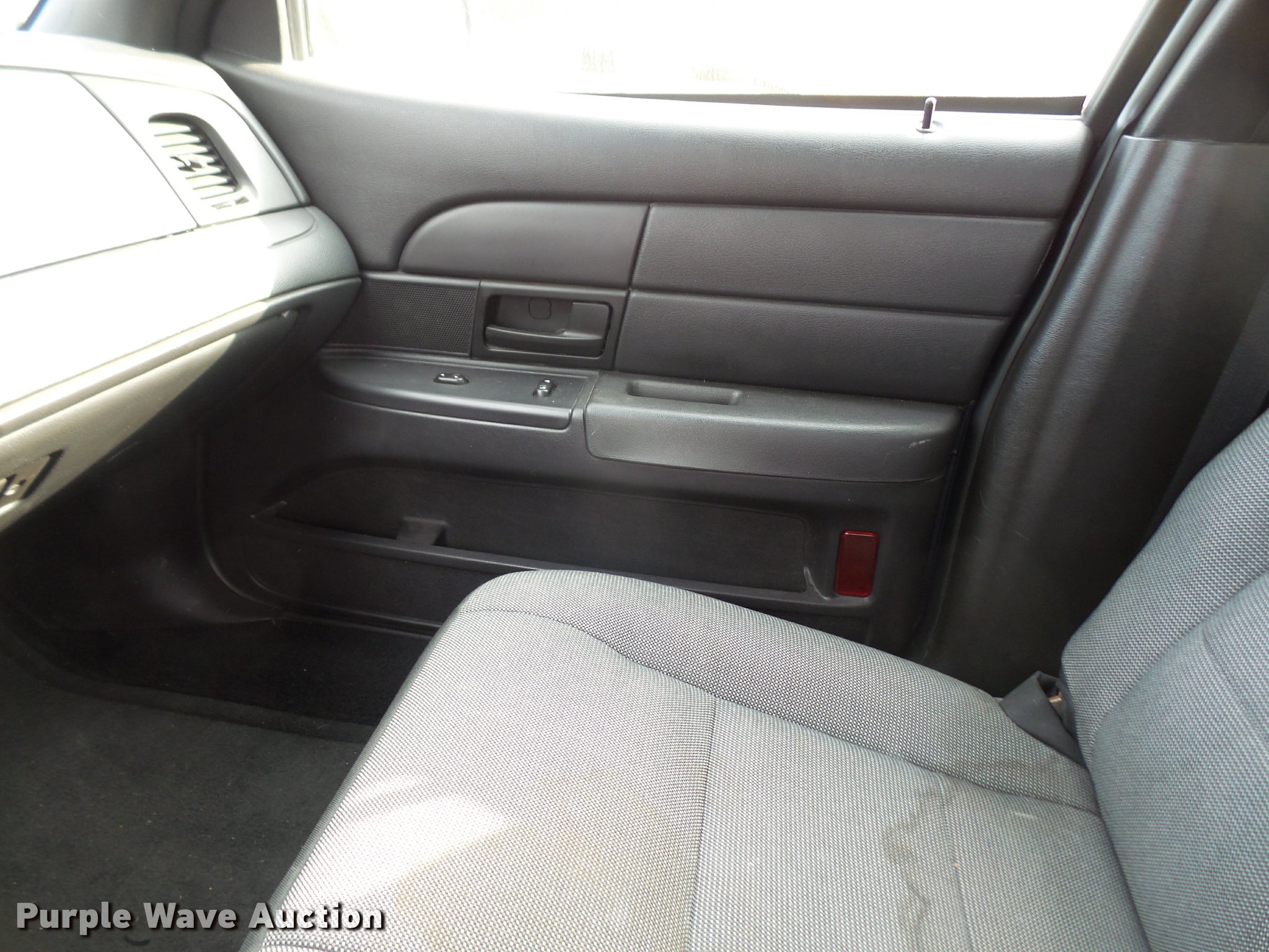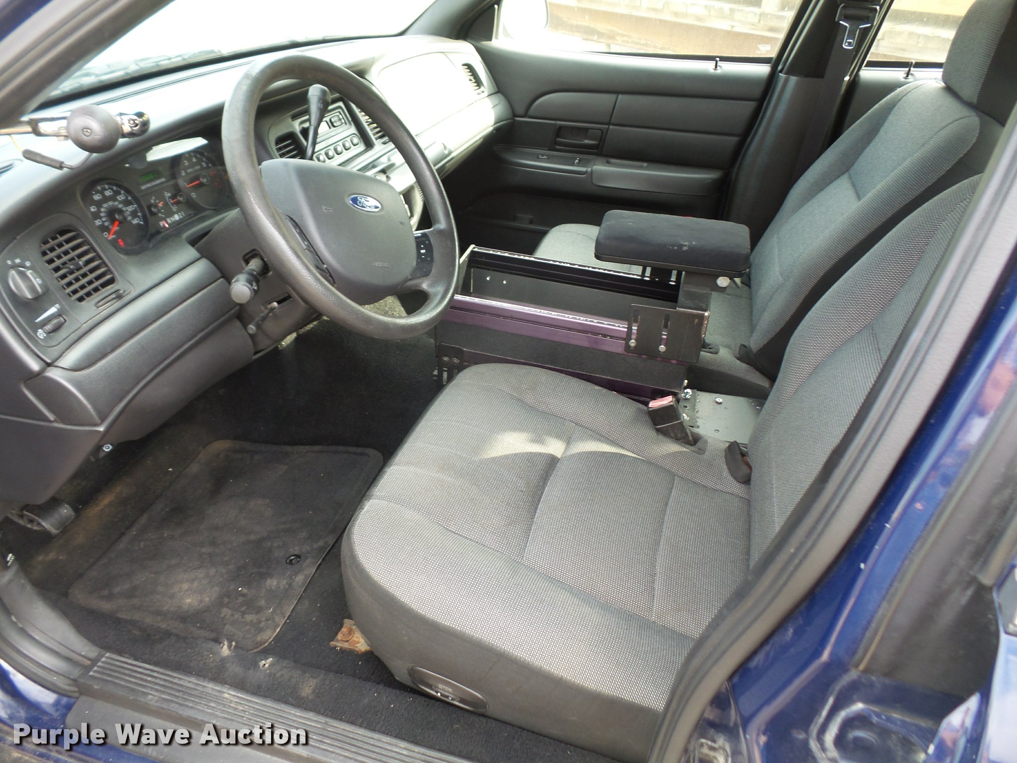 Purple Wave is selling a used Passenger Vehicle in Kansas. This item is a 2007 Ford Crown Victoria Police Interceptor with the following: 112,836 miles on odometer, 4.6L V8 SOHC 16V gas engine, Automatic transmission, AC and heat, Tilt, Cruise, AM/FM, Power windows, locks, mirrors, and seat, Cloth front interior, Vinyl rear interior, Spotlight, 235/55R17 tires, Check engine light on
