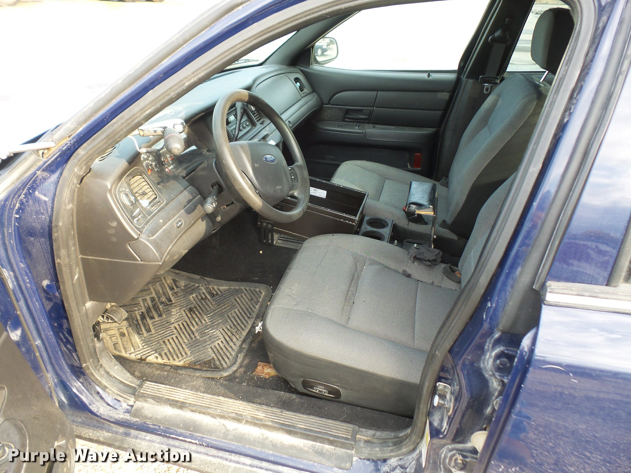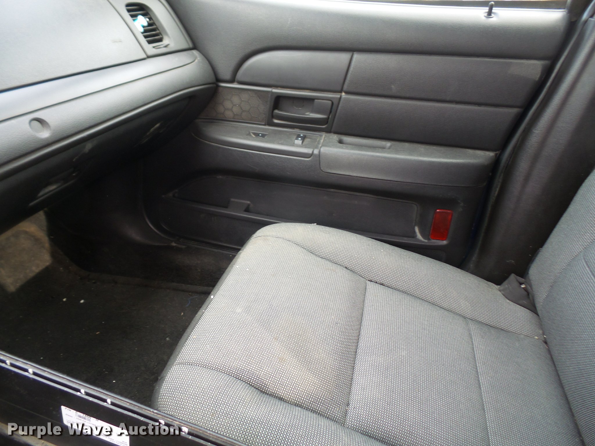 Purple Wave is selling a used Passenger Vehicle in Kansas. This item is a 2010 Ford Crown Victoria Police Interceptor with the following: 111,290 miles on odometer, 4.6L V8 SOHC 16V FFV gas engine, Automatic transmission, AC and heat, Tilt, Cruise, AM/FM, Power windows, locks, mirrors, and seat, Cloth front interior, Vinyl rear interior, Spotlight, Grill guard, 235/55R17 tires, No rear view mirror