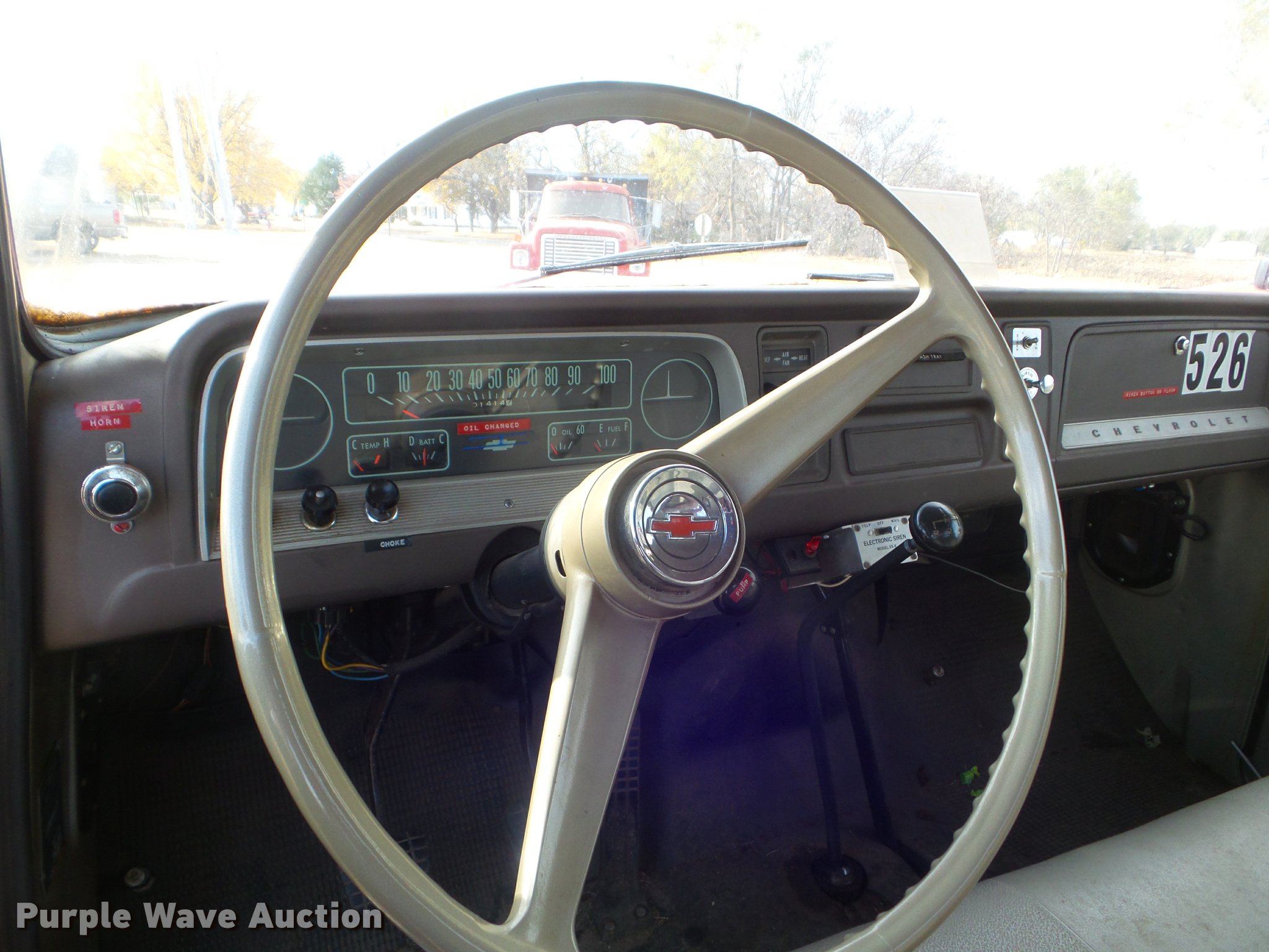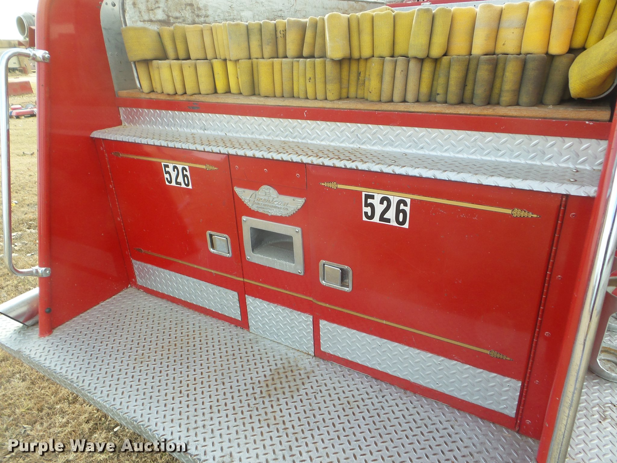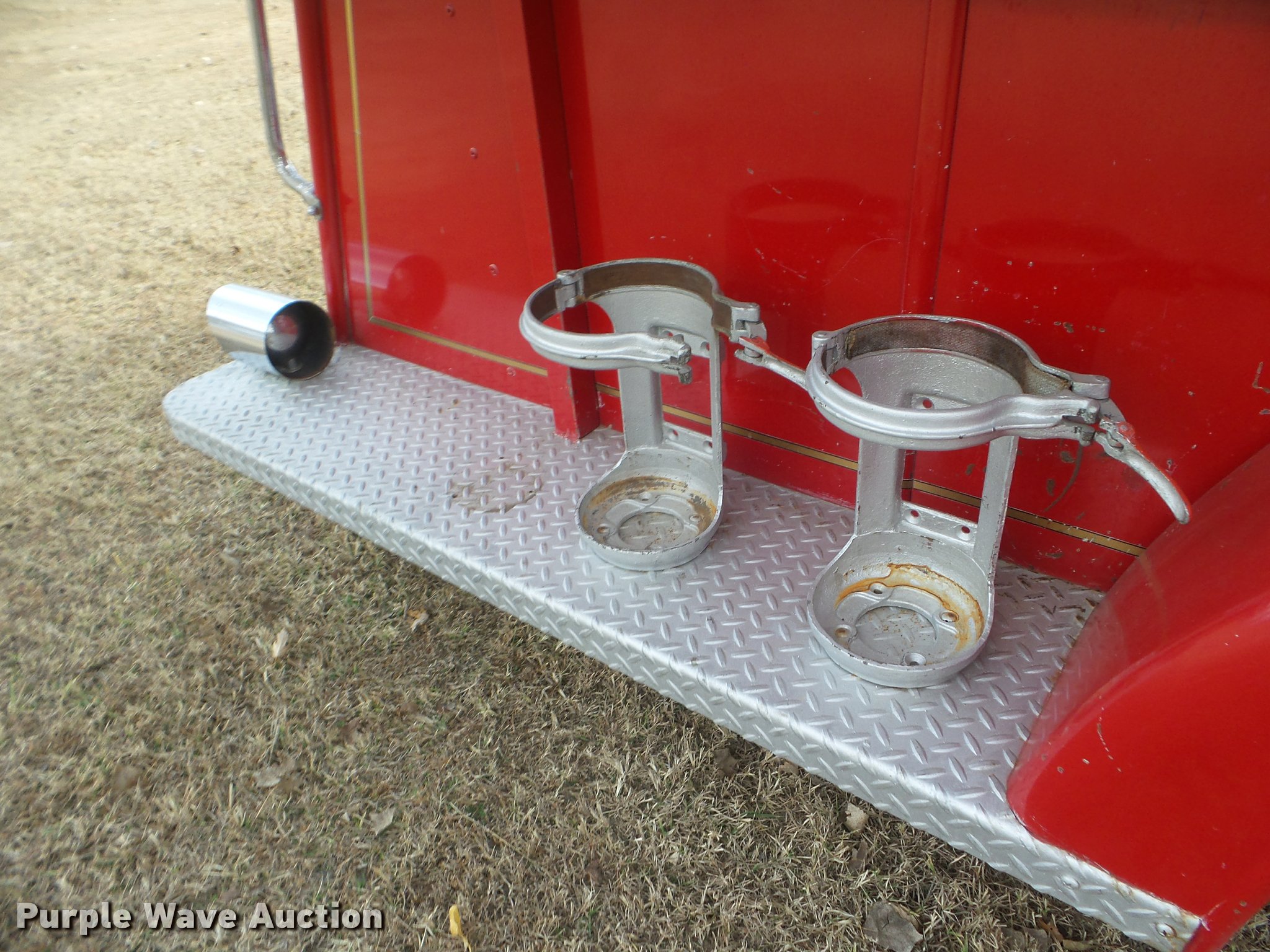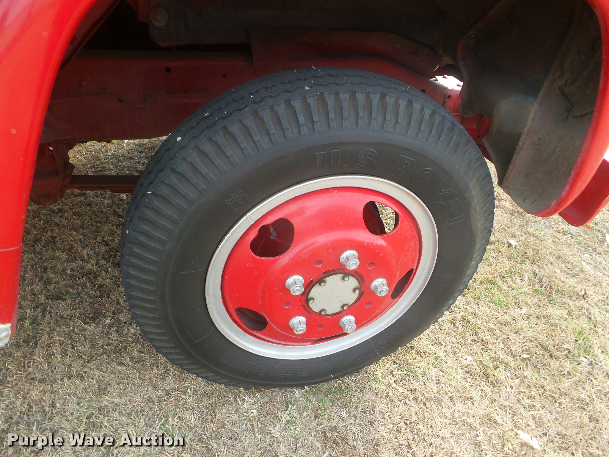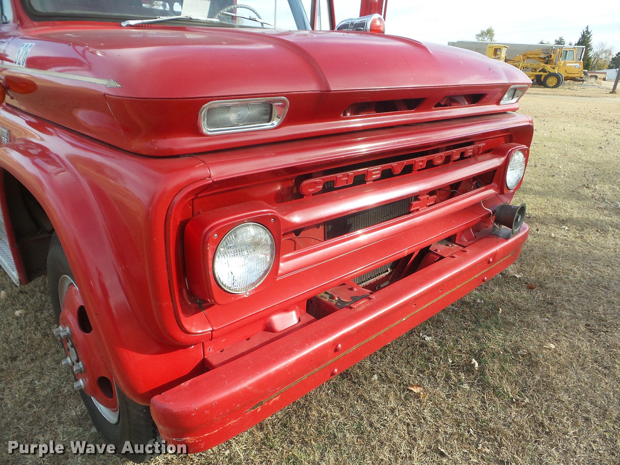 Purple Wave is selling a used Fire Truck or Emergency Vehicle in Kansas. This item is a 1966 Chevrolet C60 fire truck with the following: 1,414 miles on odometer, Chevrolet 292 C.I.D. six cylinder gas engine, Four speed manual transmission, Single axle, Heat, Suspension seat, PTO, American fire apparatus, Work lights, Hose, Ladder, 7.50-20 front tires, 8.25-20 rear tires