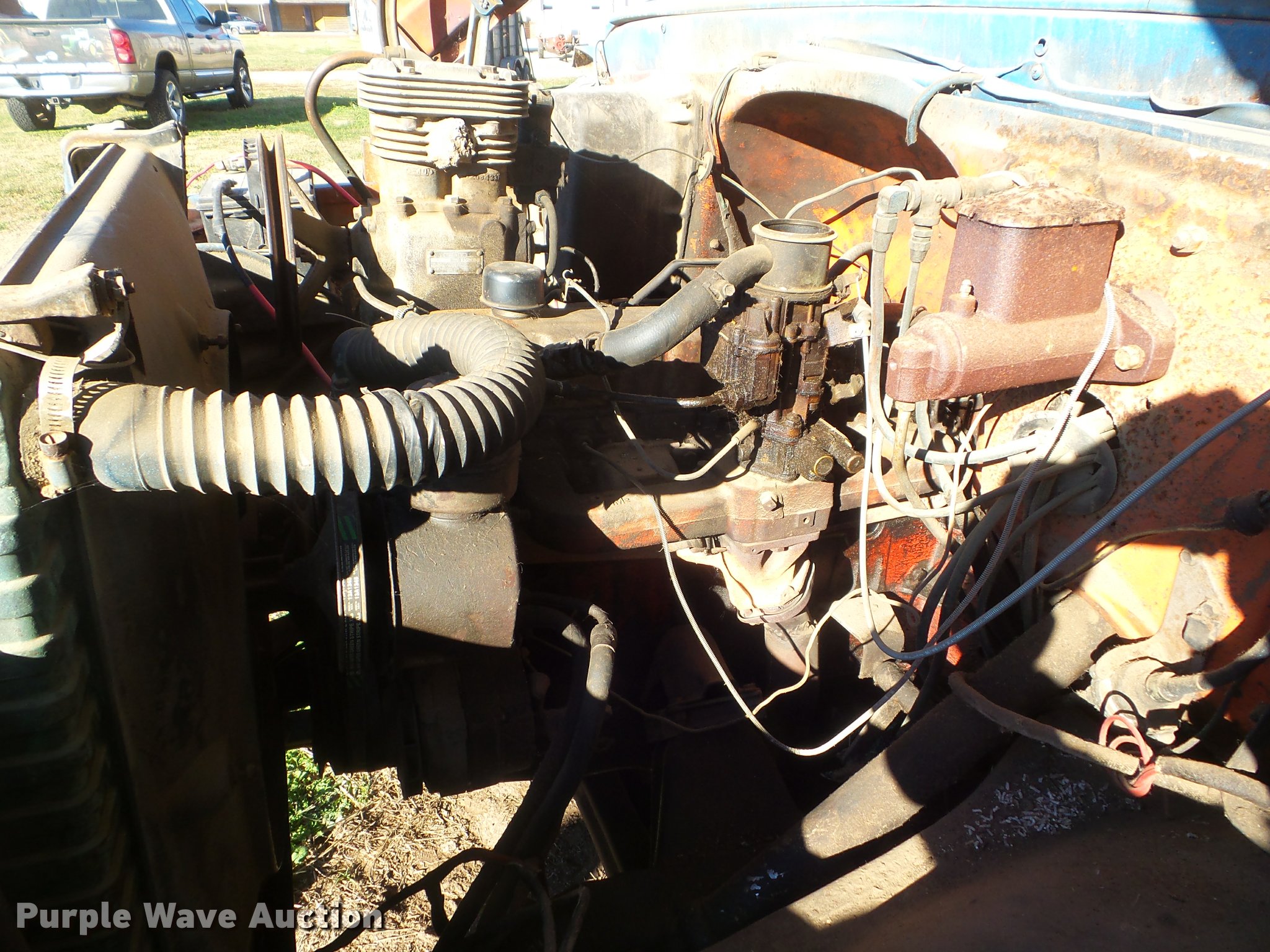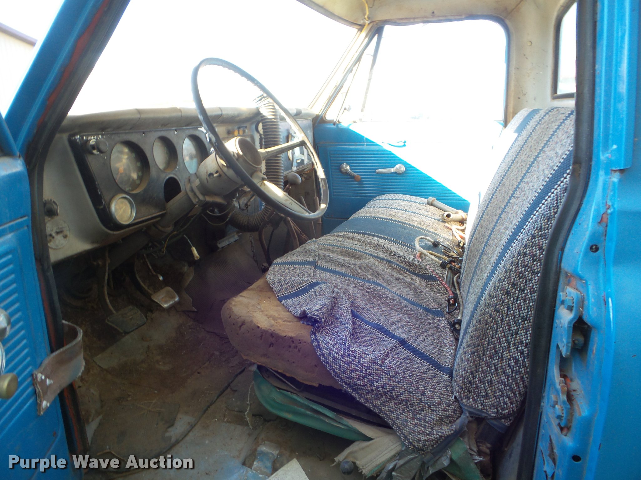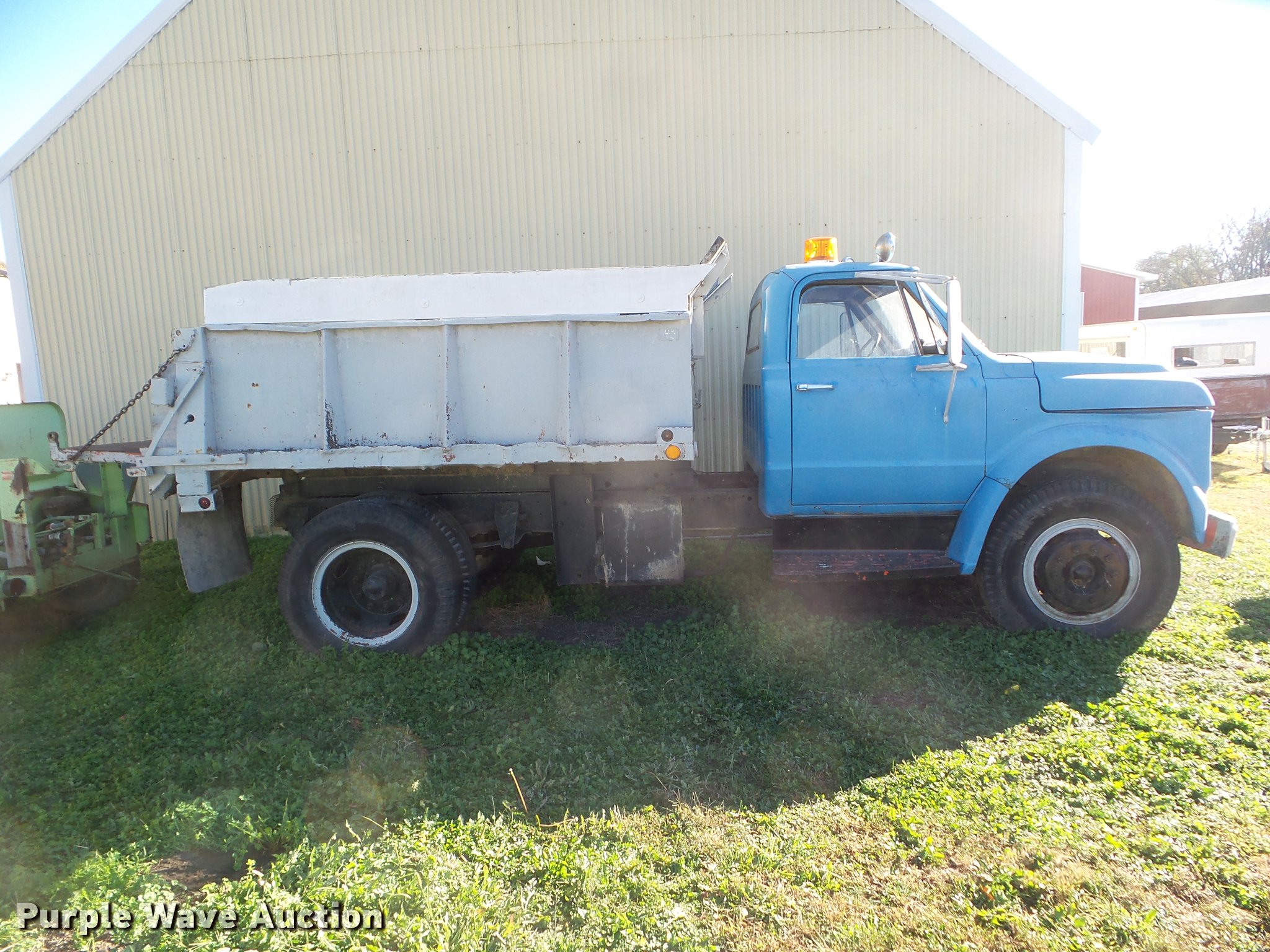 Purple Wave is selling a used Construction Dump Truck in Kansas. This item is a 1967 Chevrolet dump truck with the following: 70,929 miles on odometer, Actual mileage unkown, Six cylinder gas engine, Five speed manual transmission, Two speed rear end, Single axle, AM/FM, Suspension seat, PTO, 9'L x 8'W steel dump bed, 27" side height, 10" side board height, Manual end gate, Single ram hoist, Single fuel tank, Pin hitch, Spring suspension, Hydraulic brakes, 9.00-20 tires, GVWR 24,000 lbs, Non-operational unit