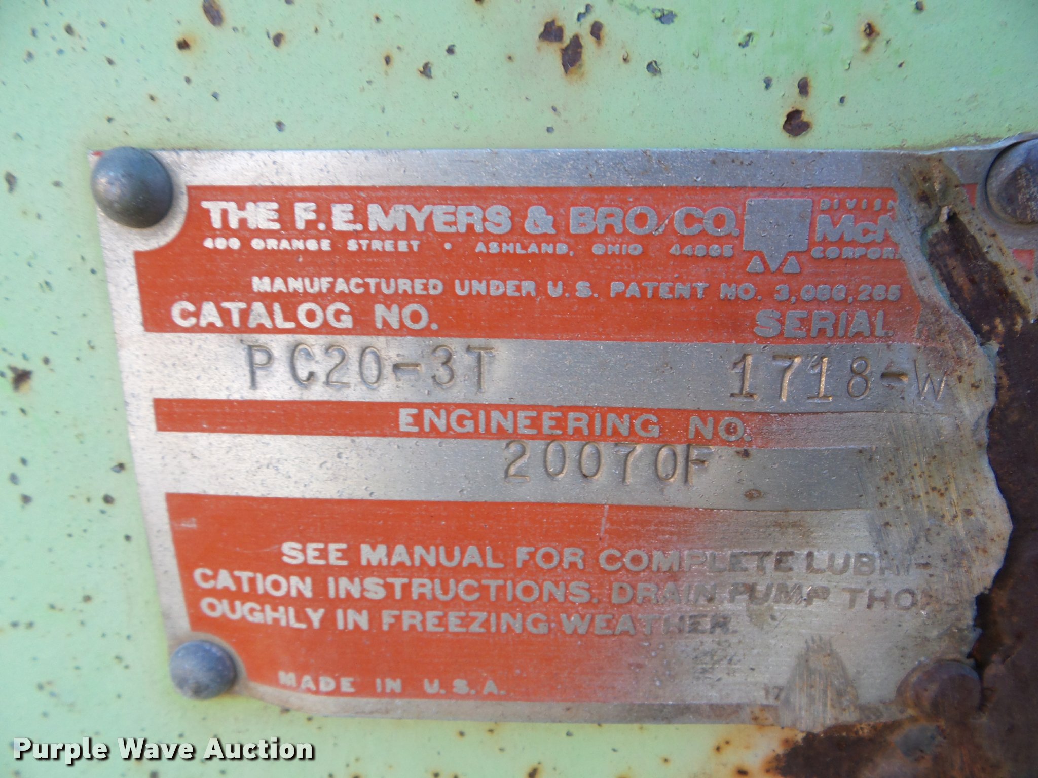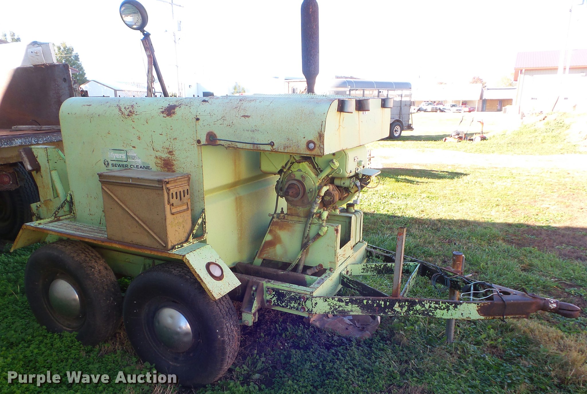Purple Wave is selling a used Tools in Kansas. This item is a Myers sewer jetter with the following: Wisconsin four cylinder gas engine, Myers CX-15AV pump, Non-operational, 250 gallon tank, 16" fill, 2" ball hitch, 235/75R15 tires, Serial 1718-W