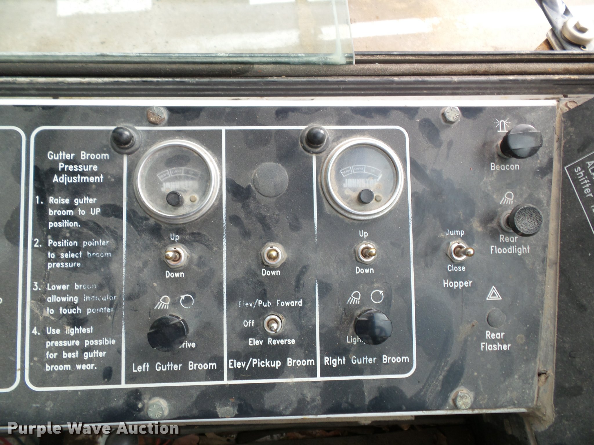 Purple Wave is selling a used Sweeper in Kansas. This item is a 1996 Johnston V3000SP street sweeper with the following: 24,624 miles on odometer, 7,821 hours on meter, John Deere three cylinder turbo diesel engine, High-Low transmission, Mico lock system, AC and heat, Non-operational AC, AM/FM/cassette, Cloth interior, Auto greaser, 56"L center broom, 34" diameter side brooms, Spray bar system, 11R22.5 rear tires, Operators, maintenance, and service manuals, Additional parts included