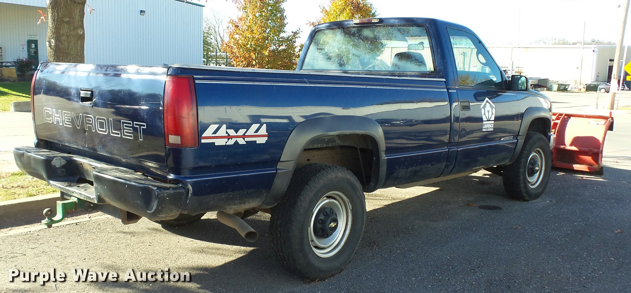Purple Wave is selling a used 3/4 or 1 Ton Pickup or Van in Kansas. This item is a 2000 Chevrolet 2500 pickup truck with the following: 136,679 miles on odometer, 7.4L V8 OHV 16V gas engine, Automatic transmission, Four wheel drive, AC and heat, Tilt, AM/FM/cassette, Manual windows and locks, Vinyl interior, Western Ultra Finish snow plow, 89"W, Lights, Receiver hitch, Trailer wiring, 245/75R16 tires, Decals will be removed prior to auction