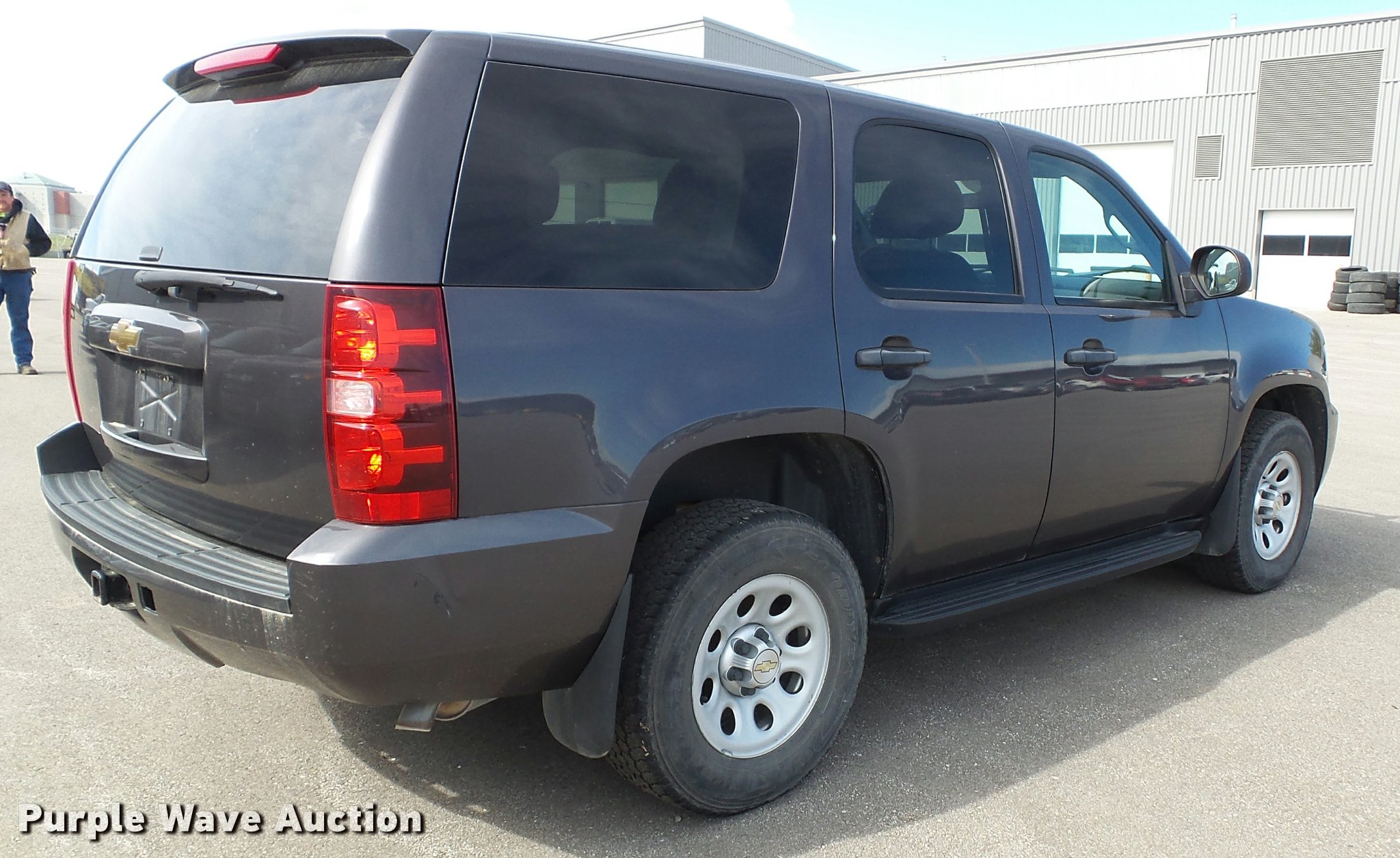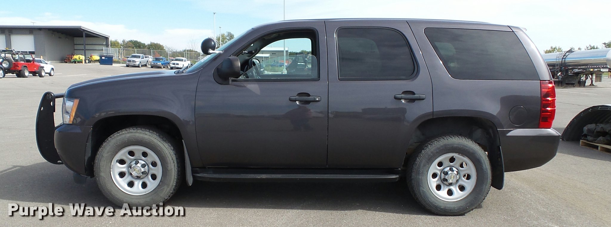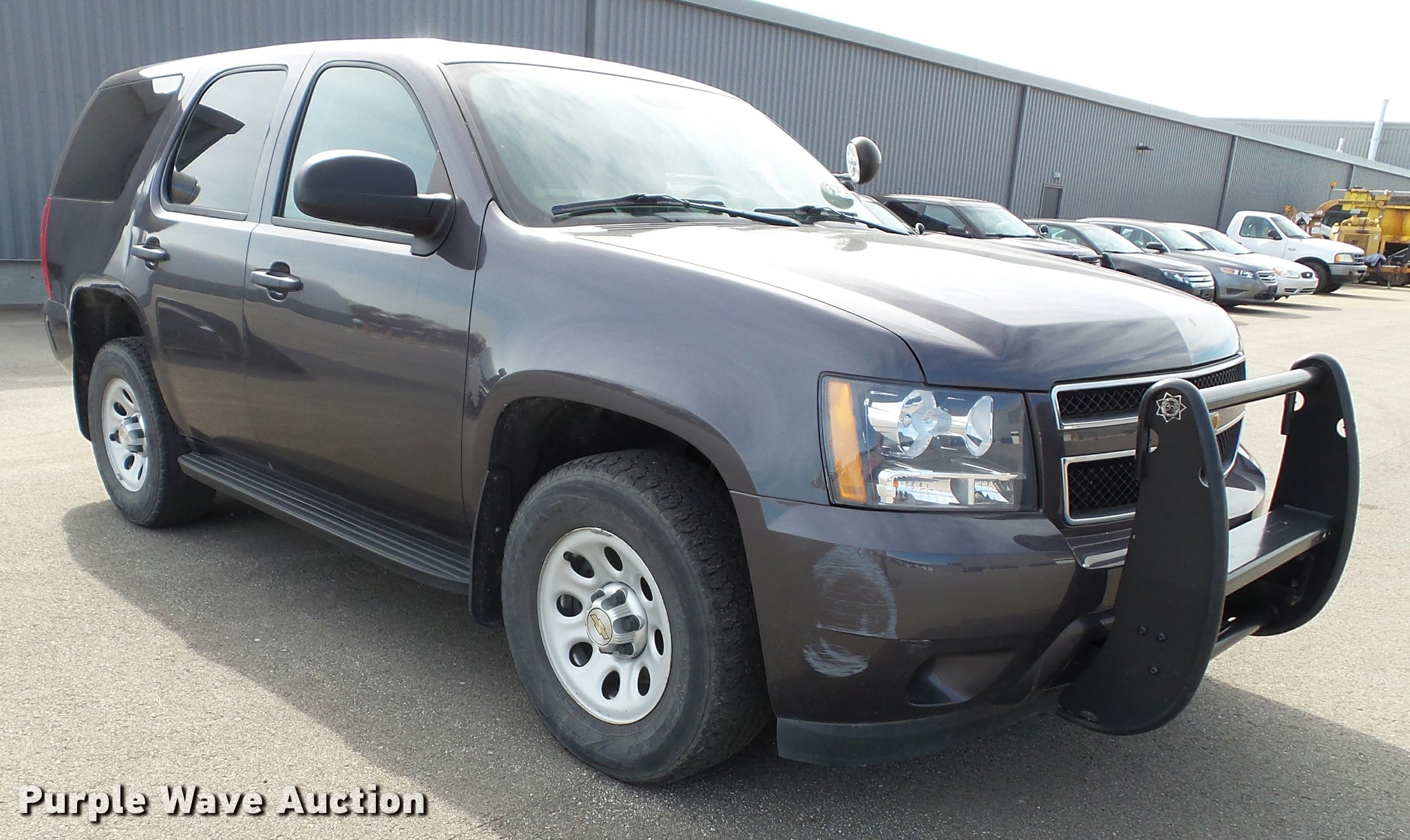 Purple Wave is selling a used Passenger Vehicle in Kansas. This item is a 2011 Chevrolet Tahoe Police SUV with the following: 125,609 miles on odometer, 5.3L V8 OHV 16V FFV gas engine, Automatic transmission, AC and heat, Tilt, Cruise, AM/FM/CD, Power windows, locks, mirrors, and seats, Cloth front interior, Vinyl rear interior, Fog lights, Running boards, Push bar, Receiver hitch, Trailer wiring, 265/70R17 tires, Check engine light on, Spotlight will be removed if unit is not purchased by a government agency, Service records available upon request, Unit# MA1