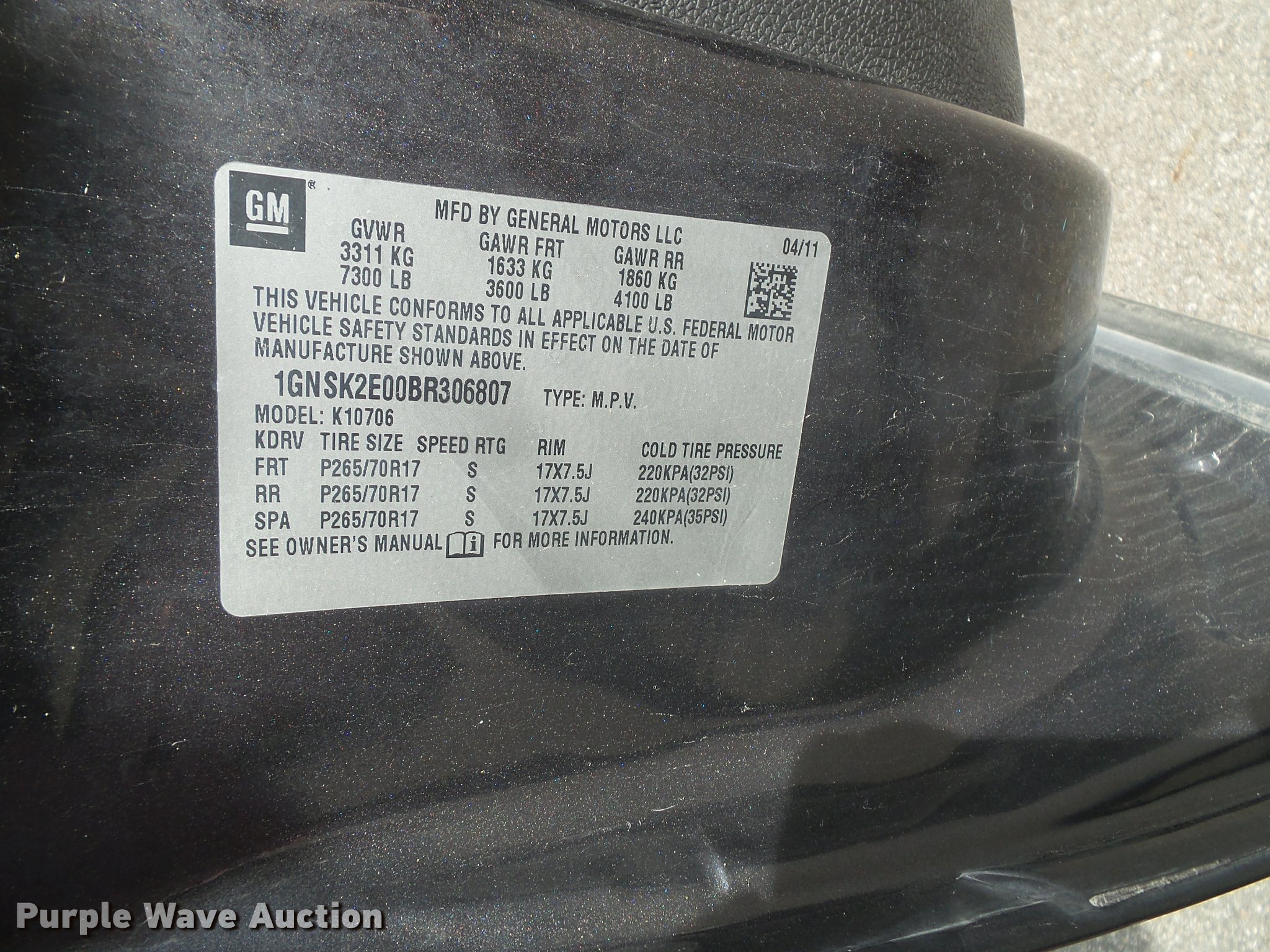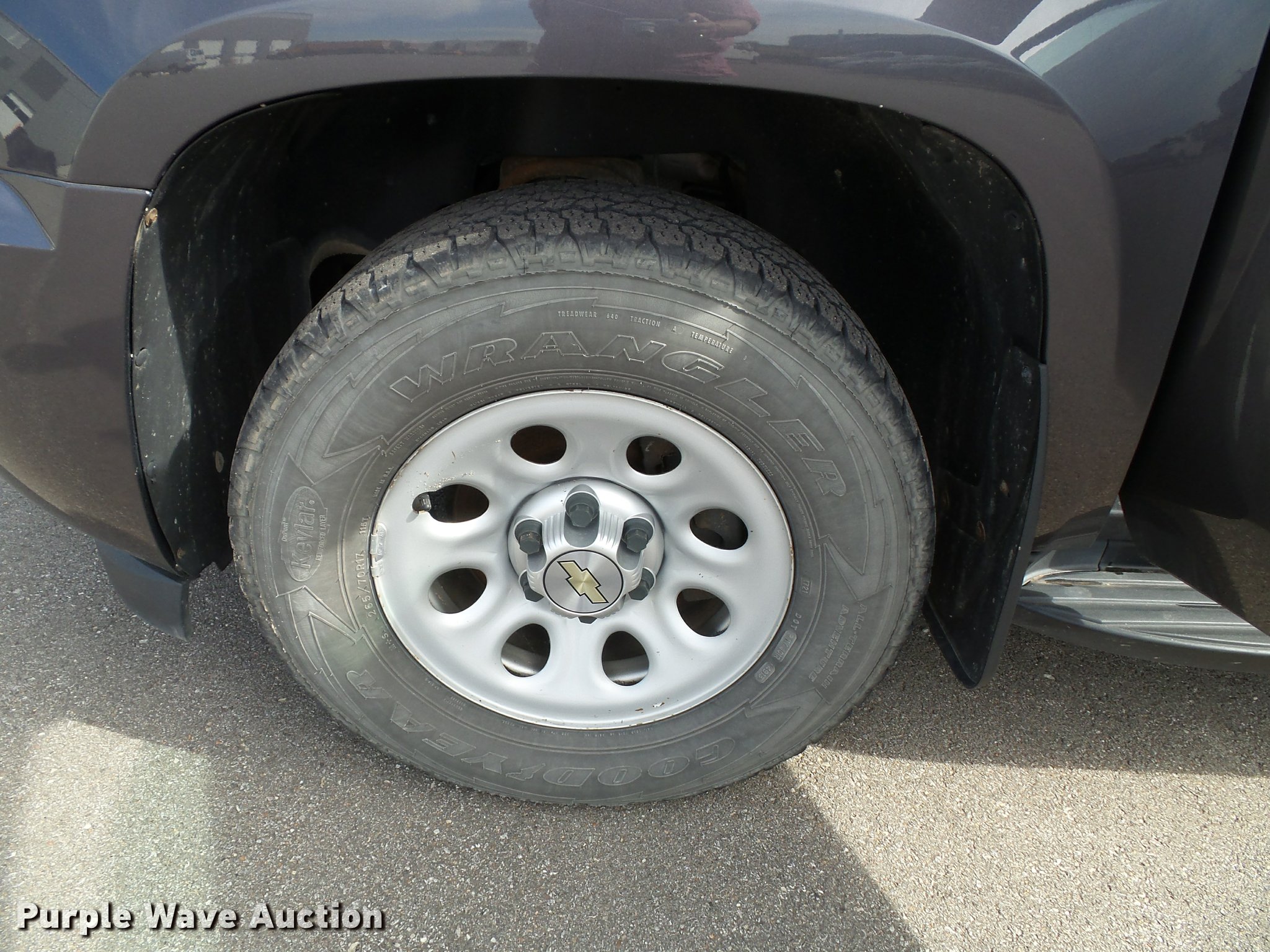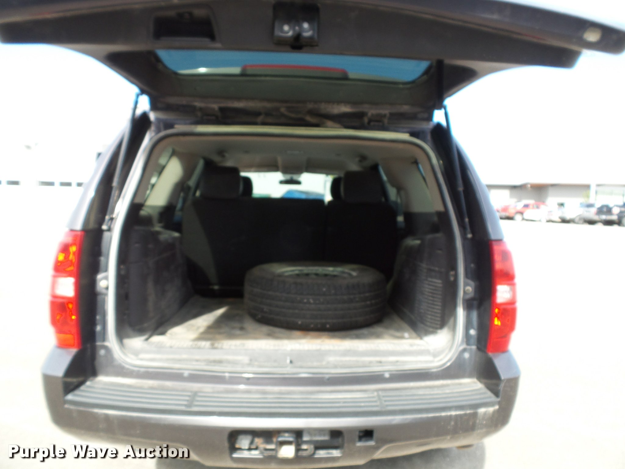 Purple Wave is selling a used Passenger Vehicle in Kansas. This item is a 2011 Chevrolet Tahoe Police SUV with the following: 125,609 miles on odometer, 5.3L V8 OHV 16V FFV gas engine, Automatic transmission, AC and heat, Tilt, Cruise, AM/FM/CD, Power windows, locks, mirrors, and seats, Cloth front interior, Vinyl rear interior, Fog lights, Running boards, Push bar, Receiver hitch, Trailer wiring, 265/70R17 tires, Check engine light on, Spotlight will be removed if unit is not purchased by a government agency, Service records available upon request, Unit# MA1