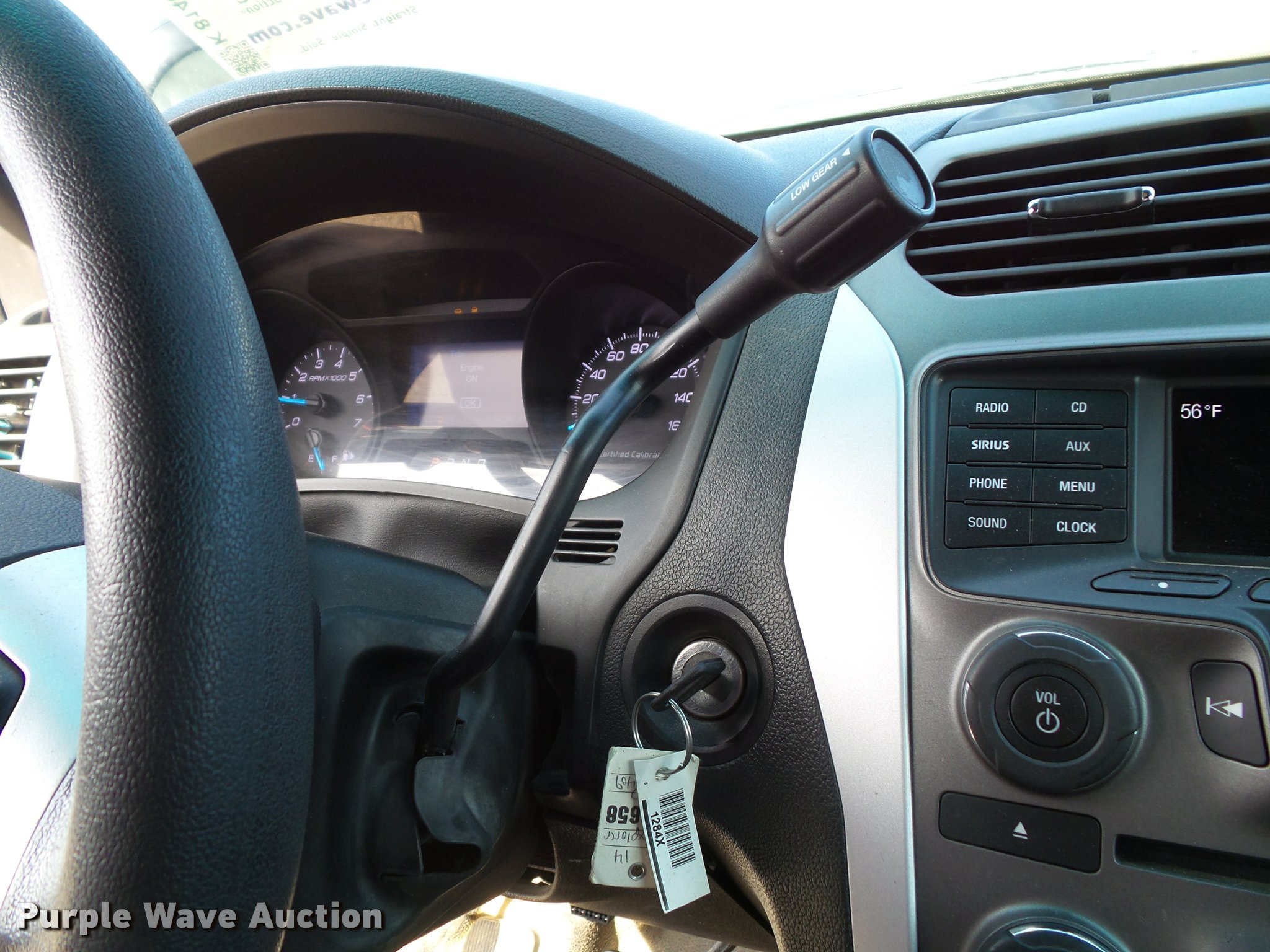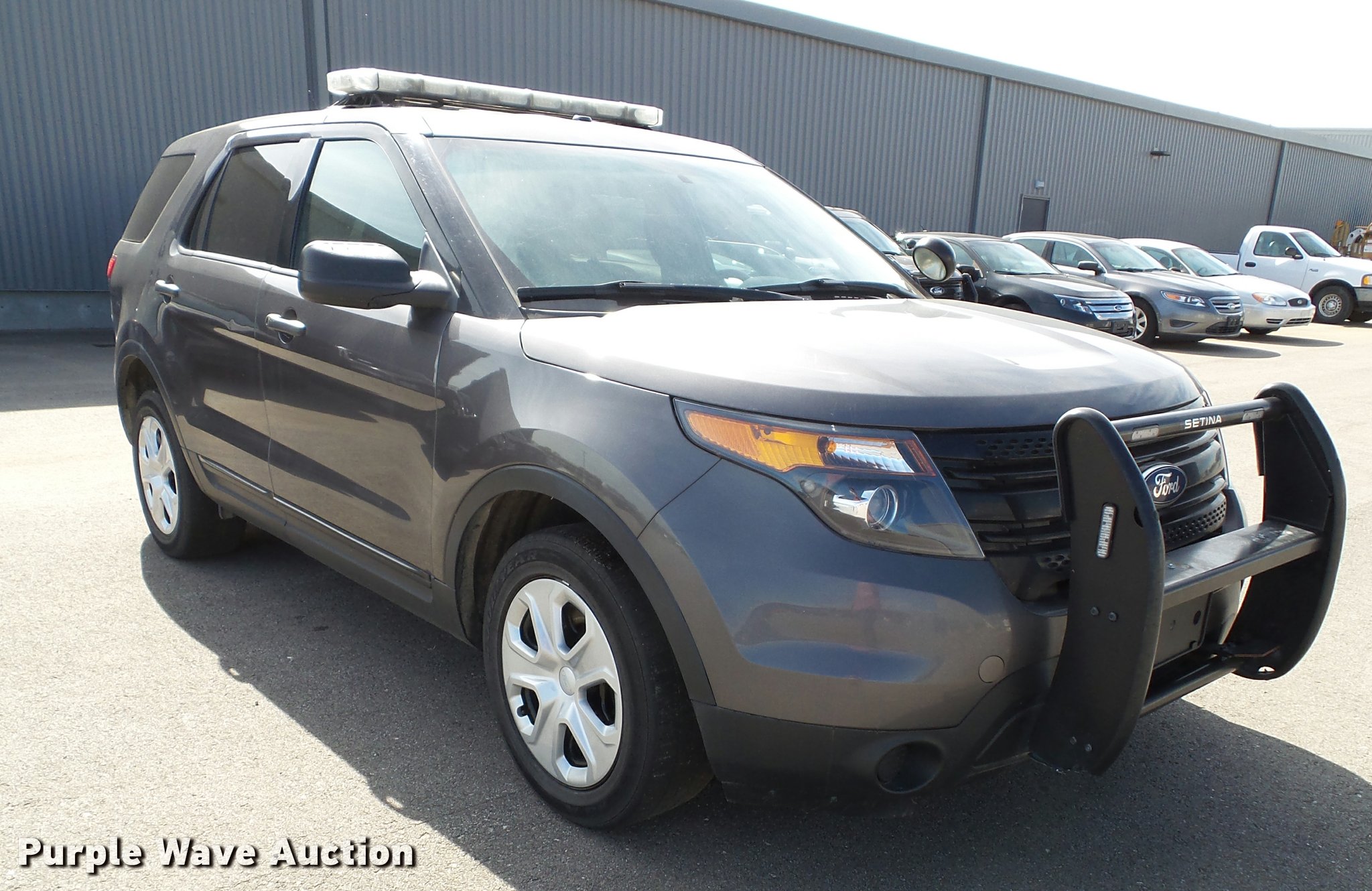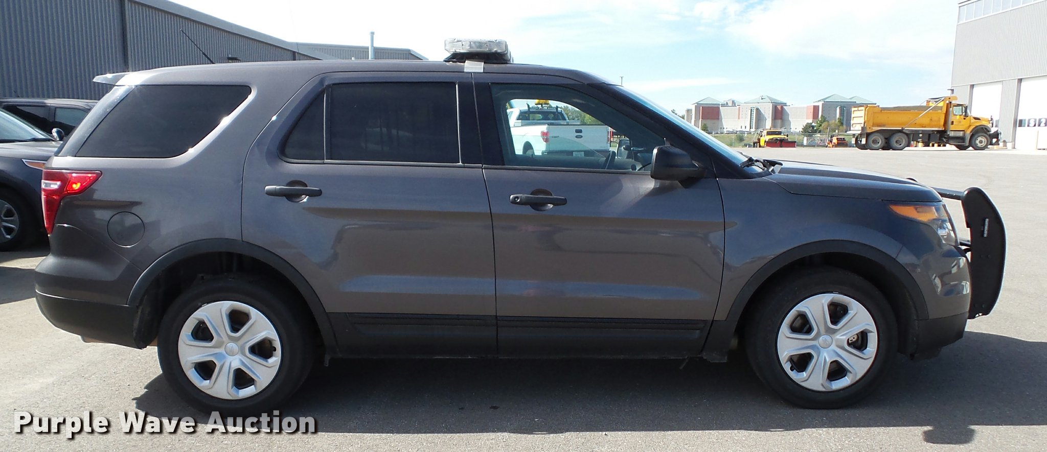 Purple Wave is selling a used Passenger Vehicle in Kansas. This item is a 2014 Ford Explorer Police Interceptor Utility SUV with the following: 92,392 miles on odometer, 3.7L V6 DOHC 24V gas engine, Automatic transmission, Four wheel drive, AC and heat, Tilt, Cruise, AM/FM/CD, Power windows, locks, mirrors, and seat, Cloth interior, Heated mirrors, Push bar, 245/55R18 tires, Light bar, spotlight, LED lights, cage barrier, window bars, and center console will be removed if not purchased by a government agency, Service records available upon request, Unit# S22