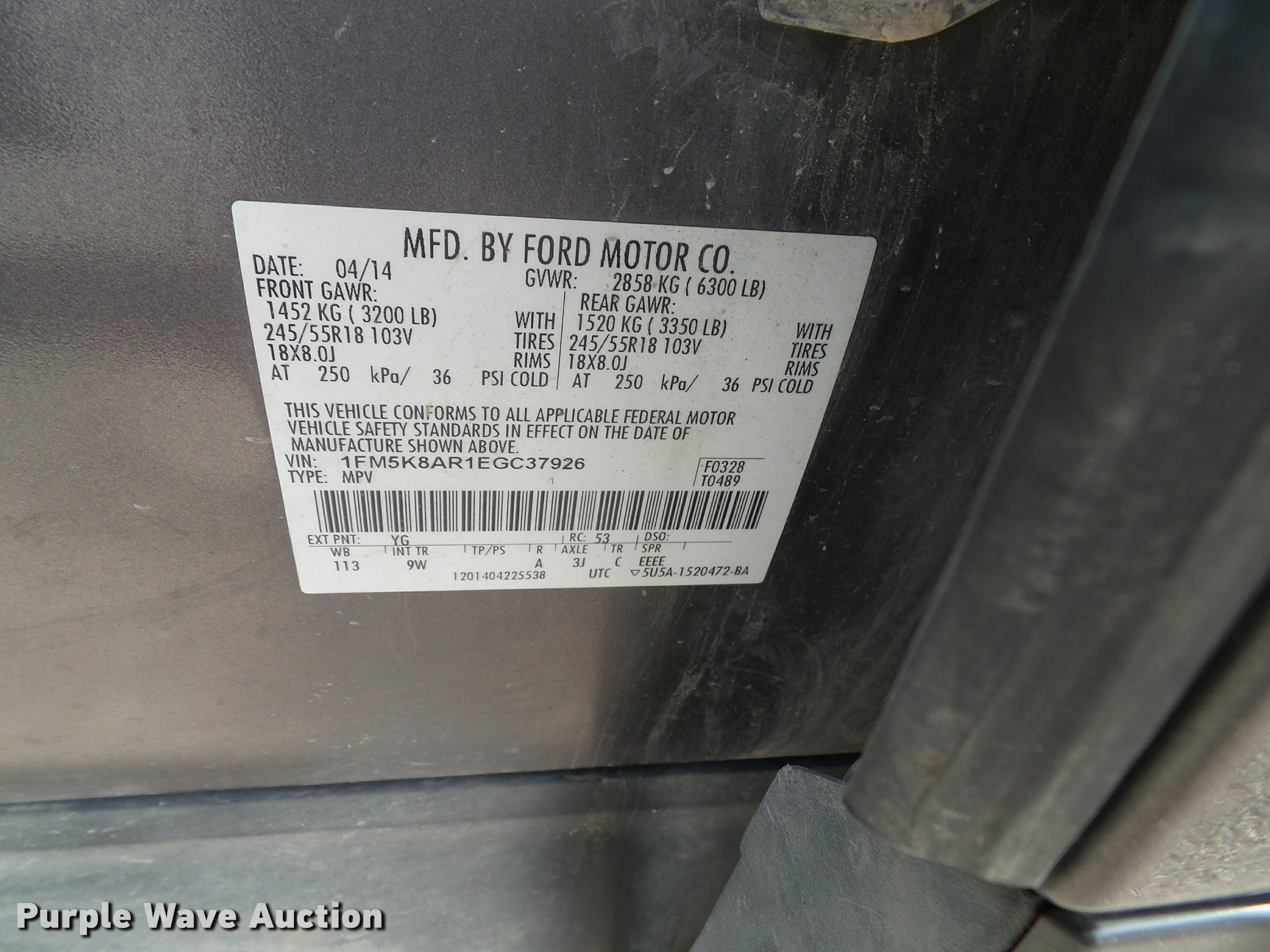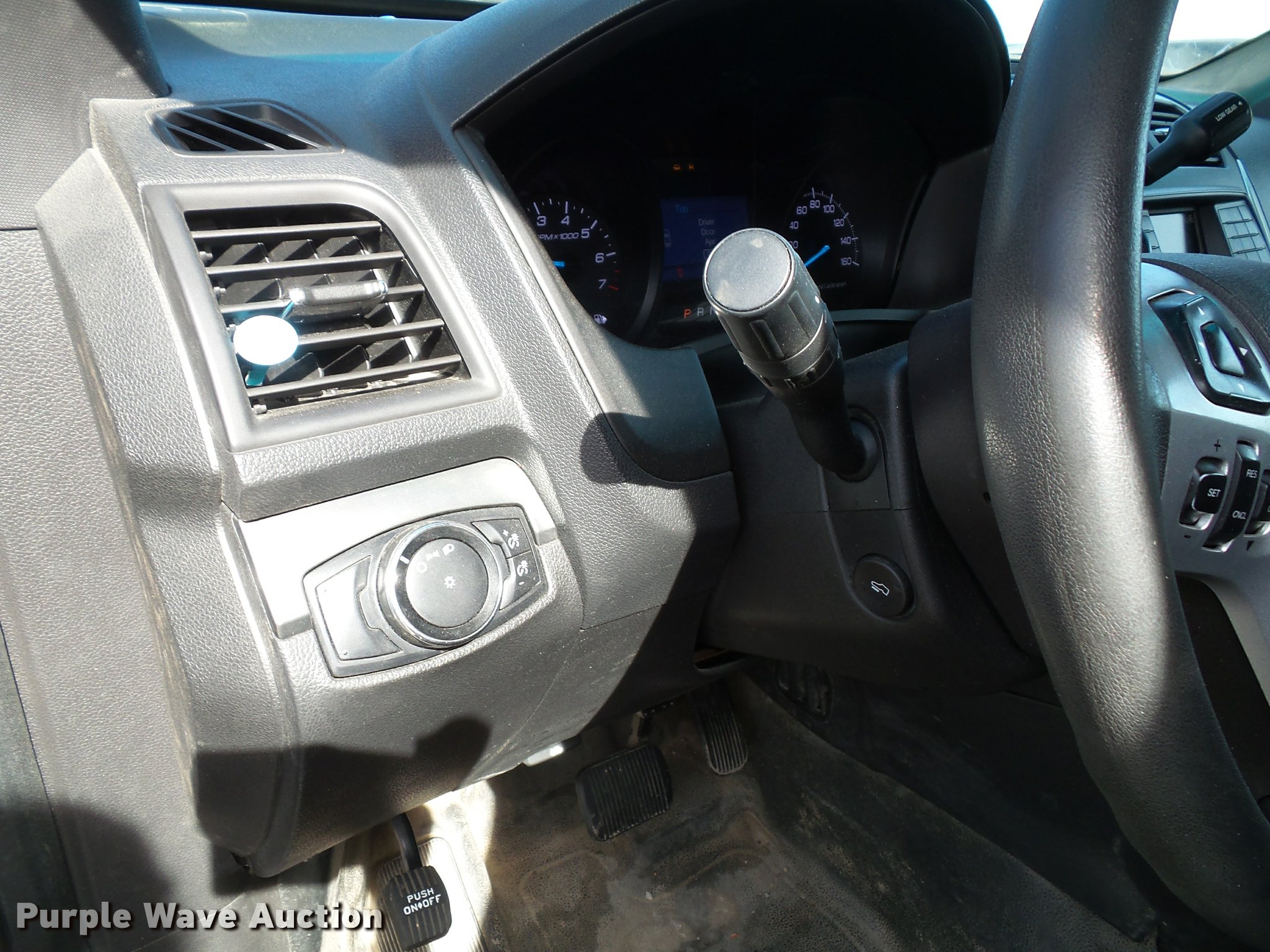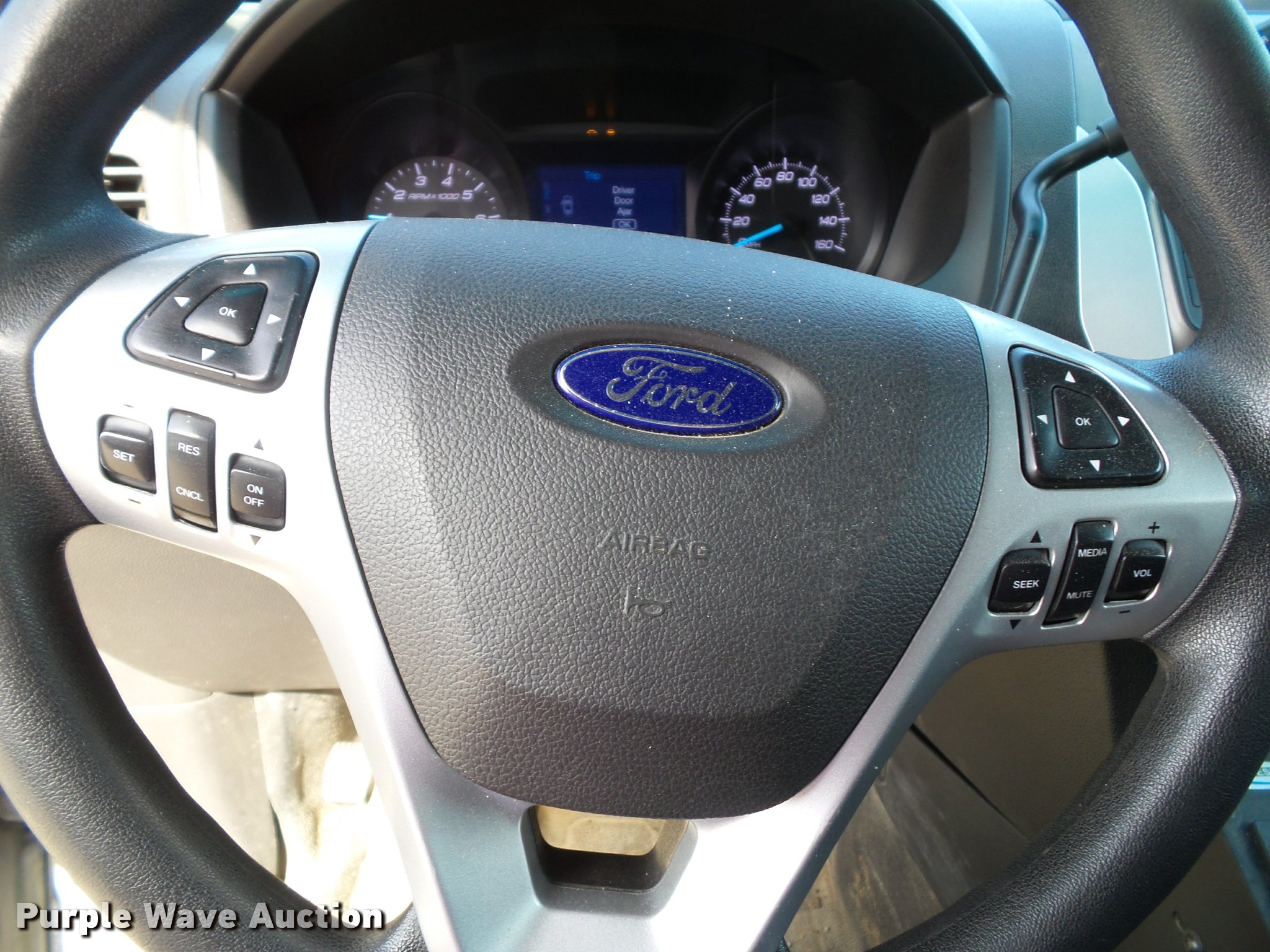 Purple Wave is selling a used Passenger Vehicle in Kansas. This item is a 2014 Ford Explorer Police Interceptor Utility SUV with the following: 92,392 miles on odometer, 3.7L V6 DOHC 24V gas engine, Automatic transmission, Four wheel drive, AC and heat, Tilt, Cruise, AM/FM/CD, Power windows, locks, mirrors, and seat, Cloth interior, Heated mirrors, Push bar, 245/55R18 tires, Light bar, spotlight, LED lights, cage barrier, window bars, and center console will be removed if not purchased by a government agency, Service records available upon request, Unit# S22