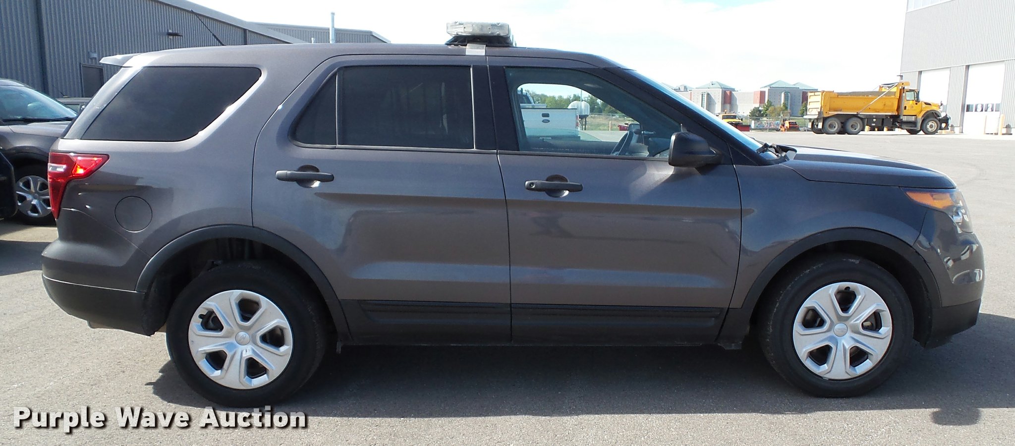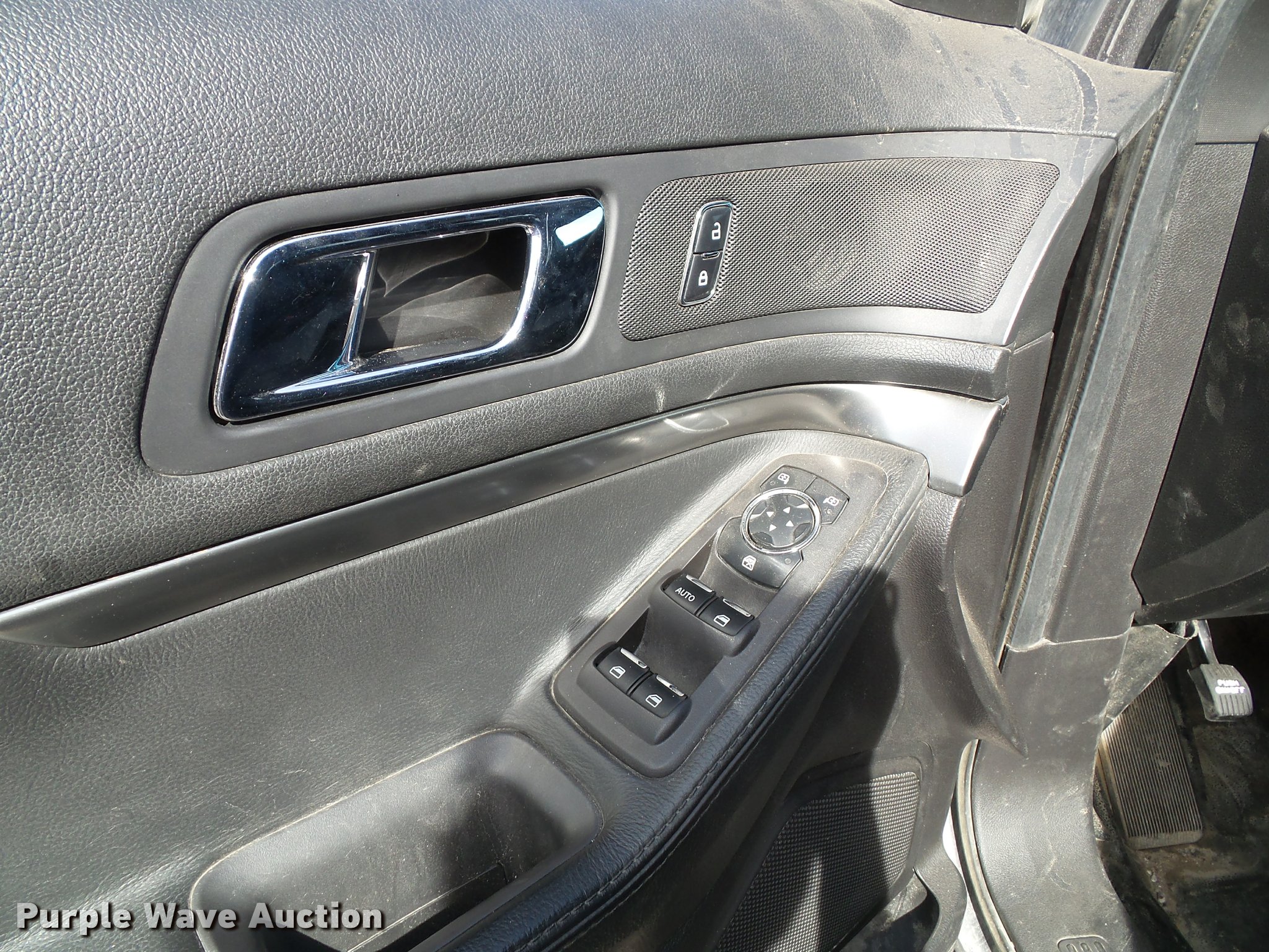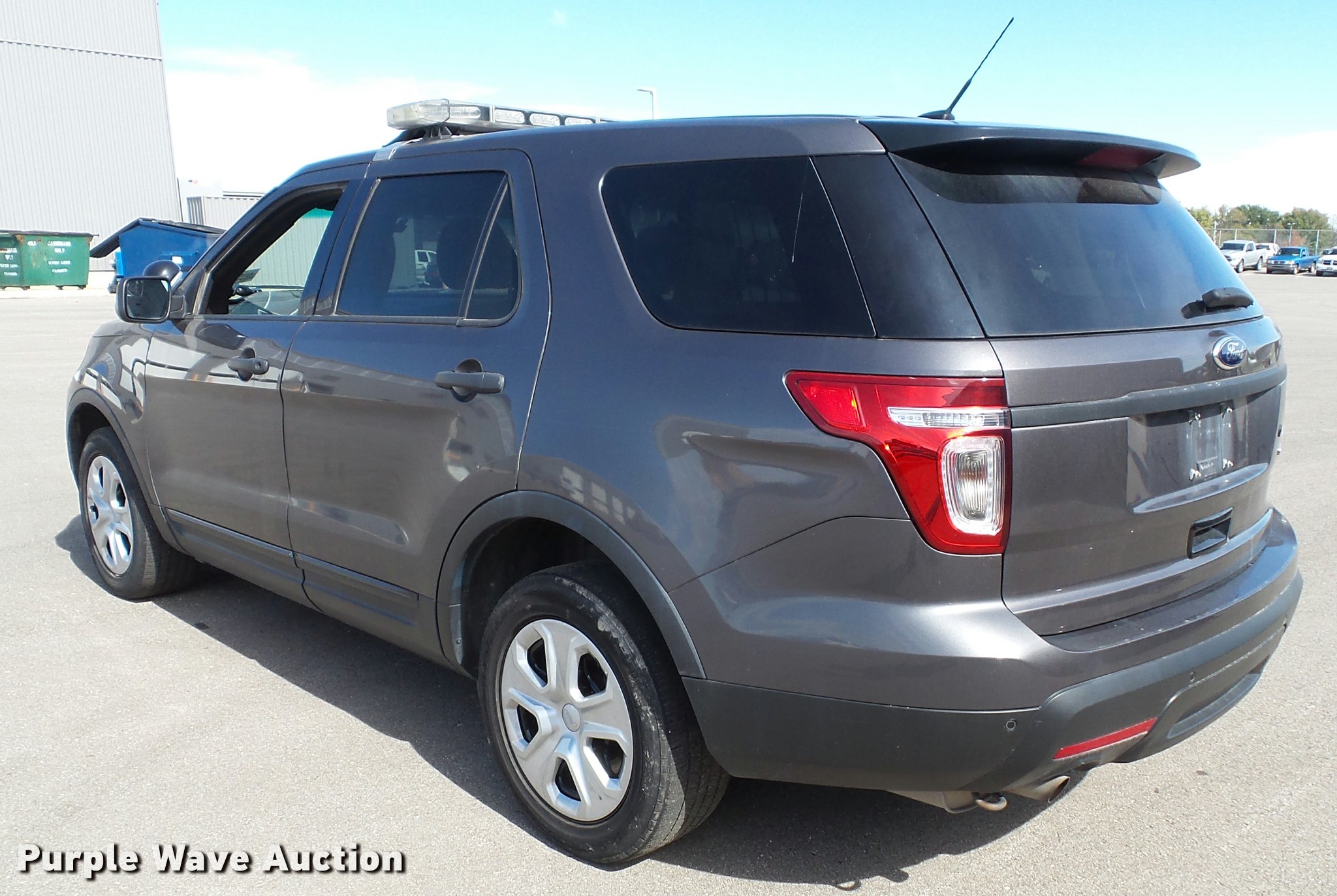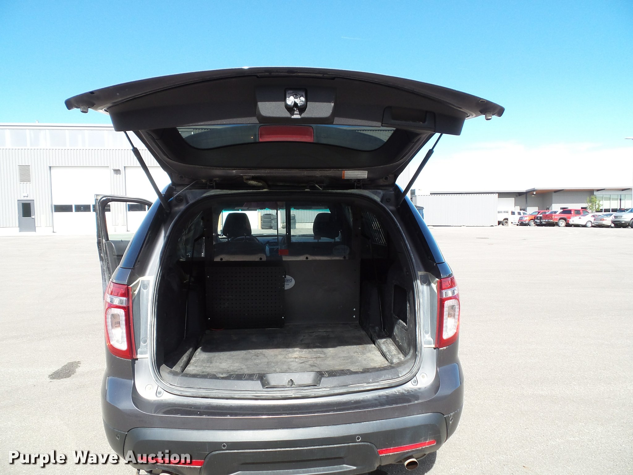 Purple Wave is selling a used Passenger Vehicle in Kansas. This item is a 2014 Ford Explorer Police Interceptor Utility SUV with the following: 98,510 miles on odometer, 3.7L V6 DOHC 24V gas engine, Automatic transmission, All wheel drive, AC and heat, Tilt, Cruise, AM/FM/CD, Power windows, locks, mirrors, and seat, Cloth interior, Heated mirrors, 245/55R18 tires, Spotlight, light bar, window bars, cage barrier, and center console will be removed if not purchased by a government agency, Service records available upon request, Unit# S21