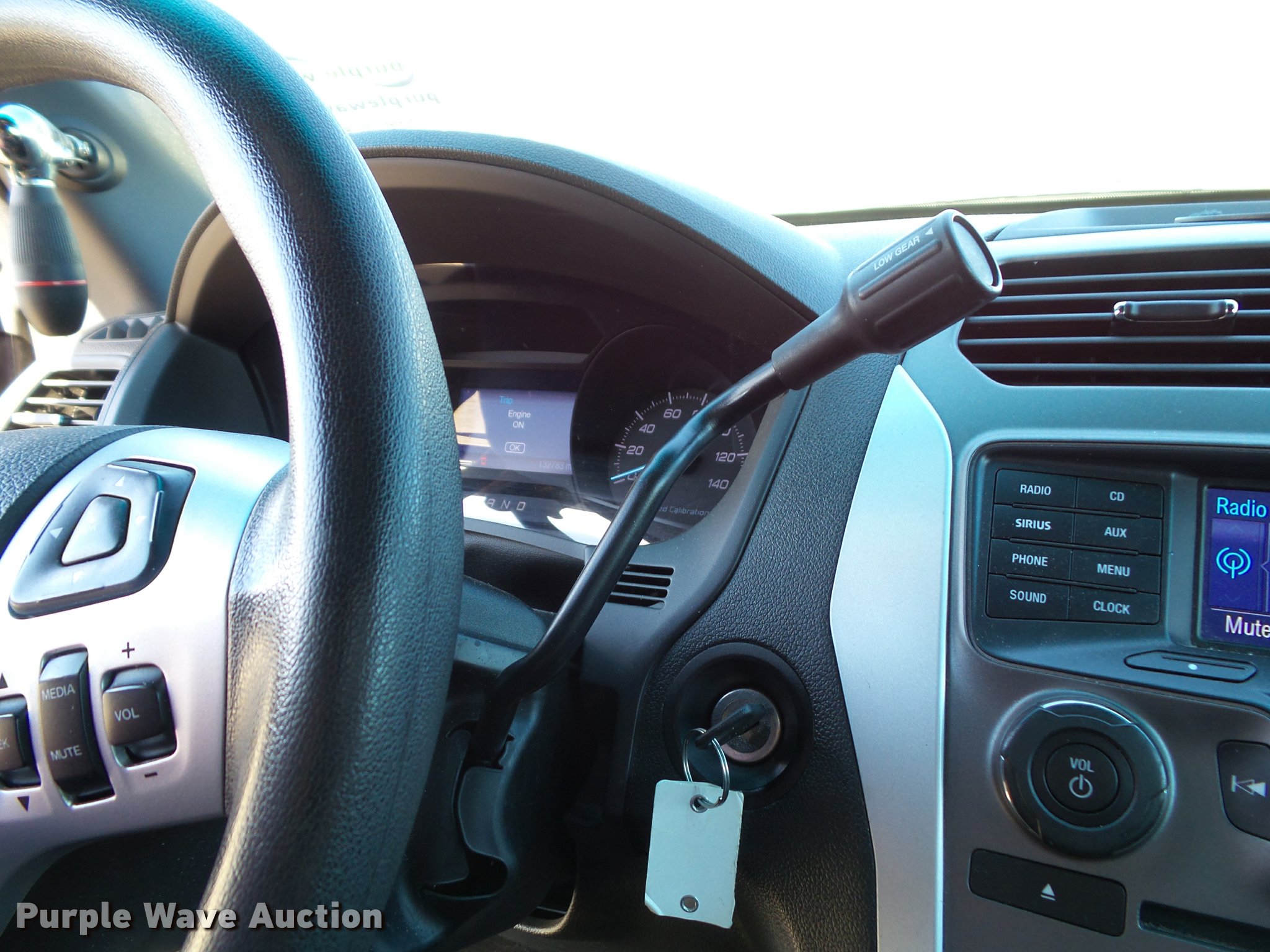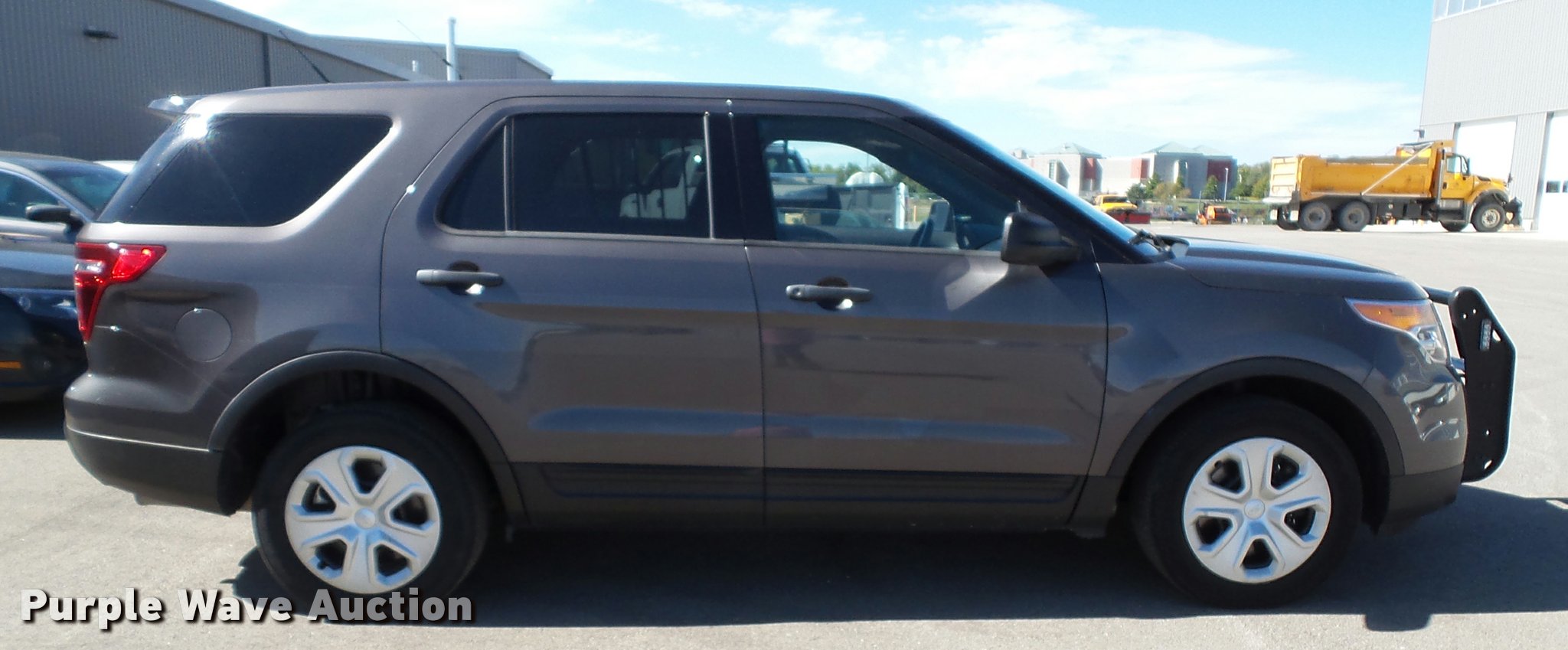 Purple Wave is selling a used Passenger Vehicle in Kansas. This item is a 2014 Ford Explorer Police Interceptor Utility SUV with the following: 132,783 miles on odometer, 3.7L V6 DOHC 24V gas engine, Automatic transmission, All wheel drive, AC and heat, Tilt, Cruise, AM/FM/CD, Power windows, locks, mirrors, and seat, Cloth interior, Heated mirrors, Push bar, 245/55R18 tires, Center console, window bars, cage barrier, LED lights, and spotlight will be removed if not purchased by a government agency, Service records available upon request, Unit# J53