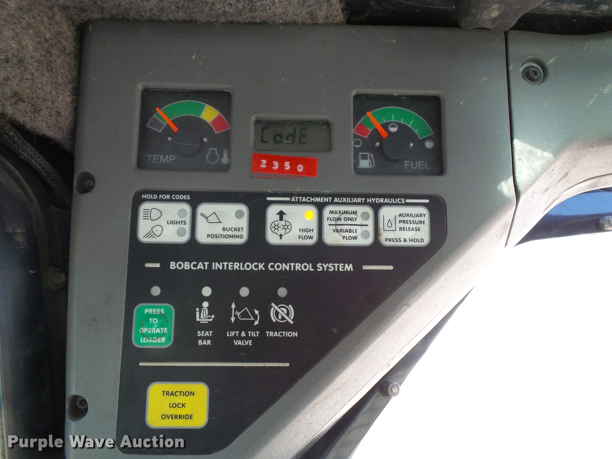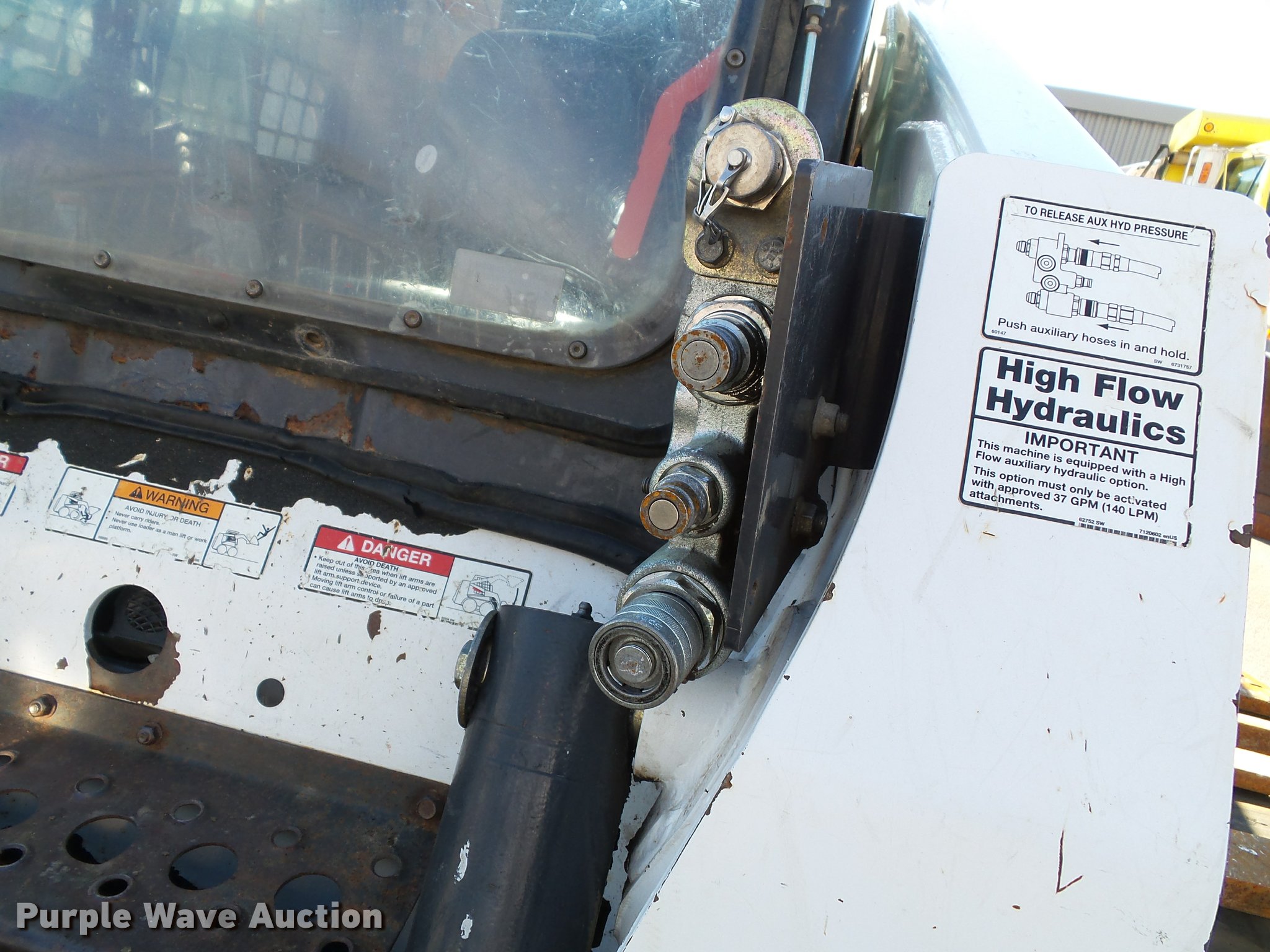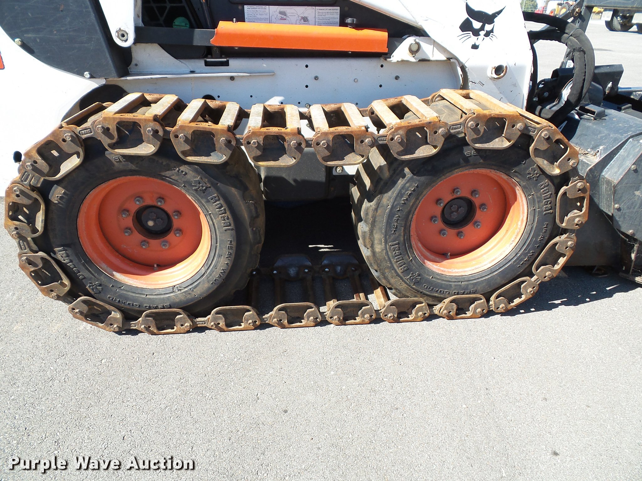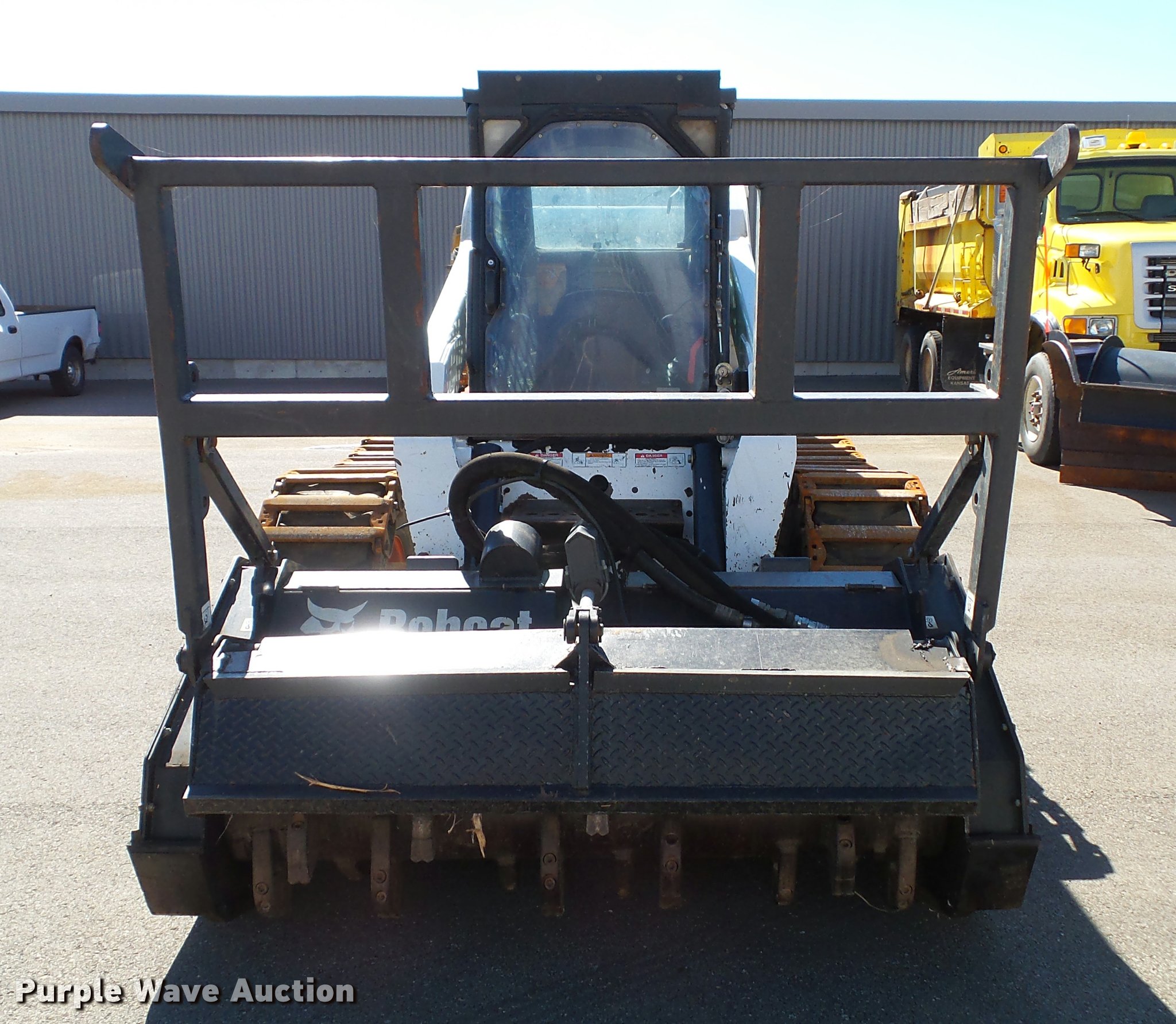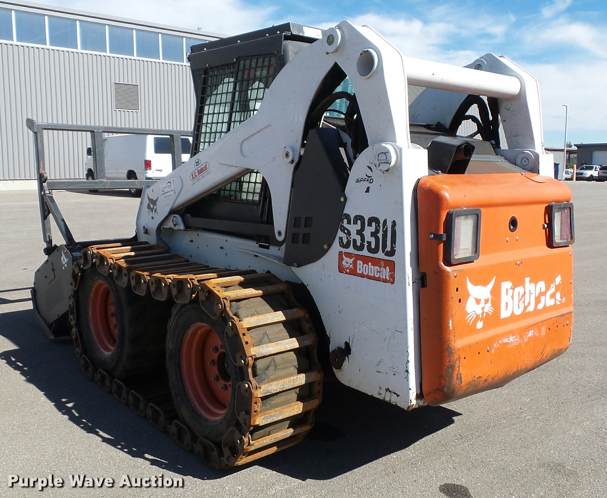 Purple Wave is selling a used Skid Steer Loader in Kansas. This item is a 2007 Bobcat S330 skid steer with the following: 2,180 hours on meter, Kubota four cylinder diesel engine, Two speed hydrostatic transmission, Enclosed cab, AC and heat, Joystick controls, Front work lights, High flow auxiliary hydraulics, 2008 Bobcat brush cutter, 5'W, Hydraulic gate, Serial A6ZB00391, 14-17.5 foam-filled tires, Bobcat tracks, Service records available upon request, Serial A02012451, Unit# 511, 511A