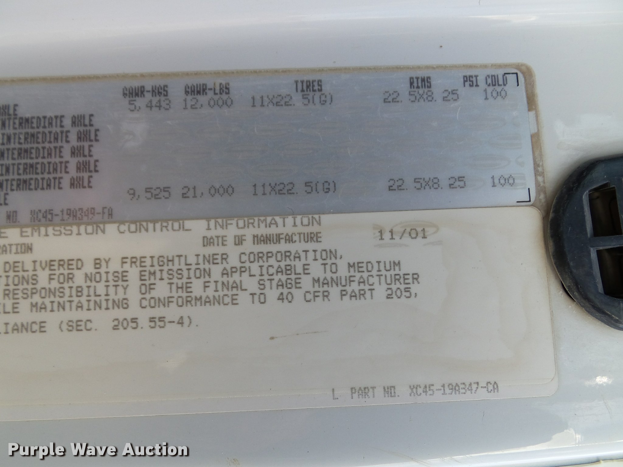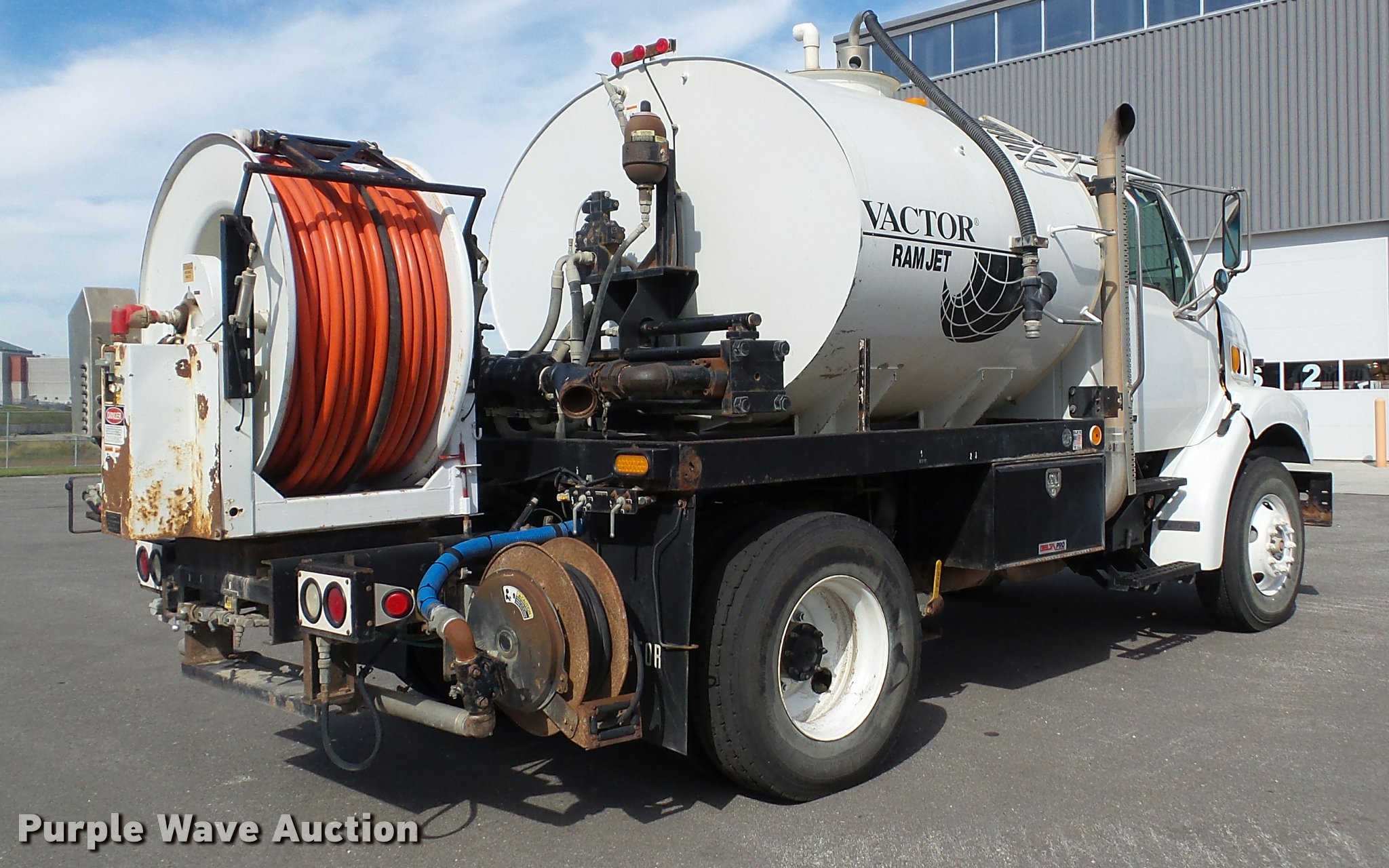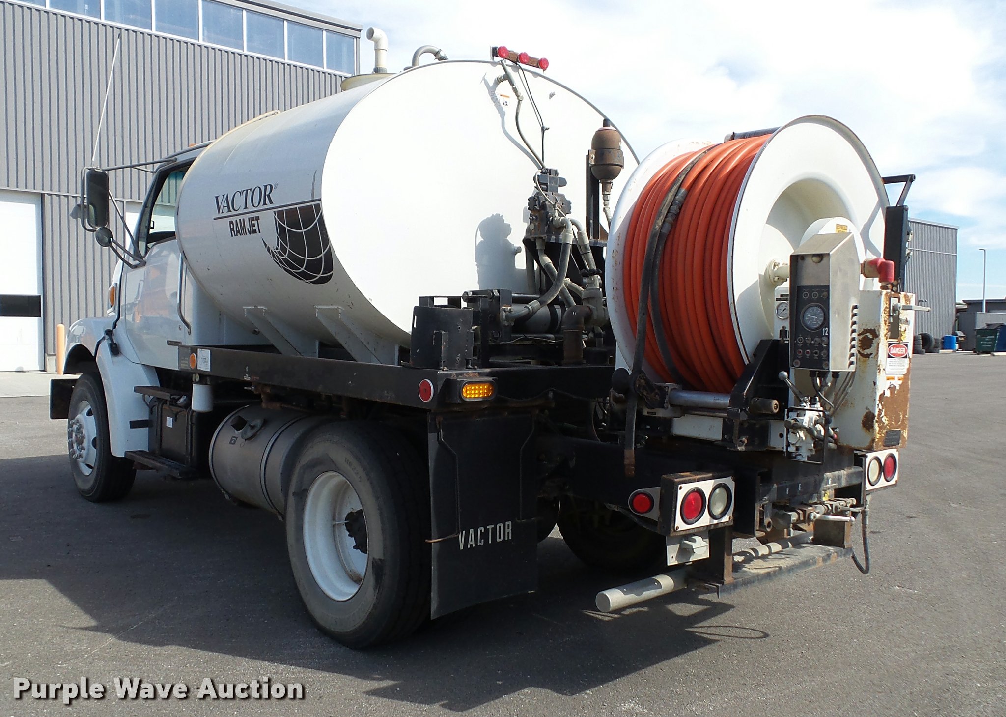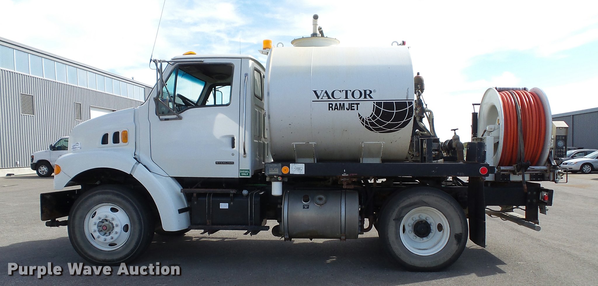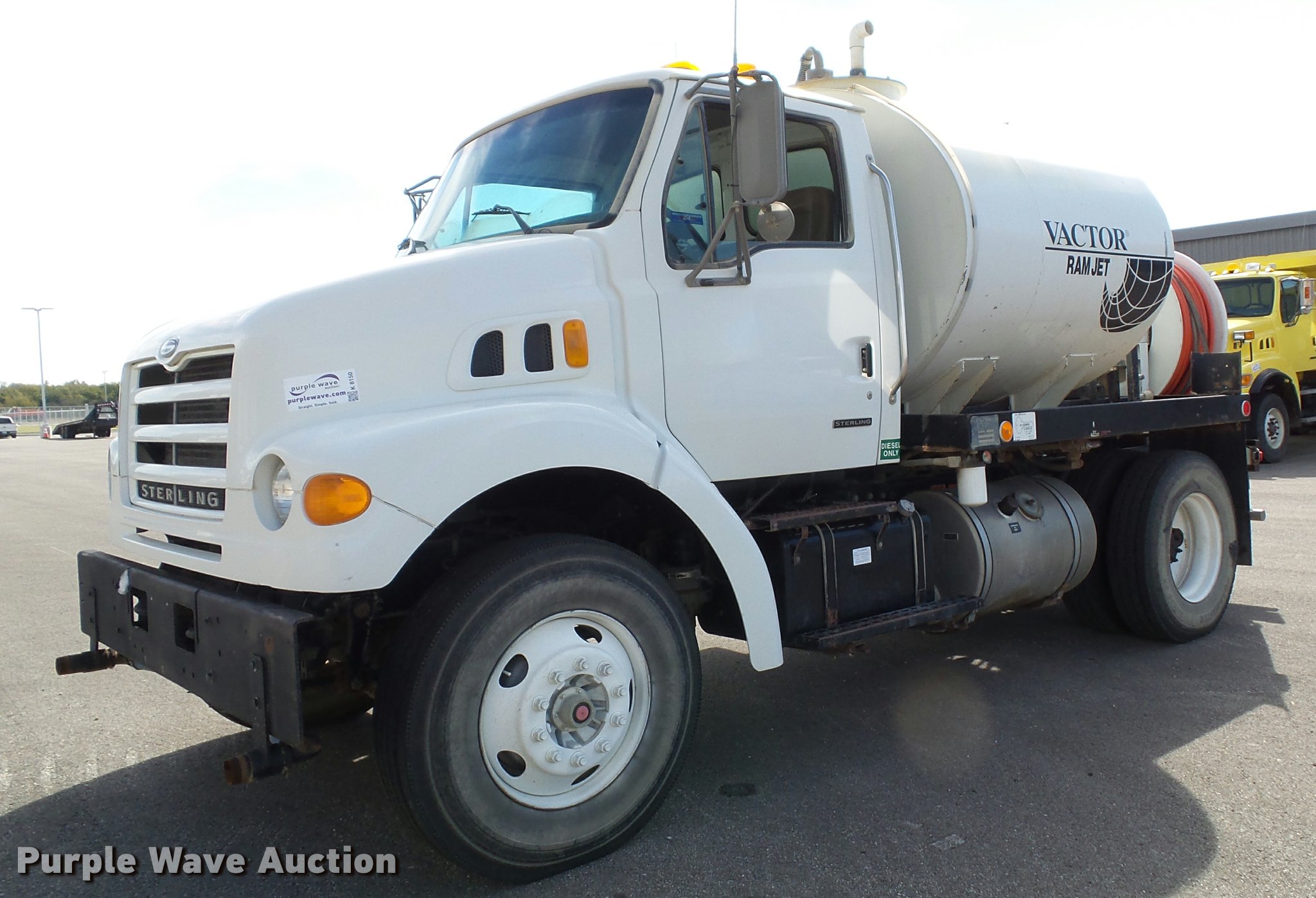 Purple Wave is selling a used Vacuum Truck in Kansas. This item is a 2002 Sterling L7500 Vactor Ram jetter truck with the following: 76,651 miles on odometer, 6,725 hours on meter, 7,677 hours on vacuum meter, Caterpillar 3126 7.2L L6 turbo diesel engine, Automatic transmission, Single axle, AC and heat, Cruise, AM/FM, Front tow hooks, Backup alarm, Air suspension vinyl seat, Toolbox, Vactor Ram jetter, Model V6015, Approx. 300' hose, Hose reel, Serial 01-12T-1318, Hydraulic oil tank, Spring suspension, Air brakes, 154" wheelbase, Michelin 11R22.5 tires, GVWR 33,000 lbs, FAWR 12,000 lbs, RAWR 21,000 lbs, Service records available upon request, Unit# 220