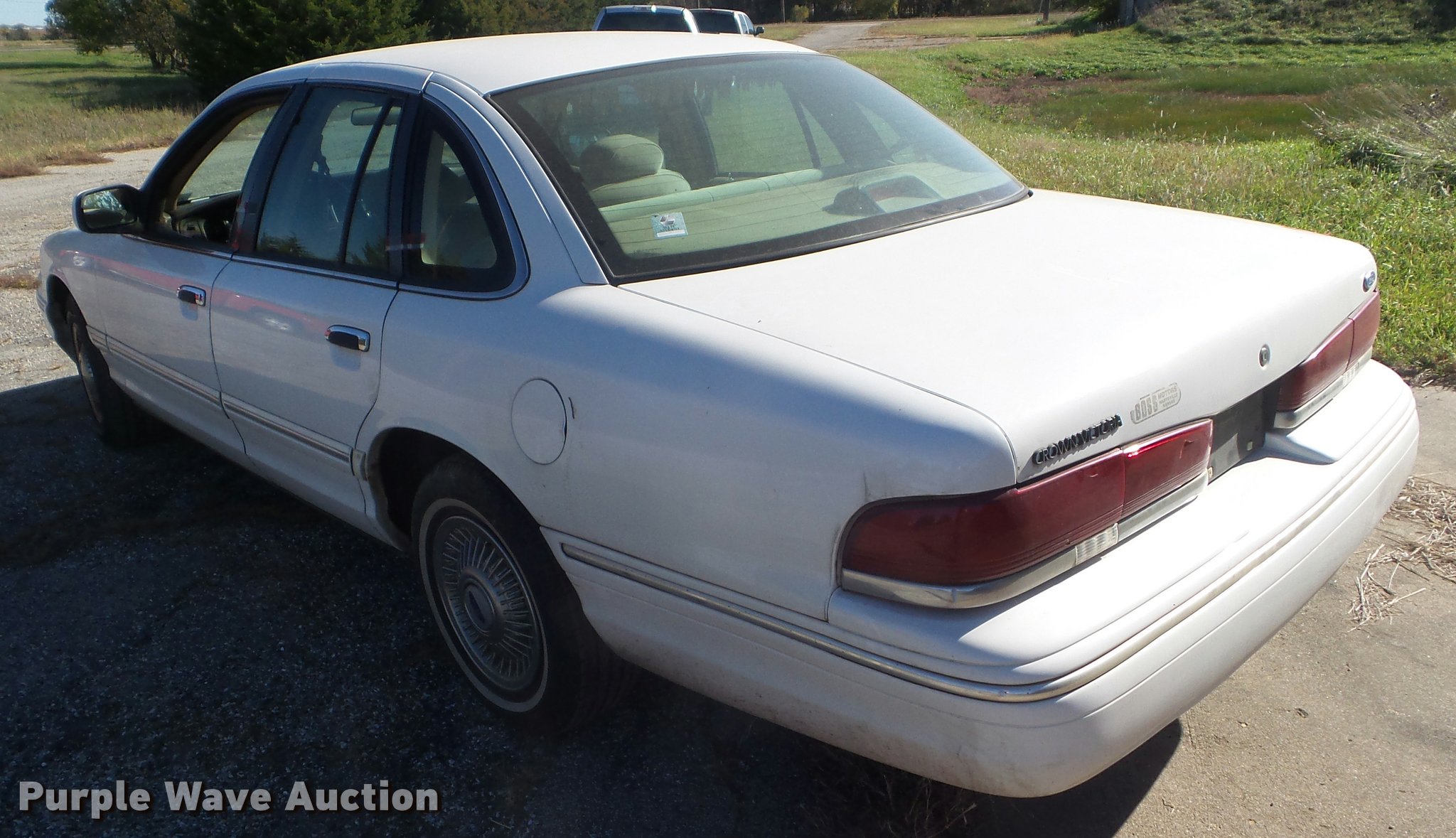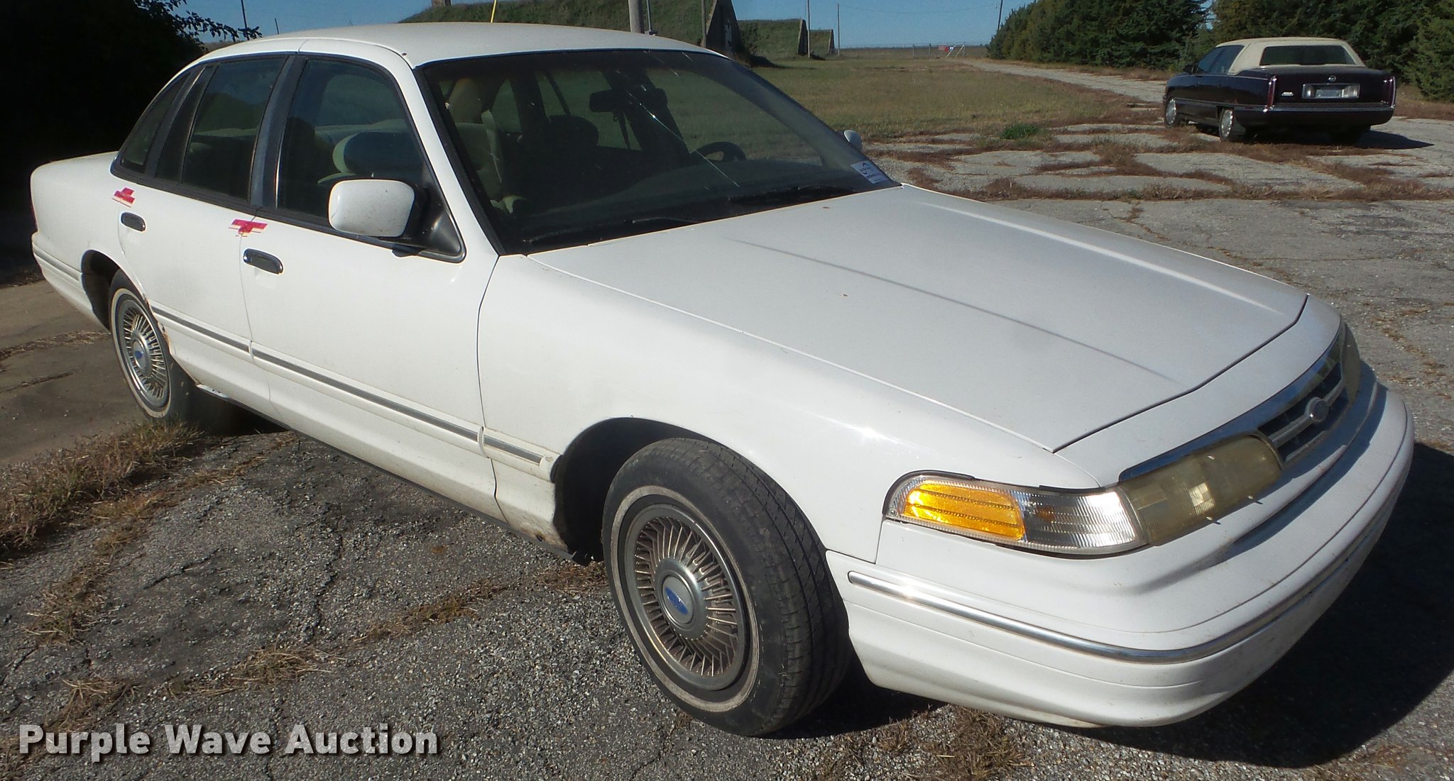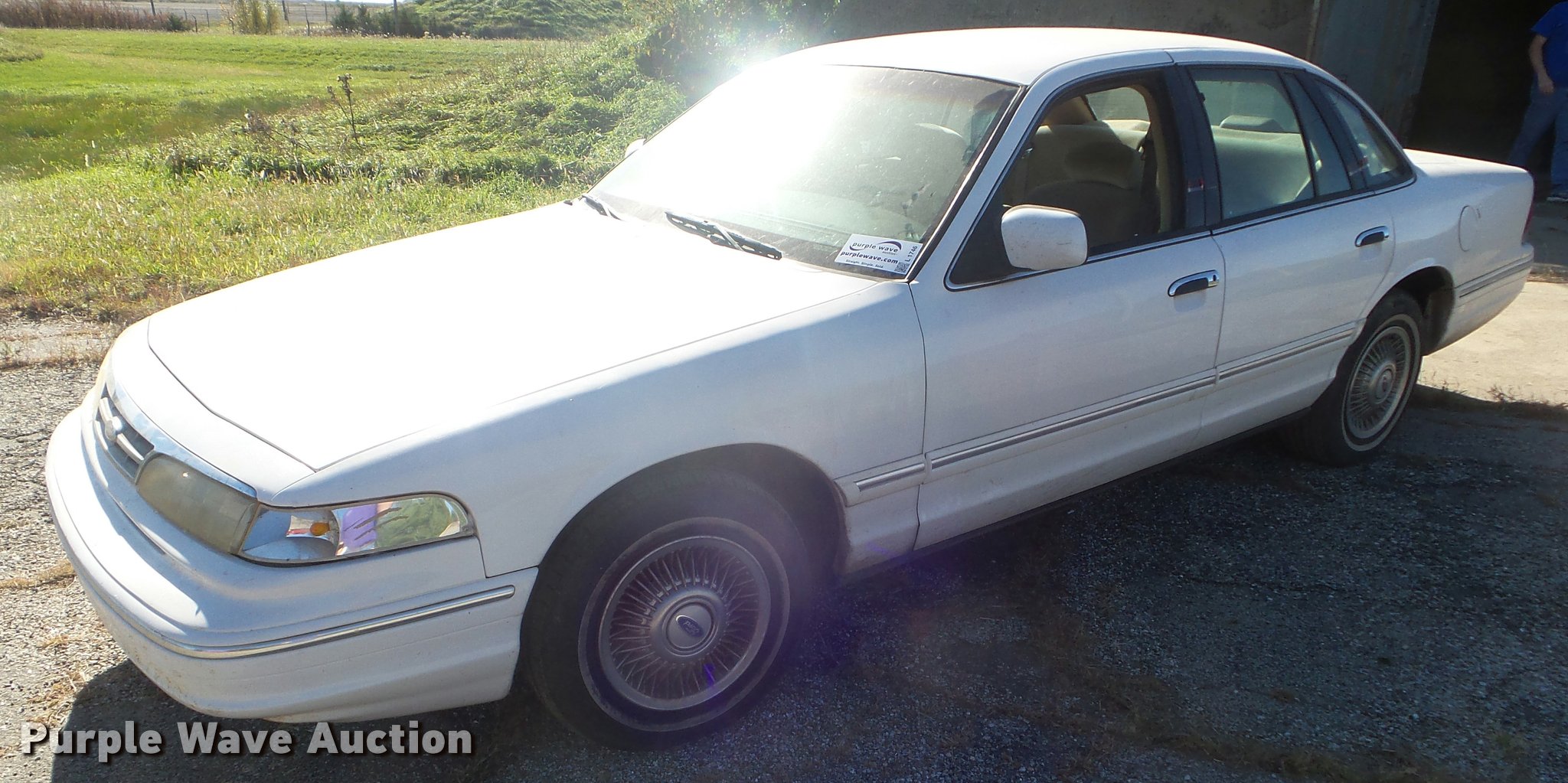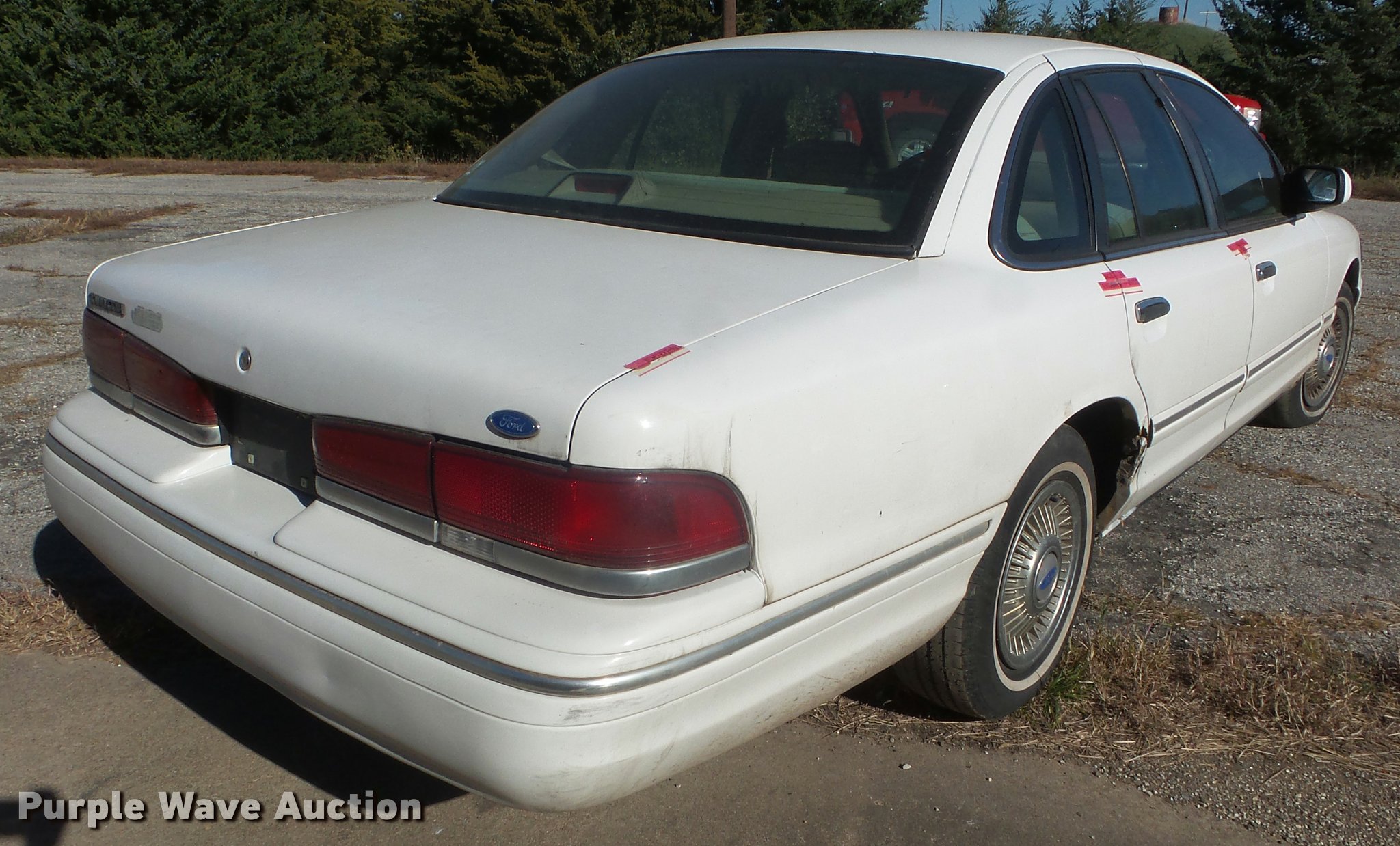 Purple Wave is selling a used Passenger Vehicle in Kansas. This item is a 1997 Ford Crown Victoria with the following: 104,304 miles on odometer, 4.6L V8 SOHC 16V gas engine, Automatic transmission, AC and heat, Tilt, Cruise, AM/FM, Power windows, locks, and mirrors, Cloth interior, 215/70R15 tires, Cracked windshield