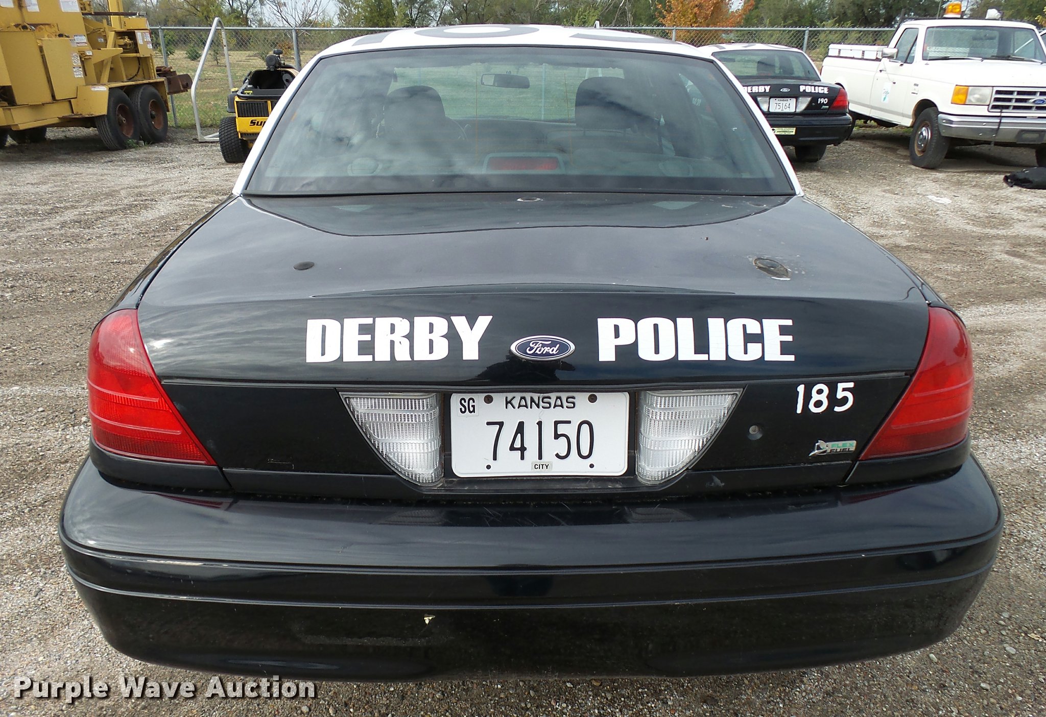 2010 Ford Crown Victoria Police Interceptor. 113,006 miles on odometer, 4.6L V8 SOHC 16V FFV gas engine, Automatic transmission, AC and heat, AM/FM, Power windows, locks, mirrors, and seat, Cloth front interior, Vinyl rear interior, 235/55R17 tires, Port holes, Decals will be removed, Center console removed, Light bar and accessories not included. Kansas title. 2FABP7BV7AX103544. City of Derby. 229 N Baltimore Ave. Derby, KS 67037