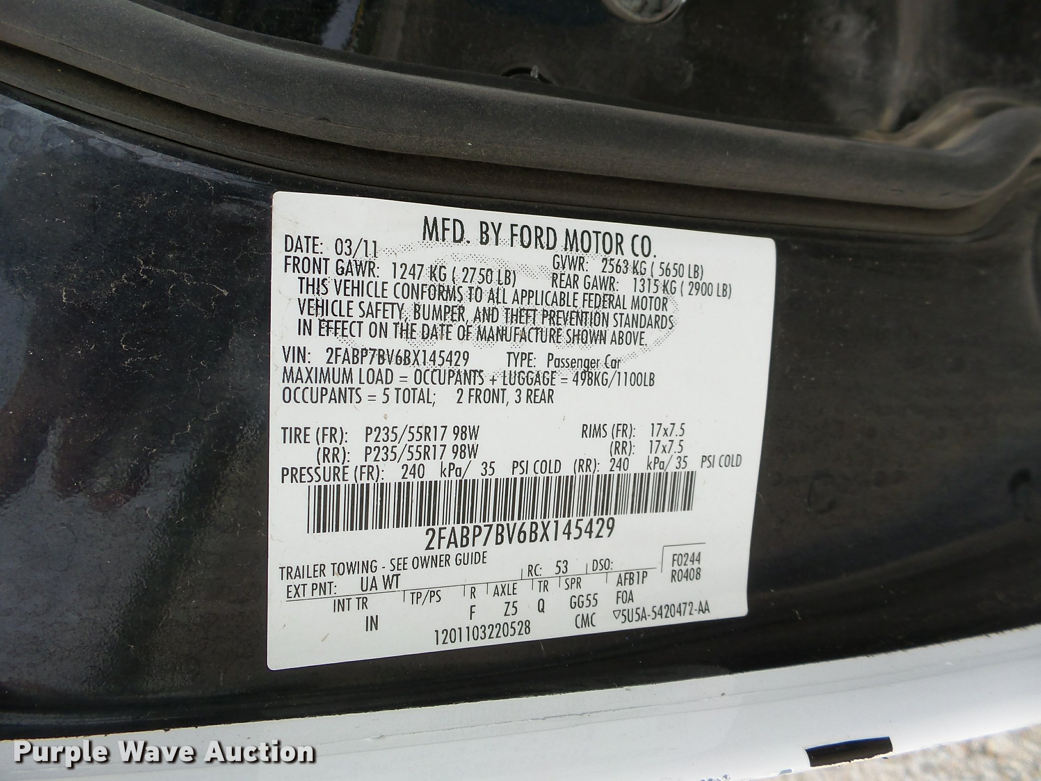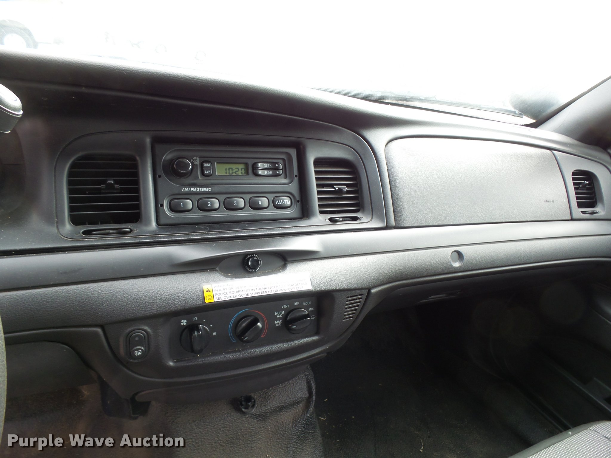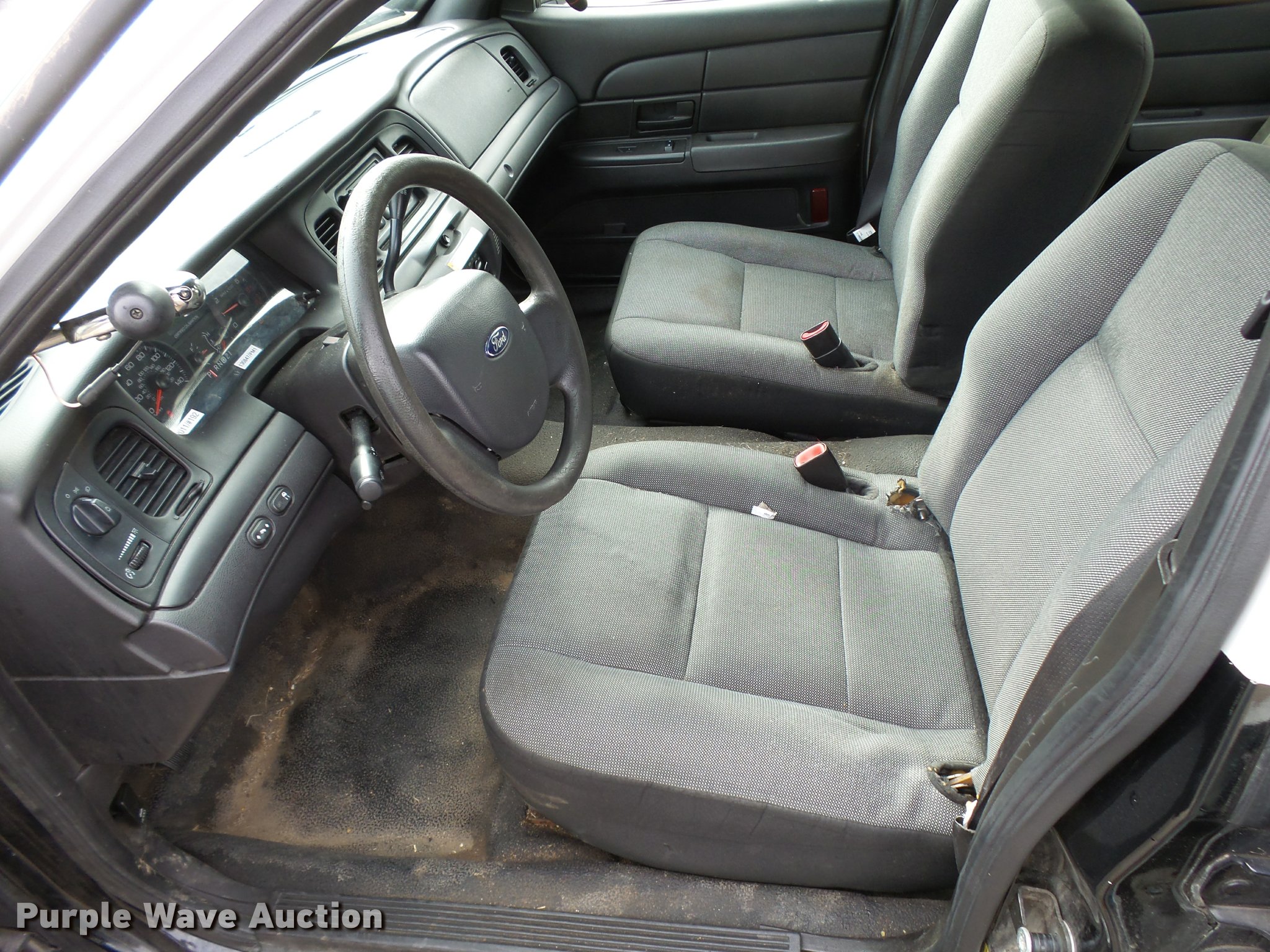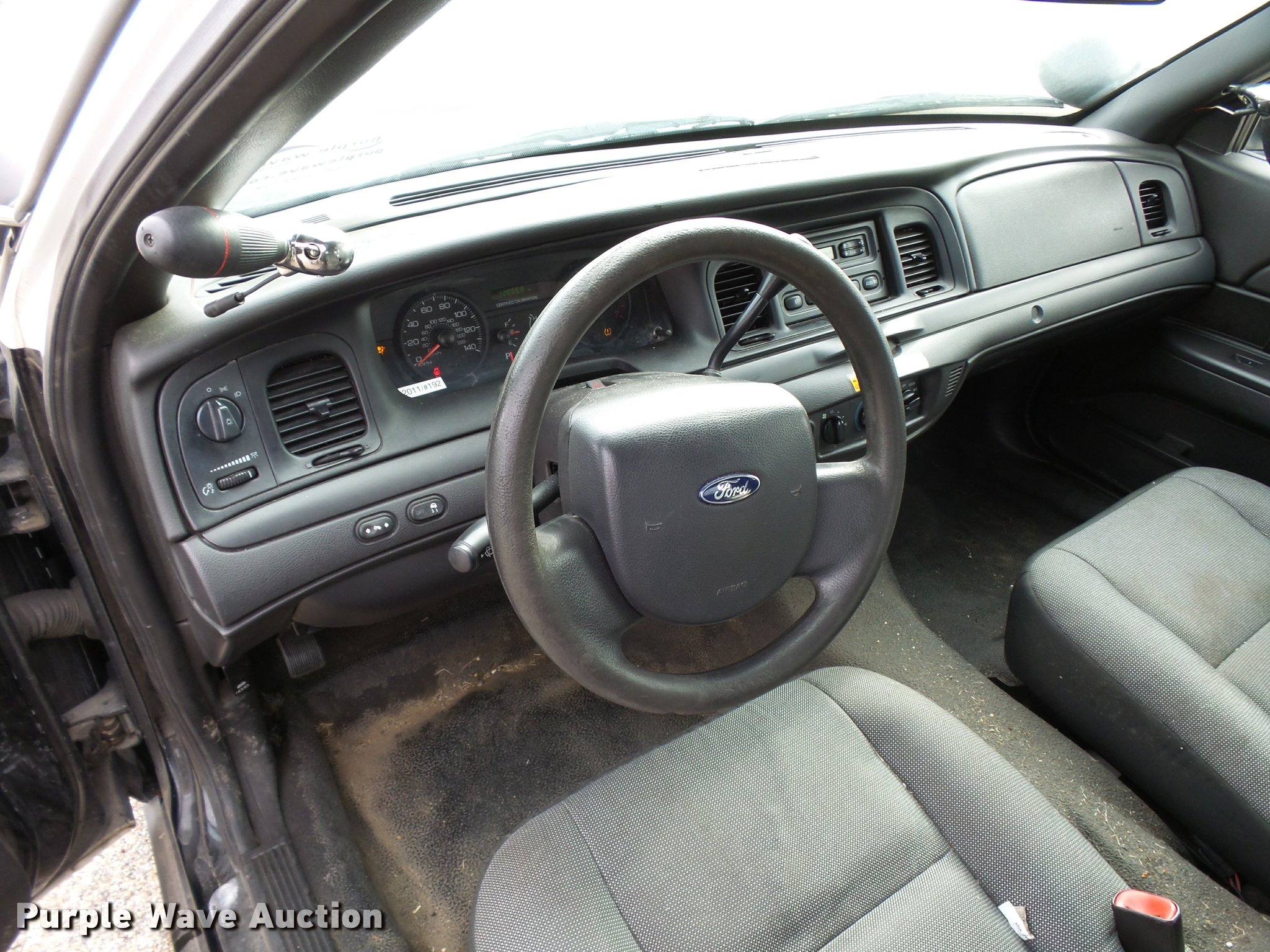 Purple Wave is selling a used Passenger Vehicle in Kansas. This item is a 2011 Ford Crown Victoria Police Interceptor with the following: 126,868 miles on odometer, 4.6L V8 SOHC 16V FFV gas engine, Automatic transmission, AC and heat, AM/FM, Power windows, locks, mirrors, and seat, Cloth front interior, Vinyl rear interior, 235/55R17 tires, Decals will be removed, Port holes, Center console removed, Light bar and accessories not included