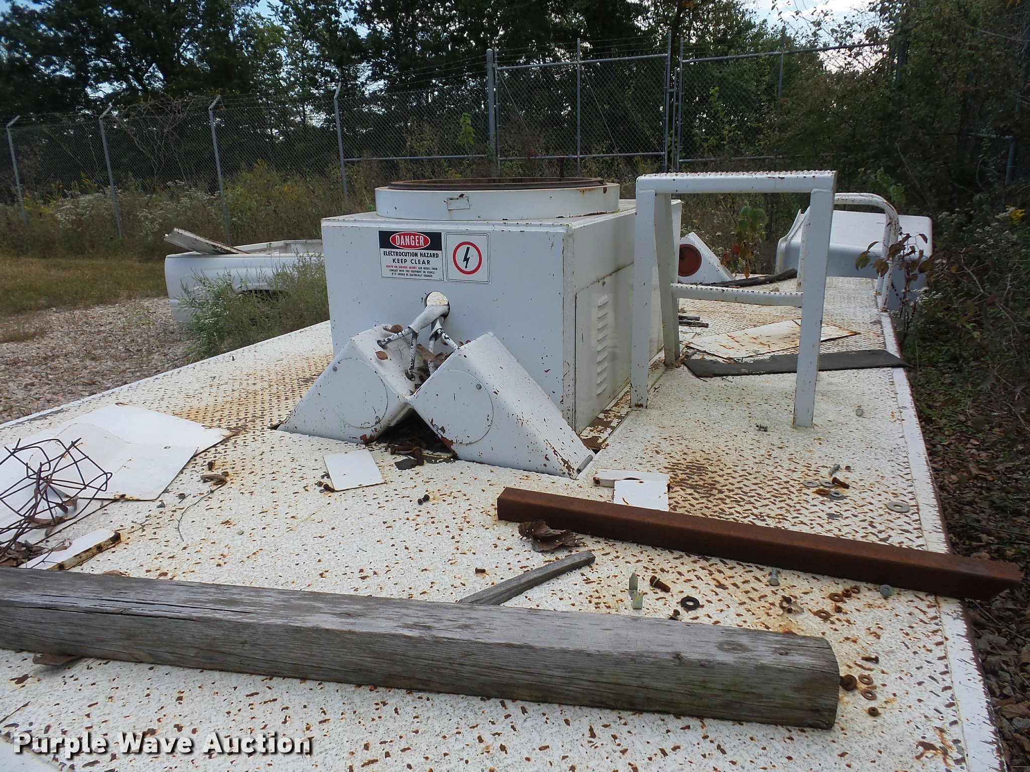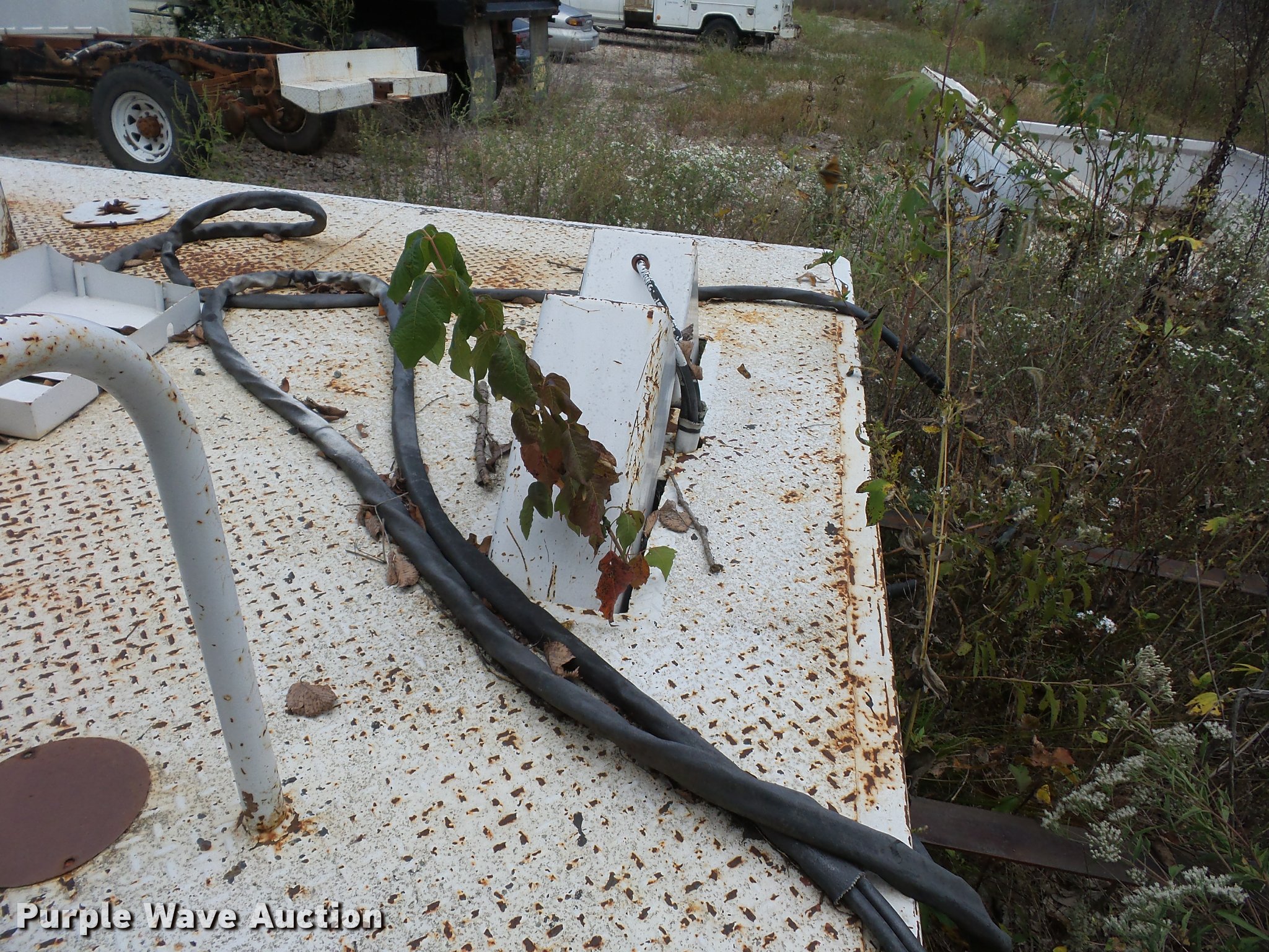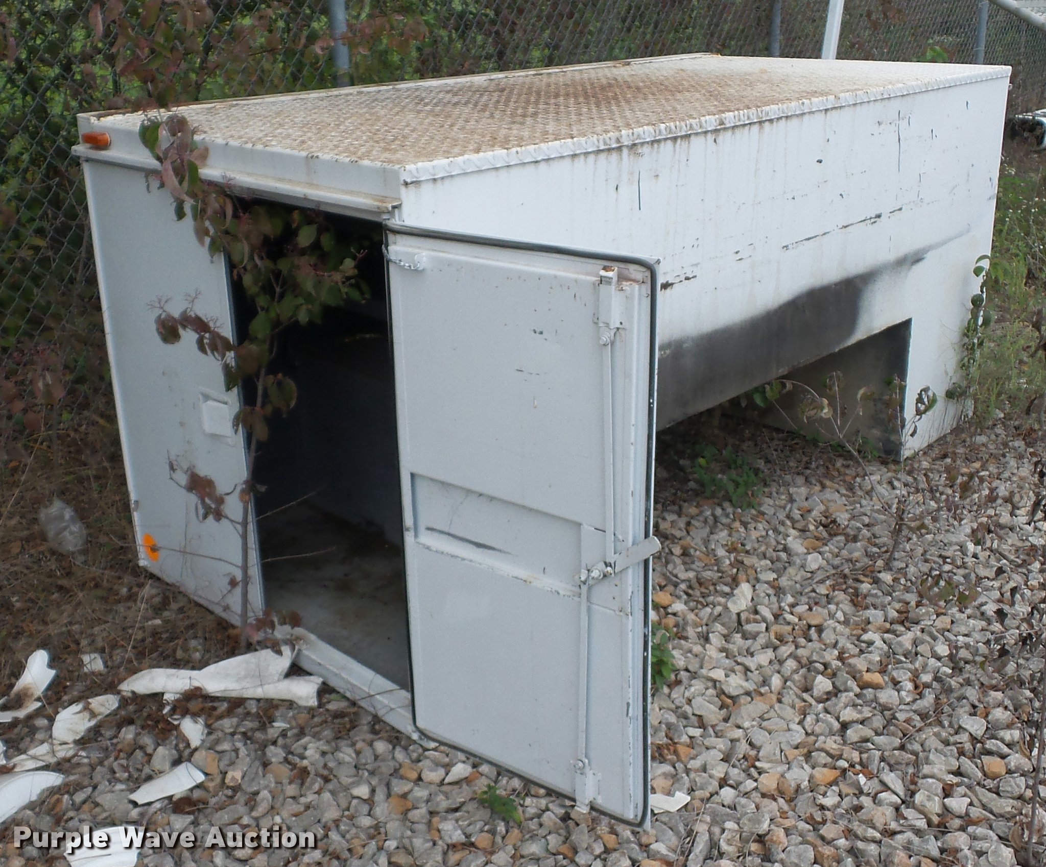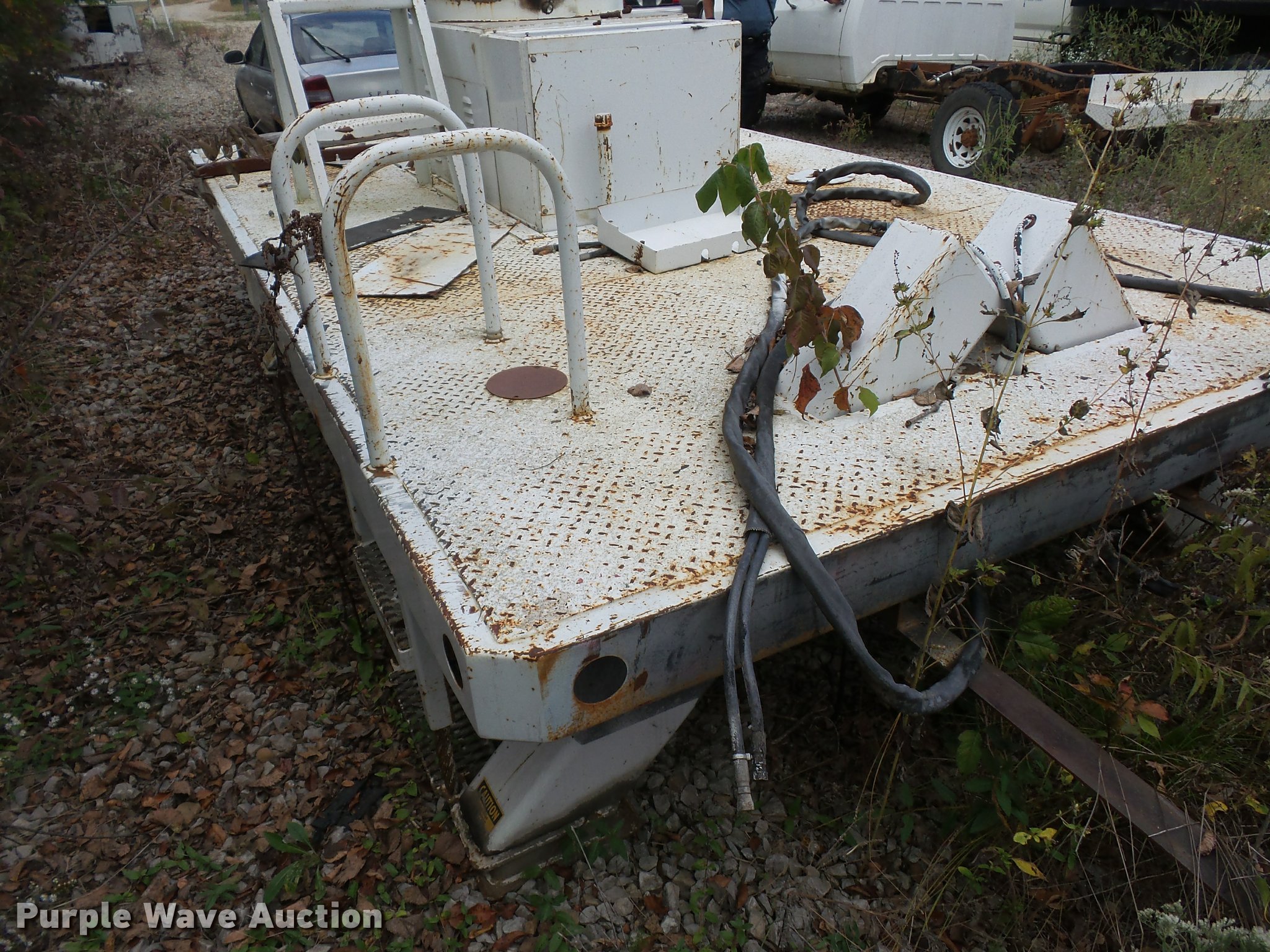 Purple Wave is selling a used Truck Part and Attach. in Missouri. This item is a 12'L x 8'W bucket bed with the following: Cab guard, Toolbox, Boom is cut, Non-operational unit