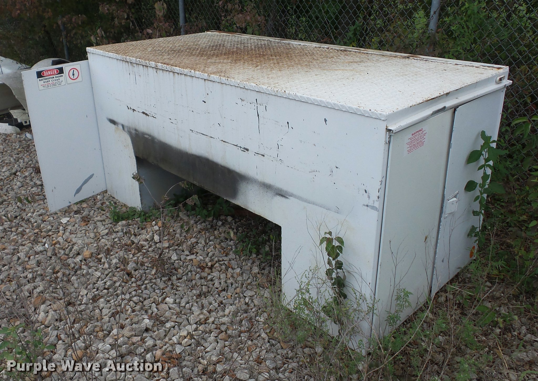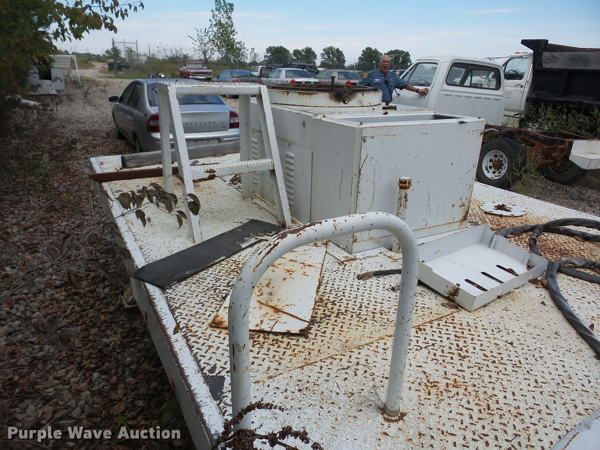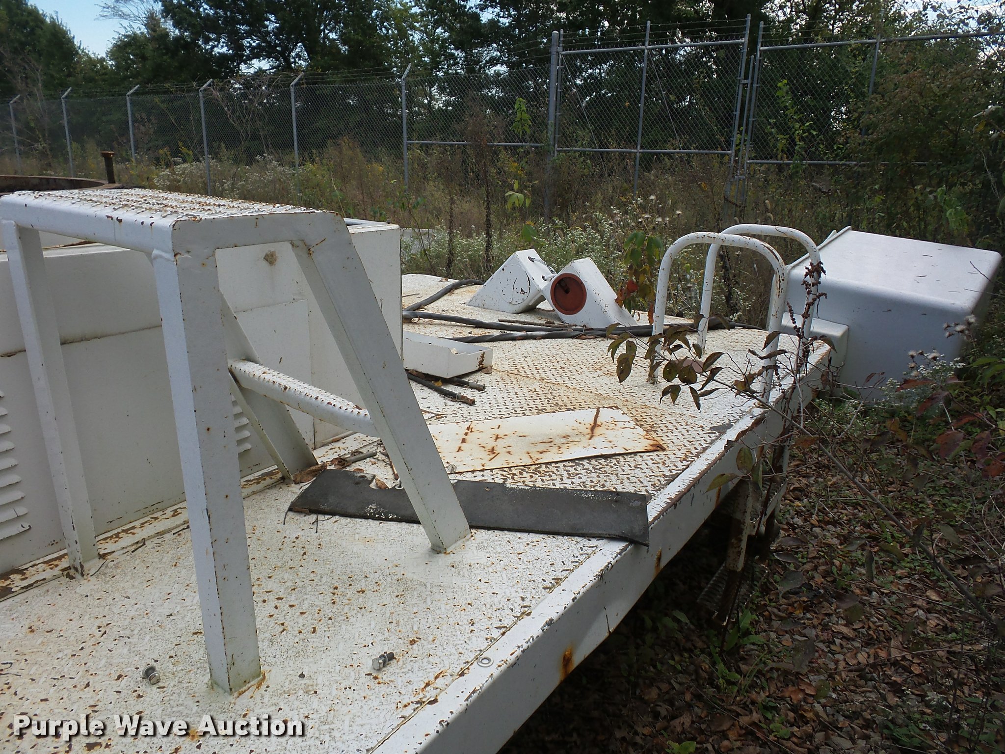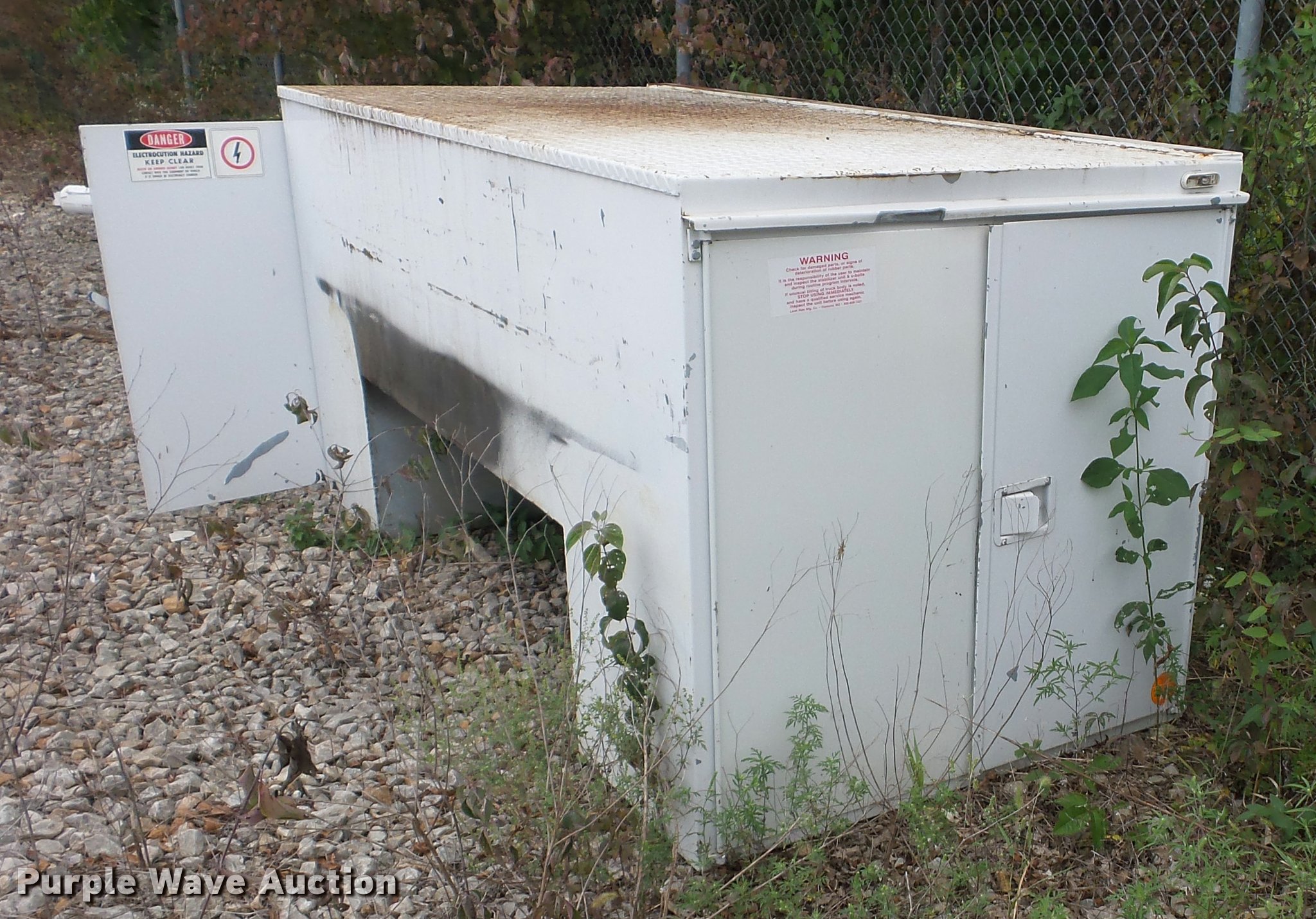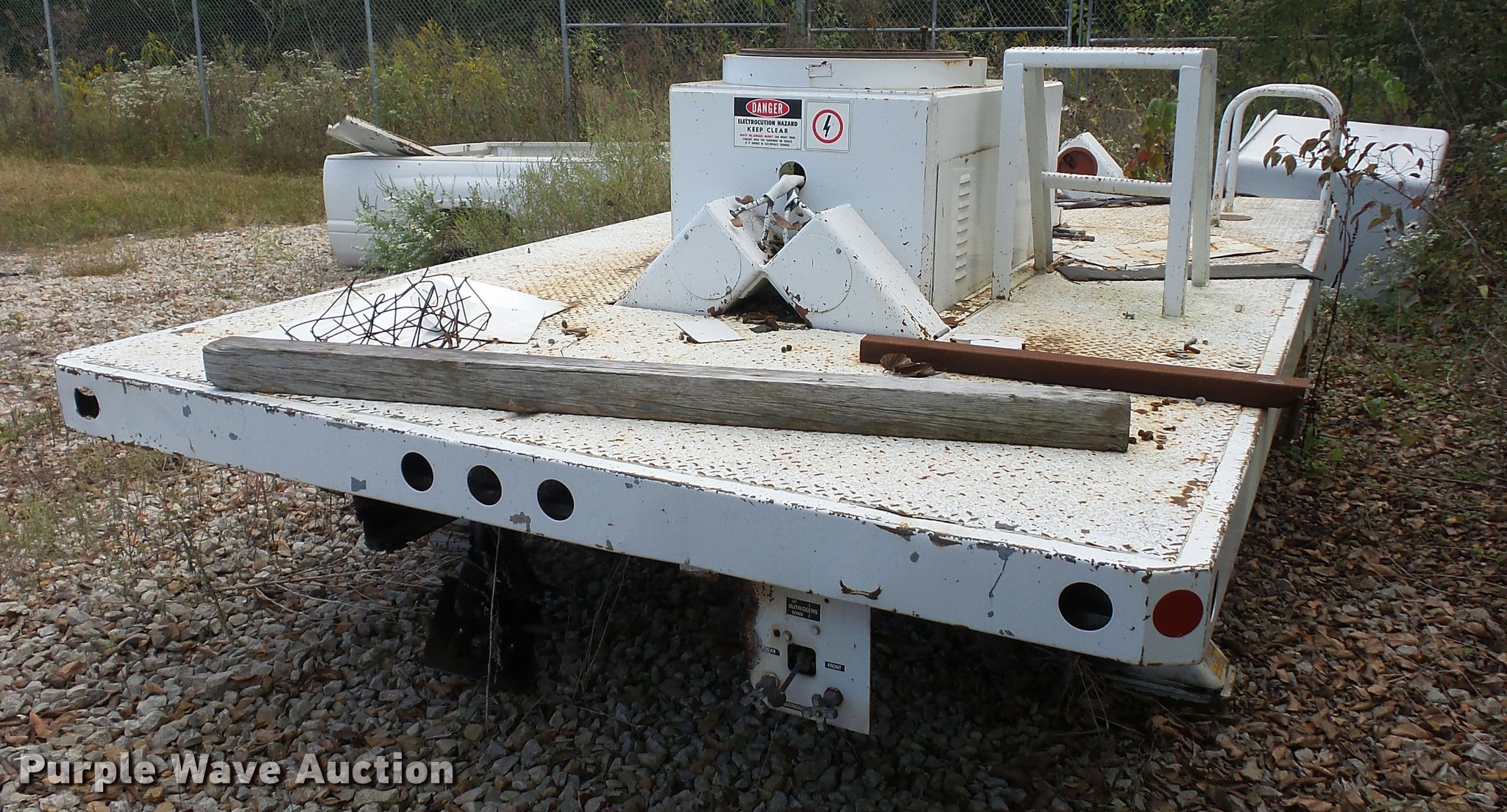 Purple Wave is selling a used Truck Part and Attach. in Missouri. This item is a 12'L x 8'W bucket bed with the following: Cab guard, Toolbox, Boom is cut, Non-operational unit