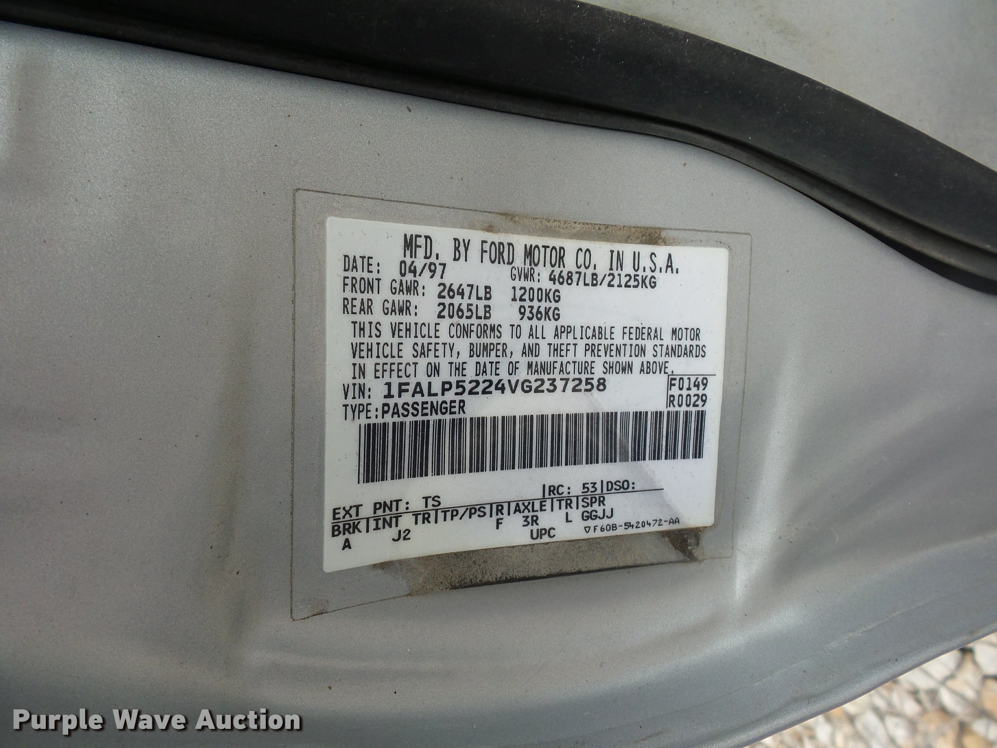 1997 Ford Taurus has sold in Butler, Missouri for $88. Item L4296 sold on December 6th, 2016.