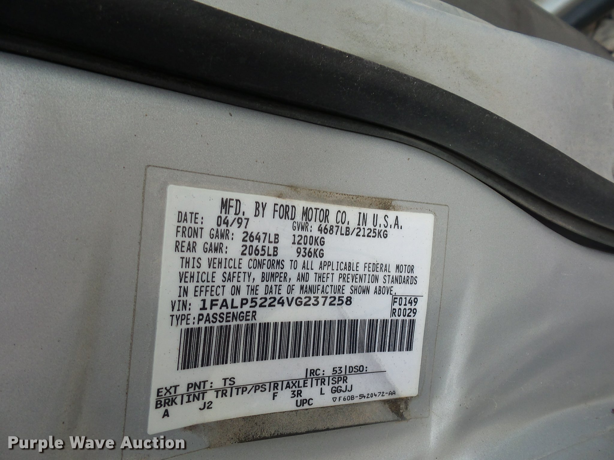 Purple Wave is selling a used Passenger Vehicle in Missouri. This item is a 1997 Ford Taurus with the following: 144,015 miles on odometer, 3.0L V6 OHV 12V FFV gas engine, Automatic transmission, AC and heat, Tilt, Cruise, AM/FM, Power windows, locks, and mirrors, Cloth interior, Dead battery, Non-operational transmission