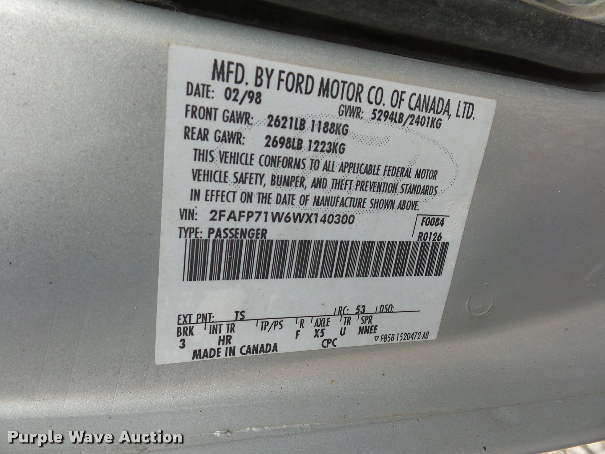Purple Wave is selling a used Passenger Vehicle in Missouri. This item is a 1998 Ford Crown Victoria Police Interceptor with the following: 126,111 miles on odometer, 4.6L V8 SOHC 16V gas engine, Automatic transmission, Cloth interior, 225/60R16 tires, Dead battery, Unknown operating condition