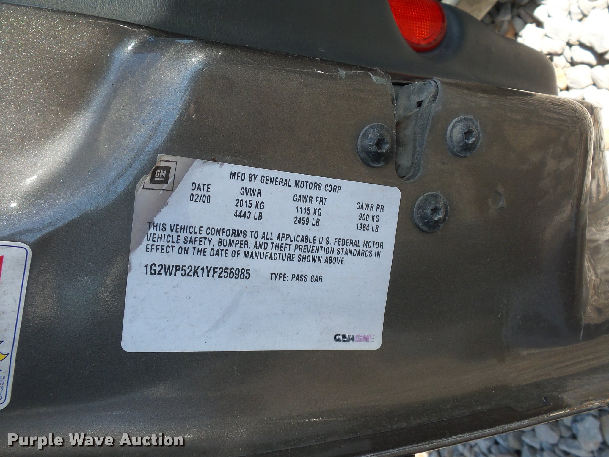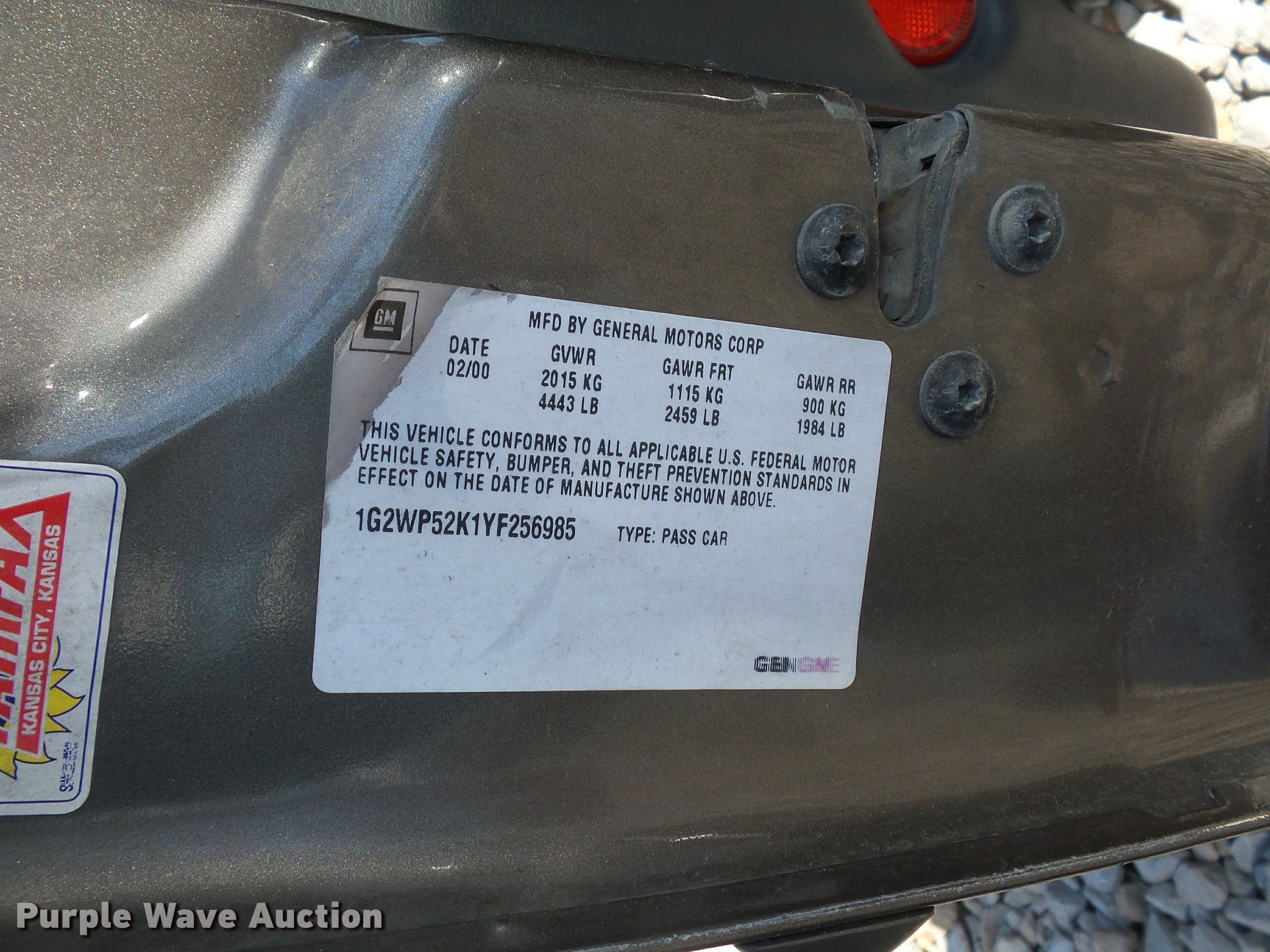 Purple Wave is selling a used Passenger Vehicle in Missouri. This item is a 2000 Pontiac Grand Prix with the following: 199,633 miles on odometer, 3.8L V6 OHV 12V gas engine, Automatic transmission, AC and heat, Tilt, Cruise, AM/FM, Power windows, locks, and mirrors, Cloth interior, 225/60R16 tires, Dead battery, Unknown operating condition