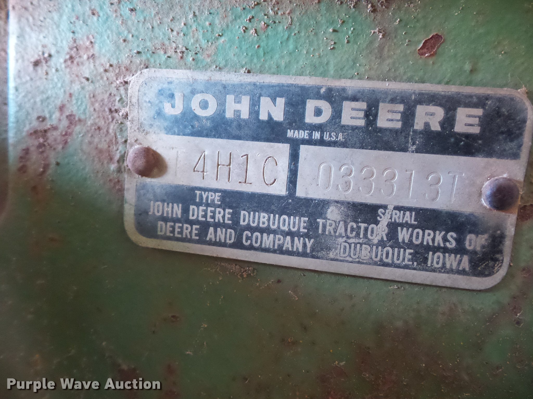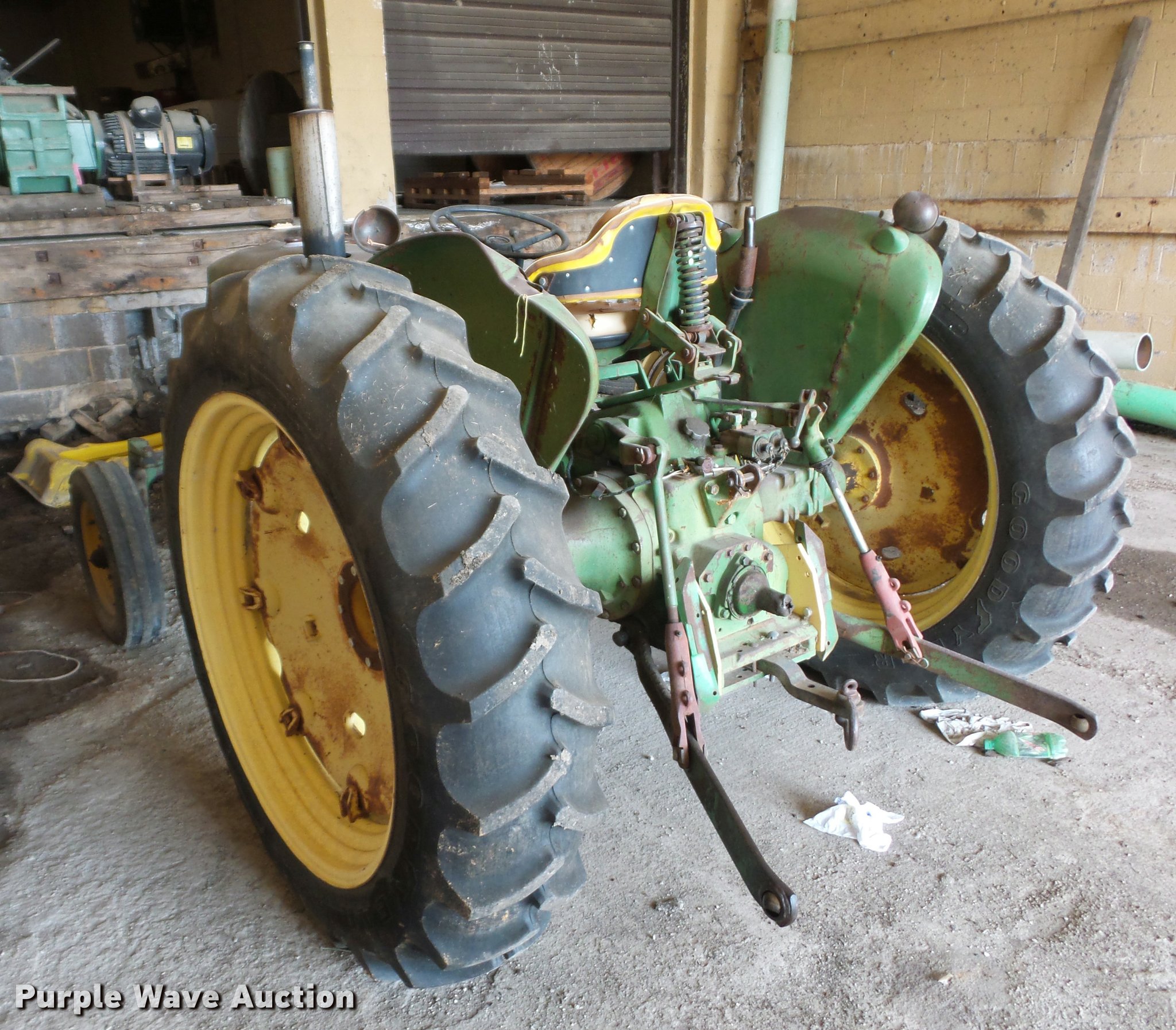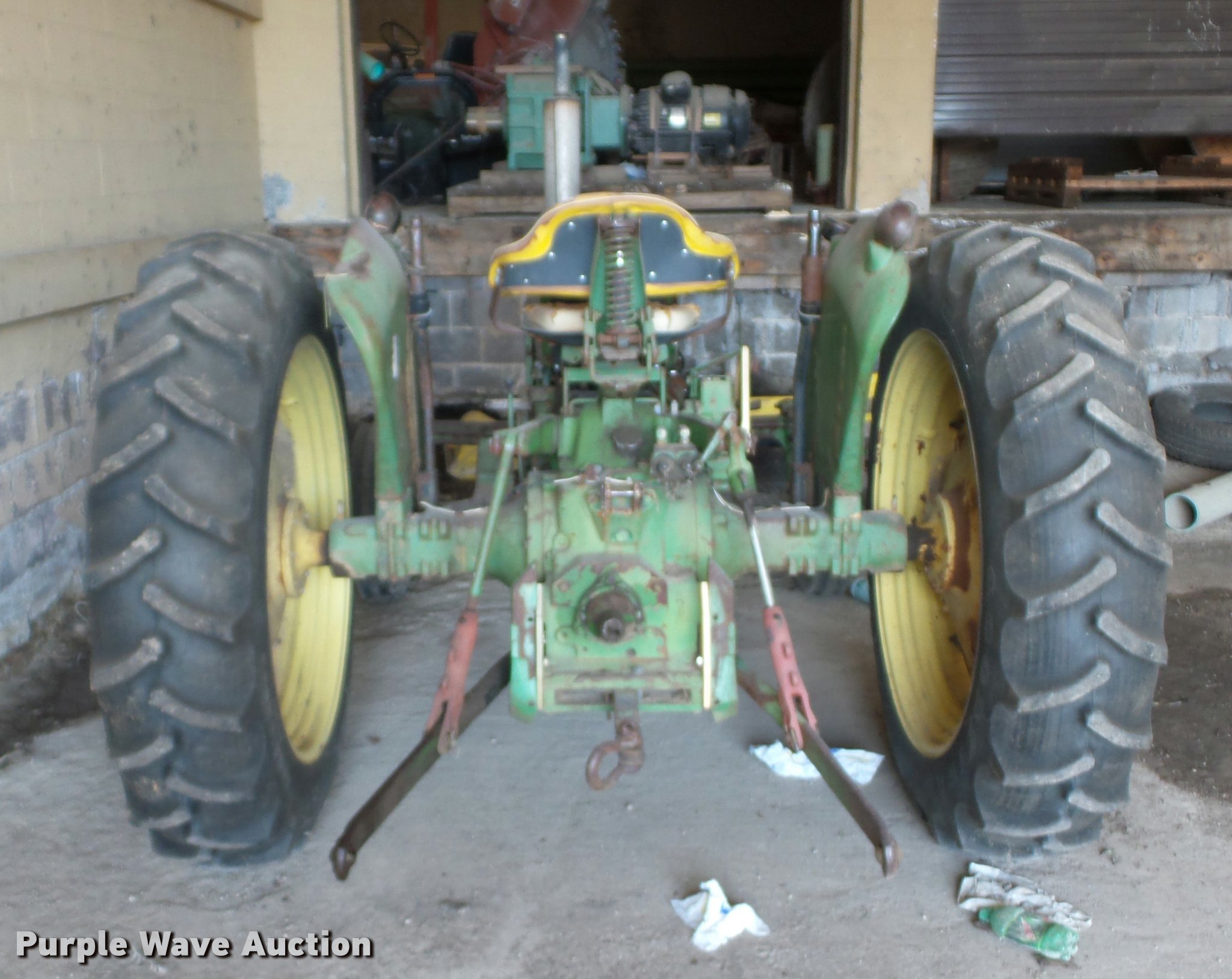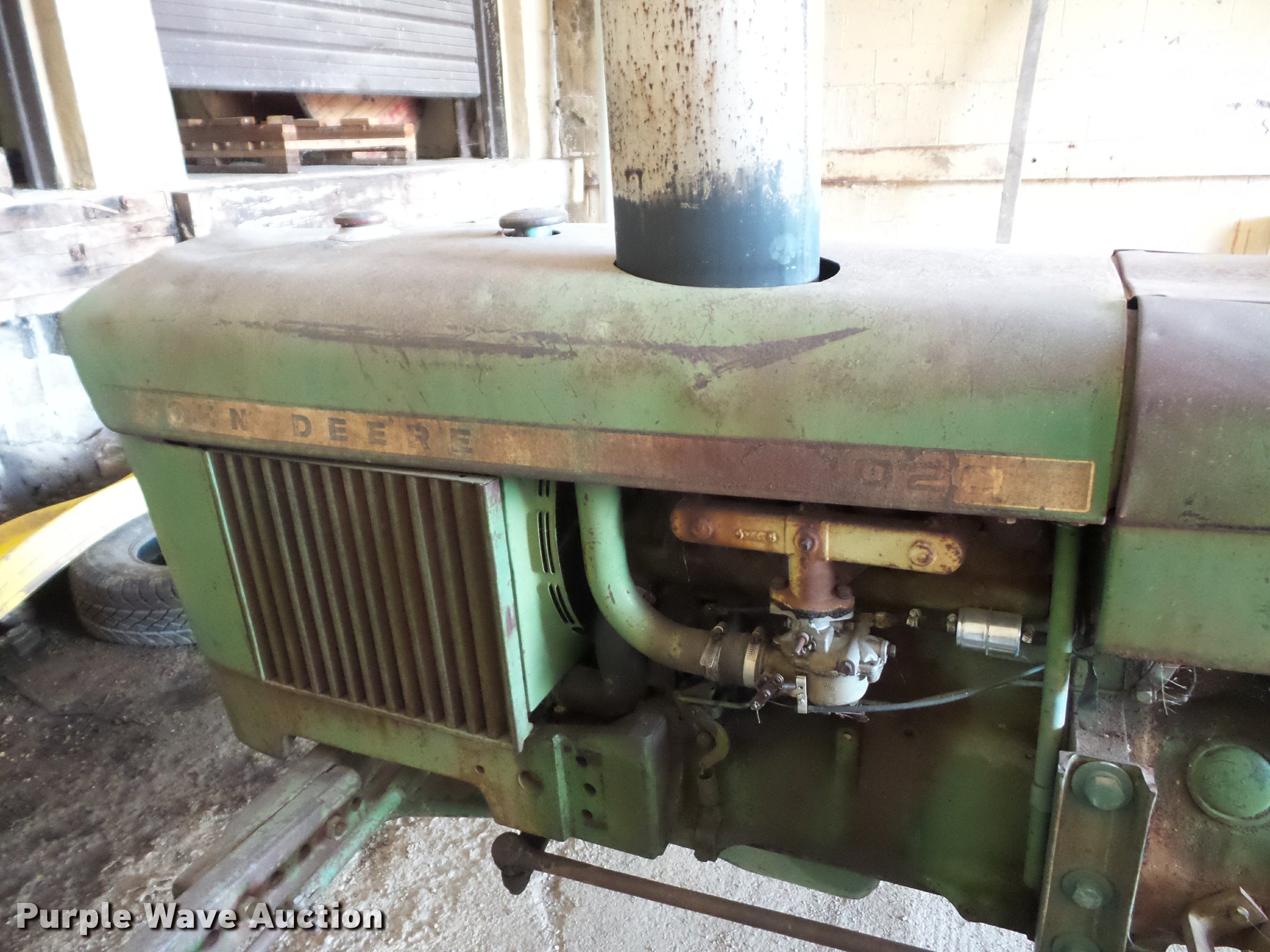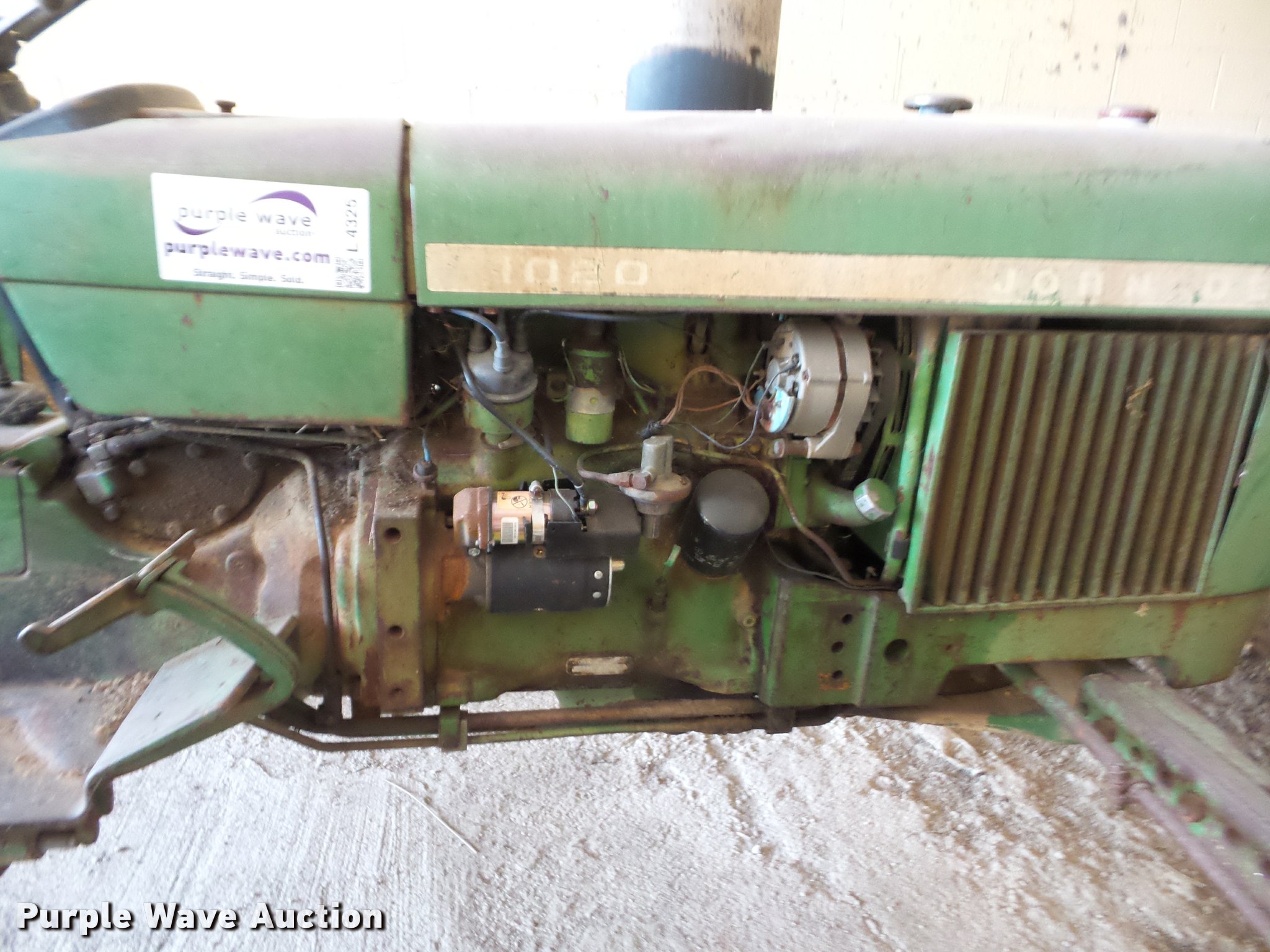 Purple Wave is selling a used Tractor in Missouri. This item is a John Deere 1020 tractor with the following: John Deere four cylinder gas engine, Serial M41TH012152I, 8F gears, Three point, 540 PTO, Rear hydraulic remote set, 6-16 front tires, 12.4-83 rear tires, Engine knocks, Serial TCH1C033313T