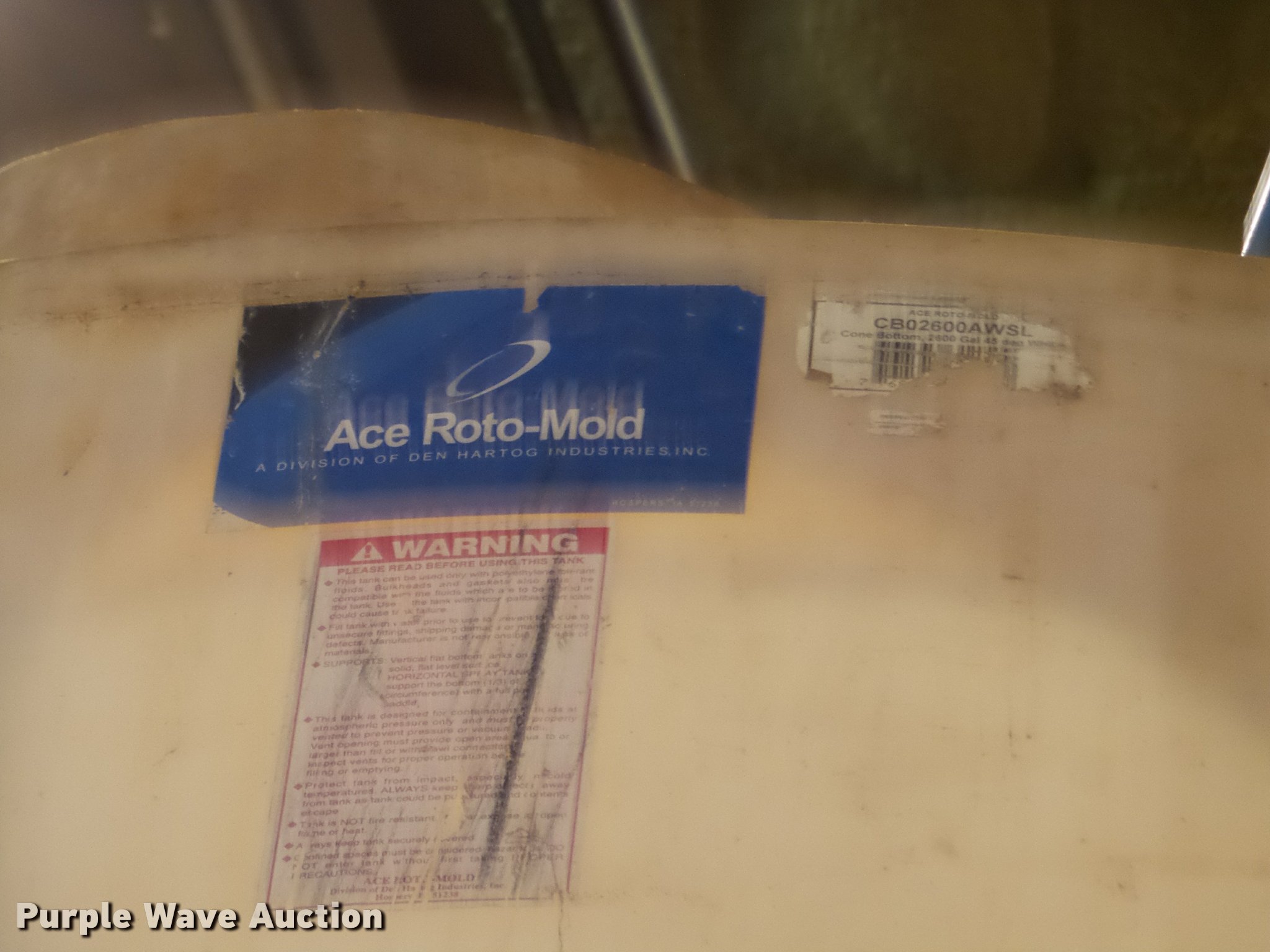 Purple Wave is selling a used Tanks in Texas. This item is a Vertical fertilizer poly tank with the following: 2,500 gallon capacity, Steel saddle