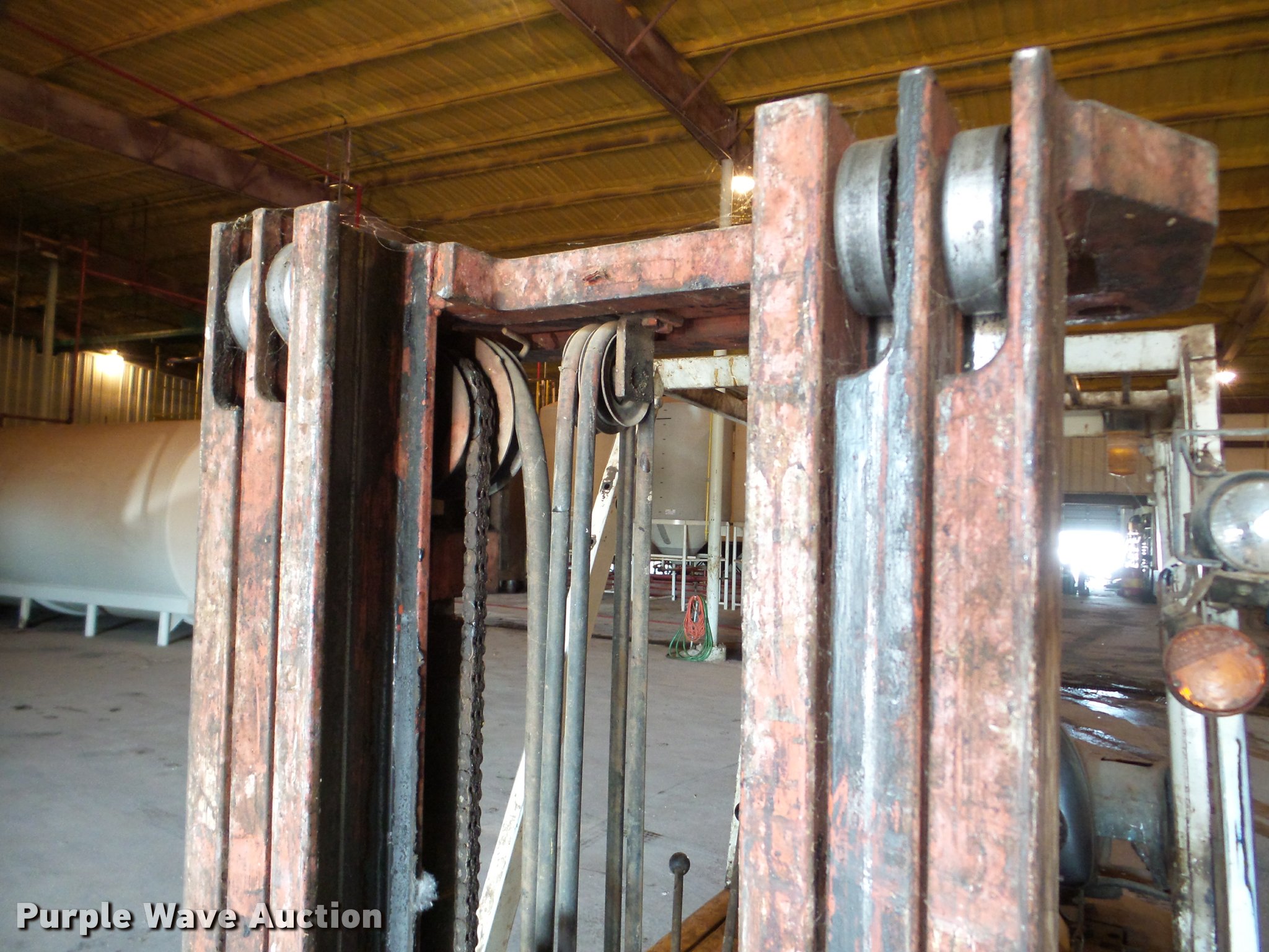 Purple Wave is selling a used Cushion Tire or Pneumatic Forklift in Texas. This item is a Nissan 35 forklift with the following: Model PH01A18VG, 7,064 hours on meter, Nissan four cylinder dual fuel engine, Gas or propane capable, Hydrostatic transmission, OROPS canopy, Work lights, 3,100 lbs max lift capacity, 169' max lift height, Three stage mast, Side shift, Mast tilt, 42"L forks, Propane tank, 6.5x10 front tires, 5x8 rear tires, Serial PH01-907112