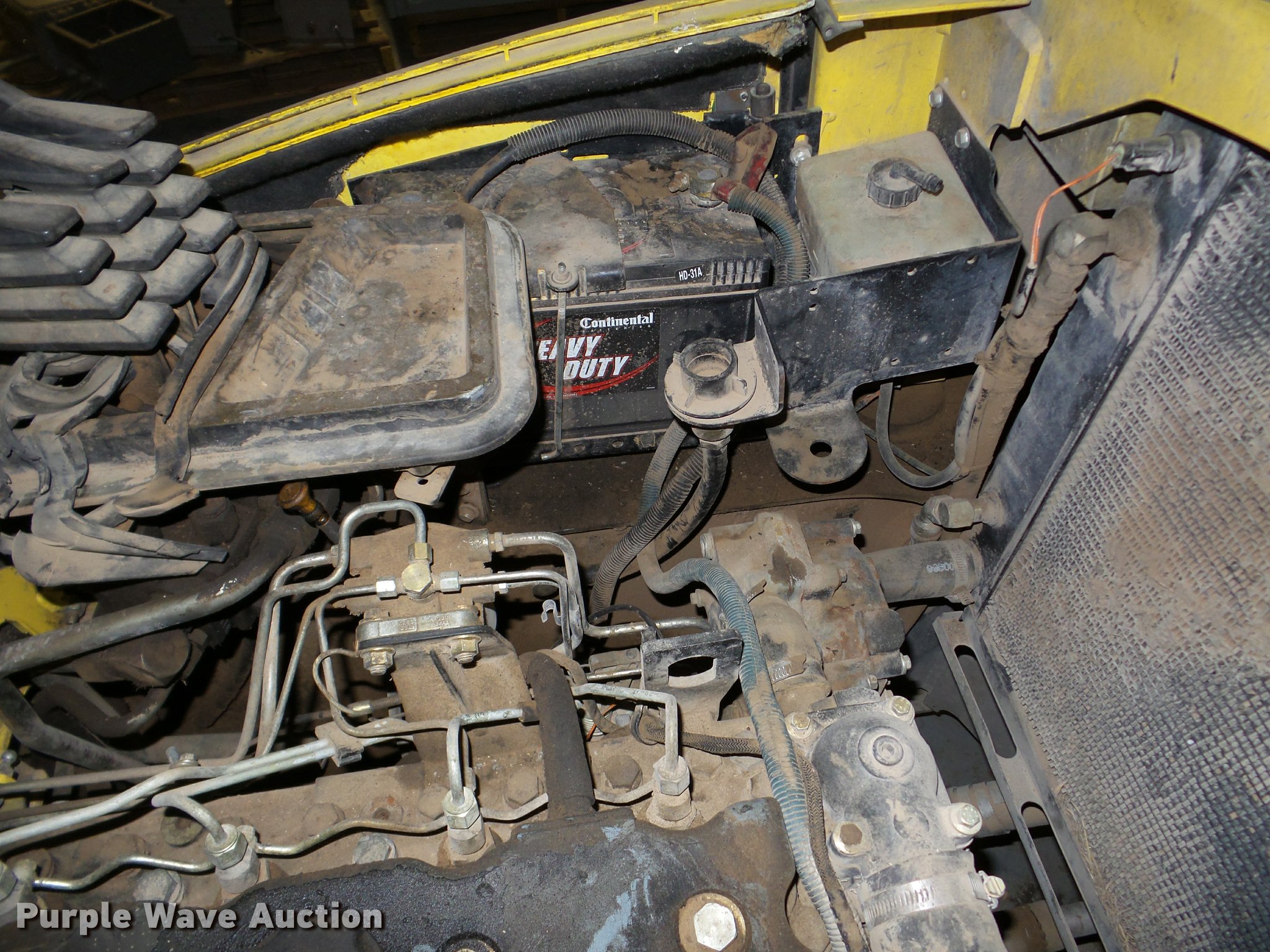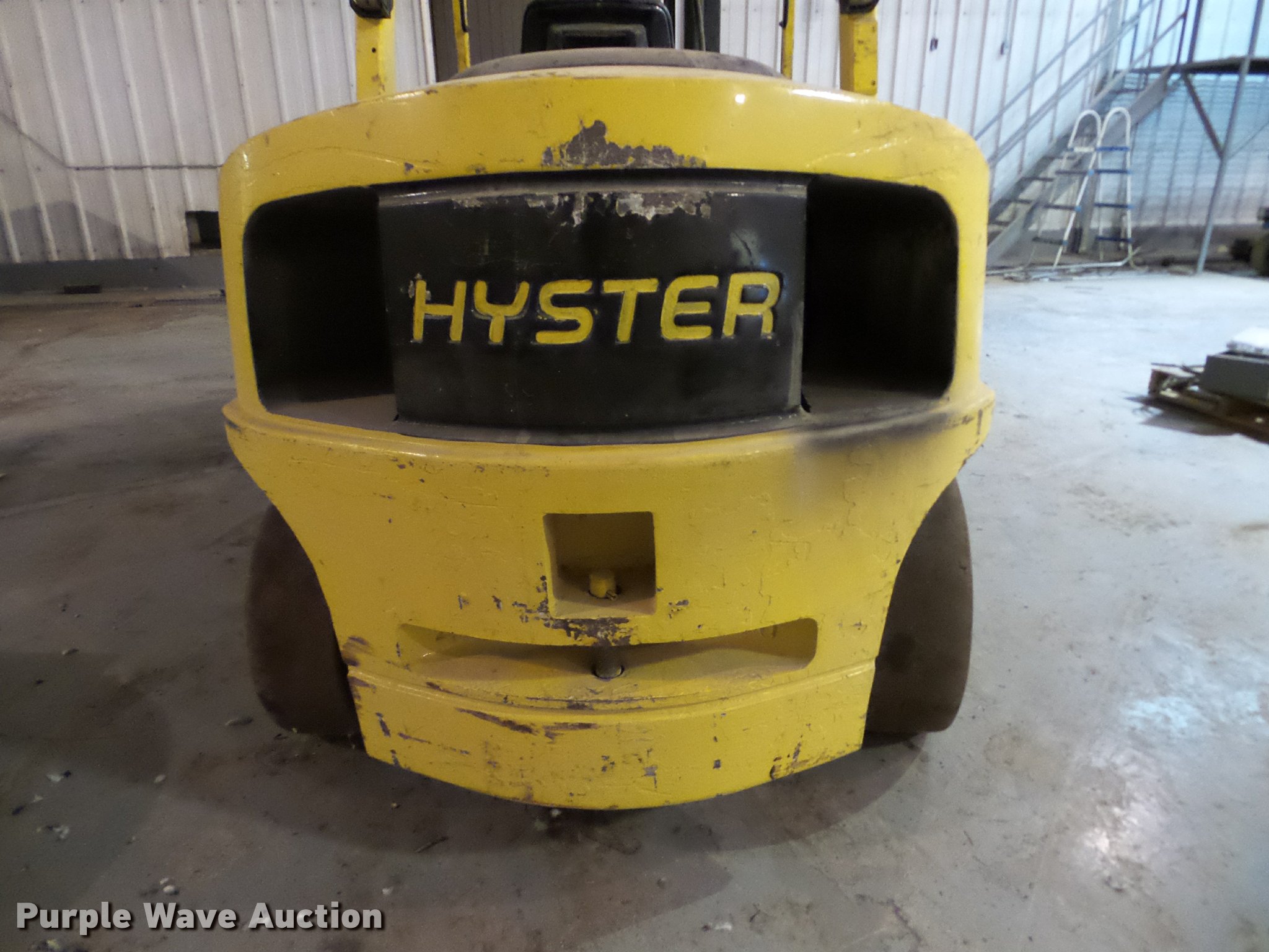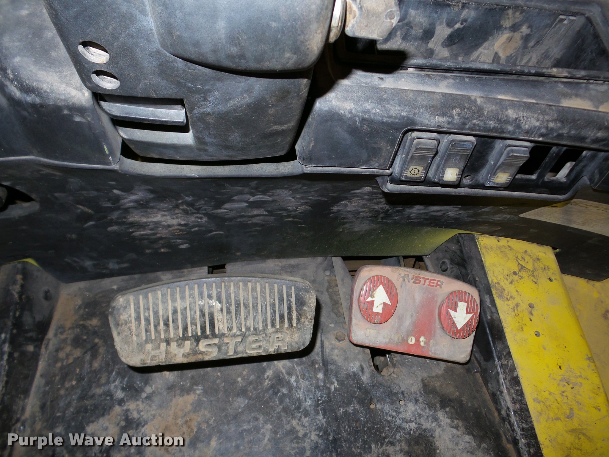 Purple Wave is selling a used Strt. Mast Rough Terr. Forklift in Texas. This item is a Hyster 100 forklift with the following: Four cylinder dual fuel engine, Diesel or propane capable, Hydrostatic transmission, Canopy, Work lights, Two stage mast, Side shift, Mast tilt, 48"L forks, 8.25-15 solid front tires, 7-12 rear tires